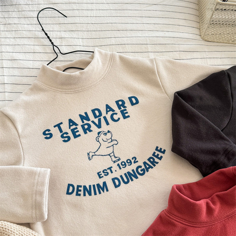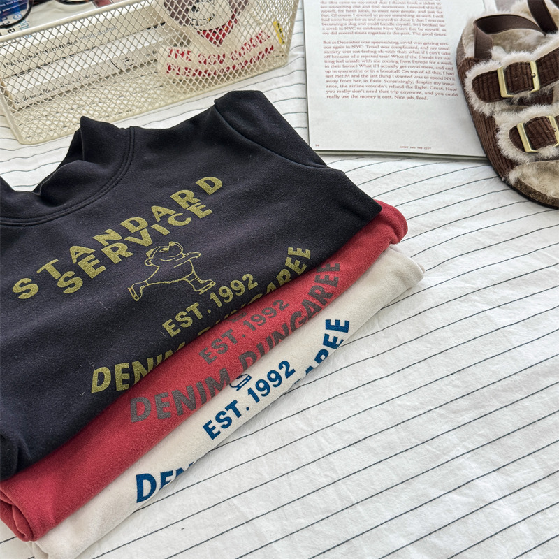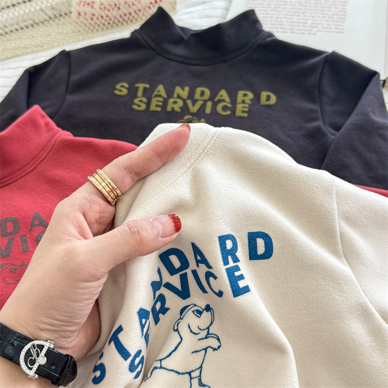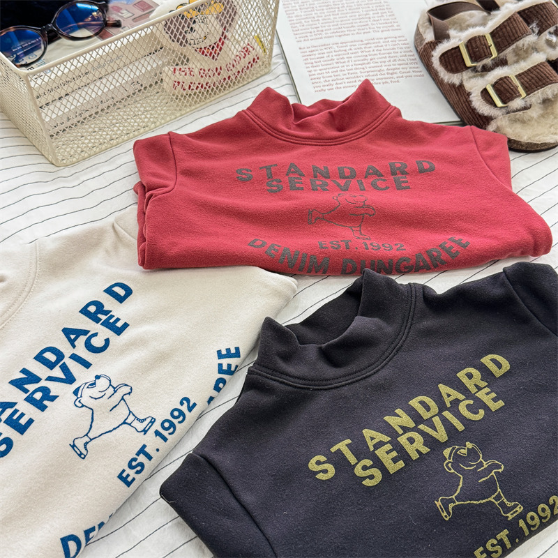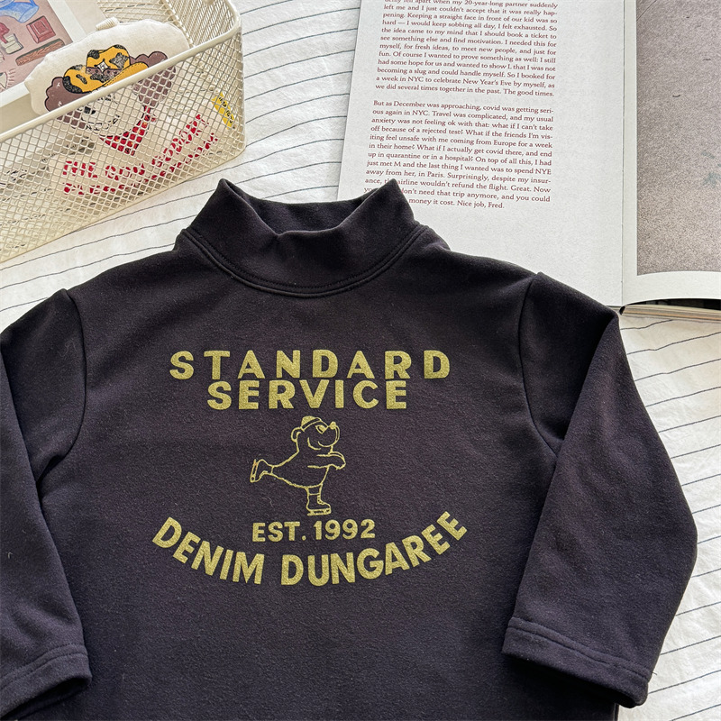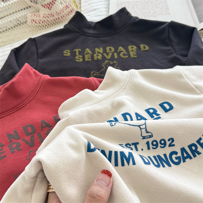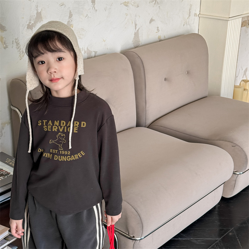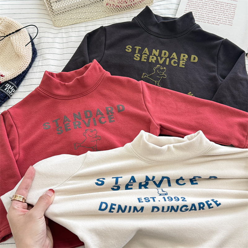 2026 봄 아동복 가을 아동복 한국 스타일 플리스 하이넥 티셔츠 남녀 아동용 따뜻한 긴팔 이너웨어 5637