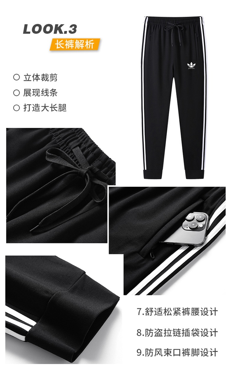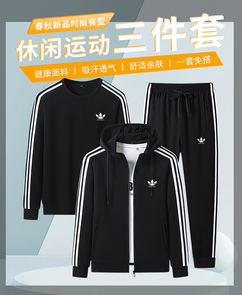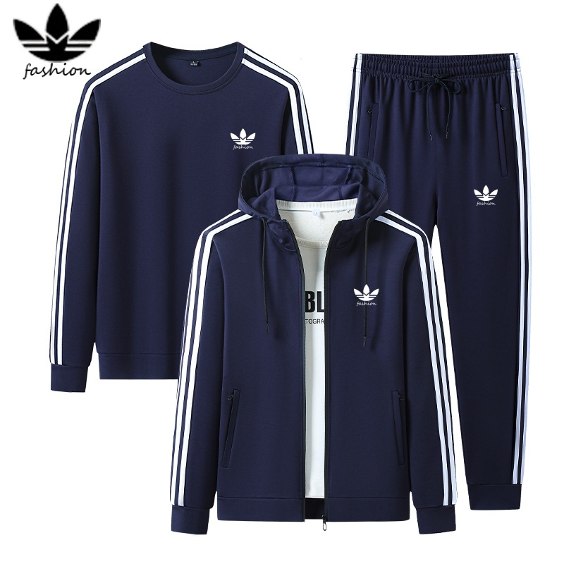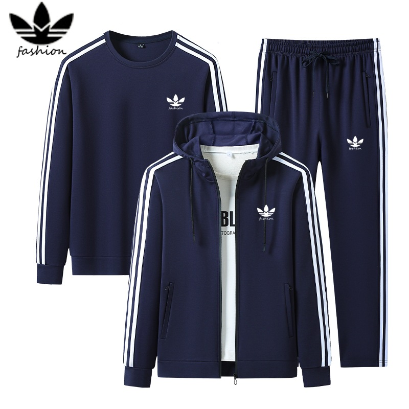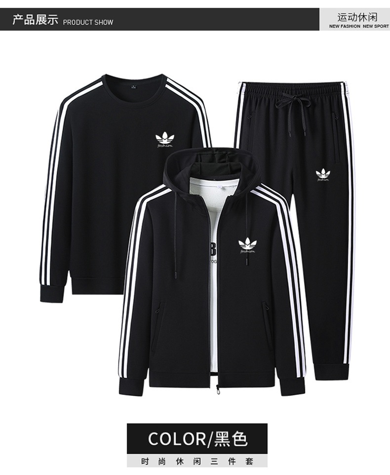 국경 간 남성 의류 2024 가을과 겨울 클래식 3 바 스포츠 레저 세트 피트니스 3 피스 세트 여성을 달리는 남성 애호가스토어 가기