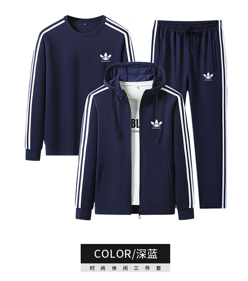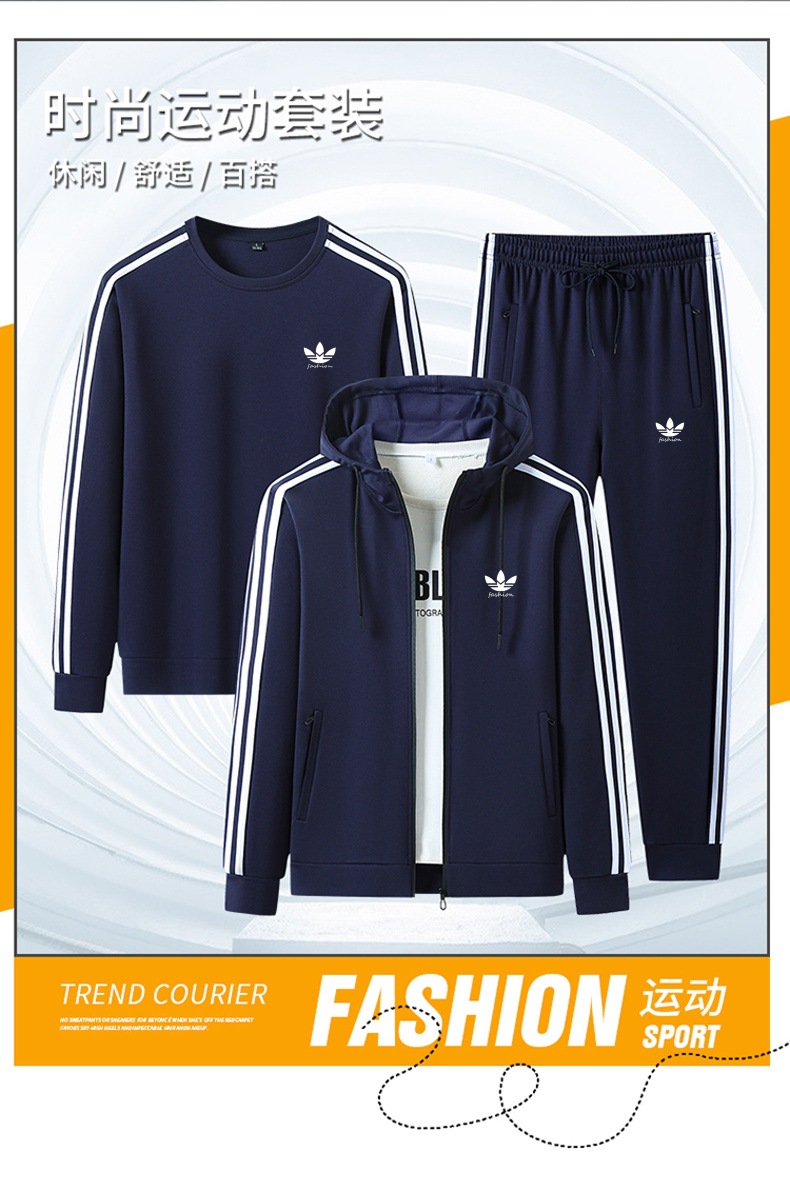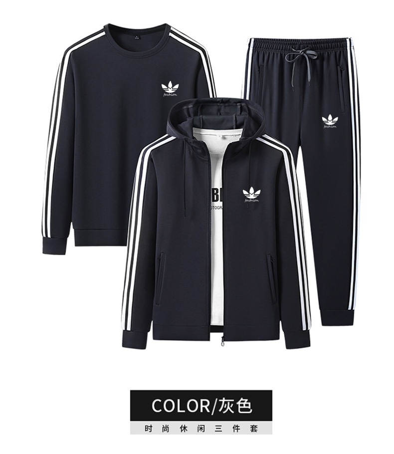 국경 간 남성 의류 2024 가을과 겨울 클래식 3 바 스포츠 레저 세트 피트니스 3 피스 세트 여성을 달리는 남성 애호가