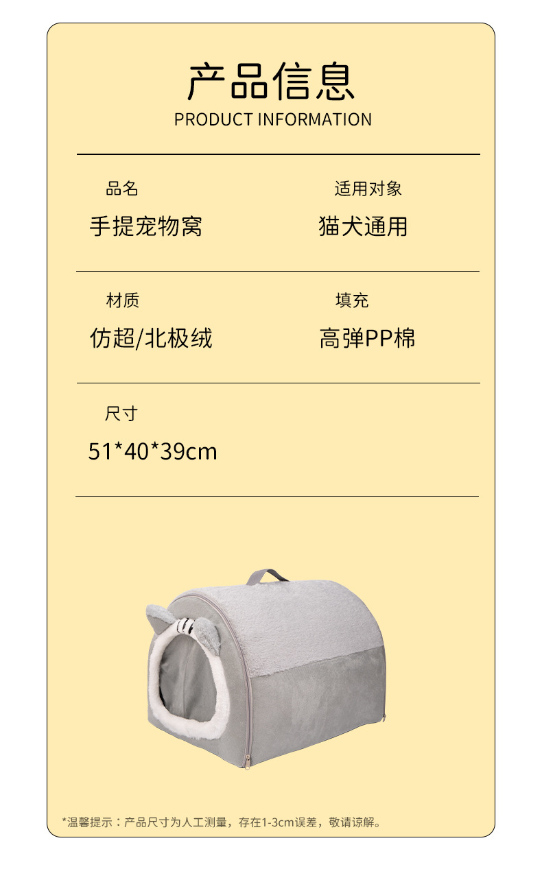 새로운 휴대용 고양이 귀 둥지 가을 및 겨울 따뜻한 두꺼운 고양이 침대 고양이 집 반 폐쇄 개집 고양이 둥지 애완 동물 용품스토어 가기