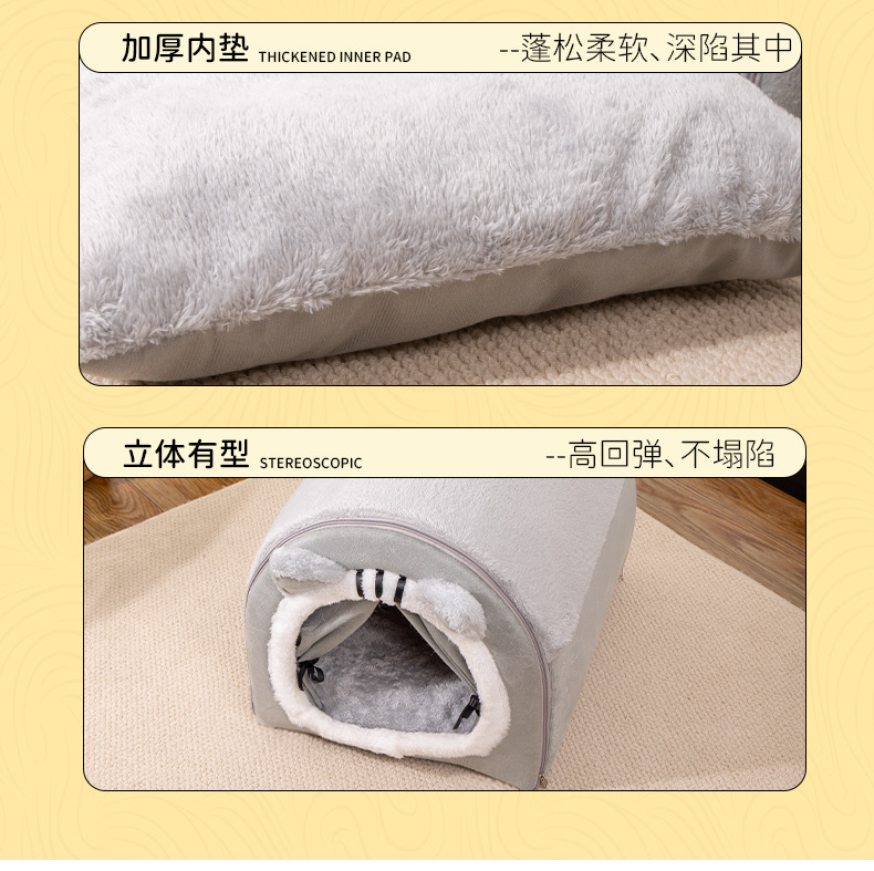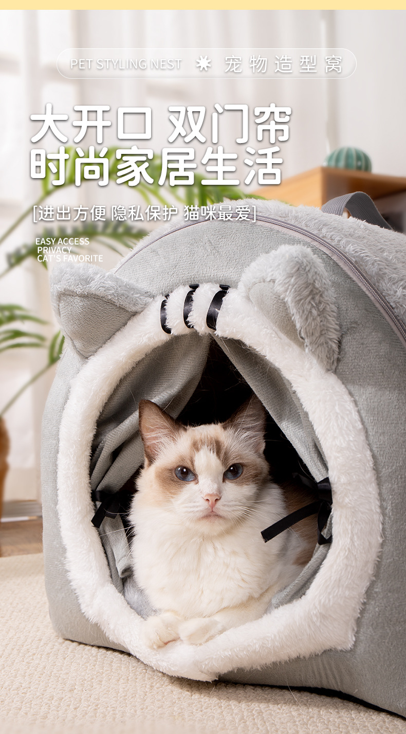 새로운 휴대용 고양이 귀 둥지 가을 및 겨울 따뜻한 두꺼운 고양이 침대 고양이 집 반 폐쇄 개집 고양이 둥지 애완 동물 용품