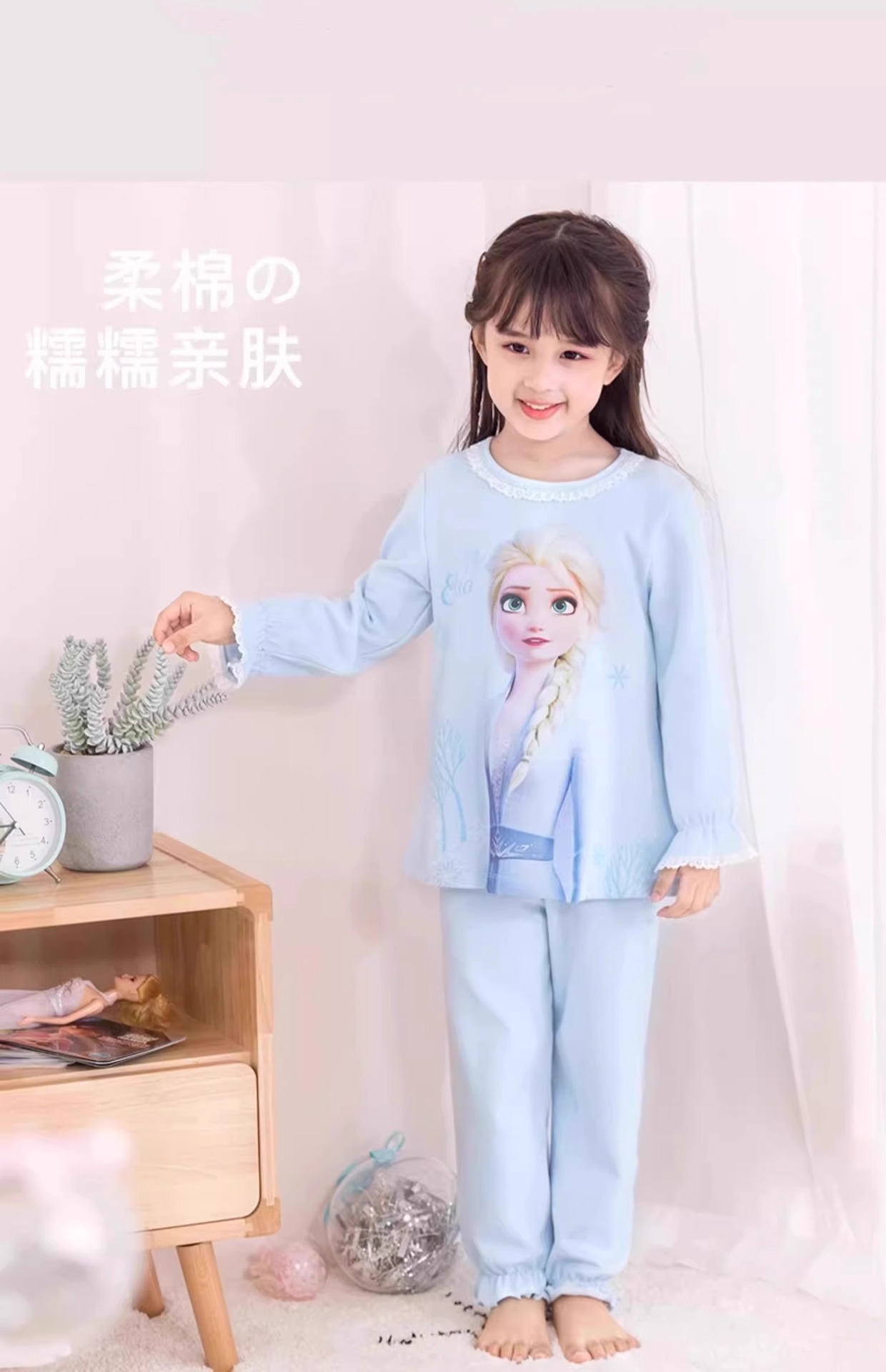 소녀 유행 잠옷 세트 어린이 순면 가을 새 얼음과 눈 엘사 귀여운 공주 홈 의류 아동복스토어 가기