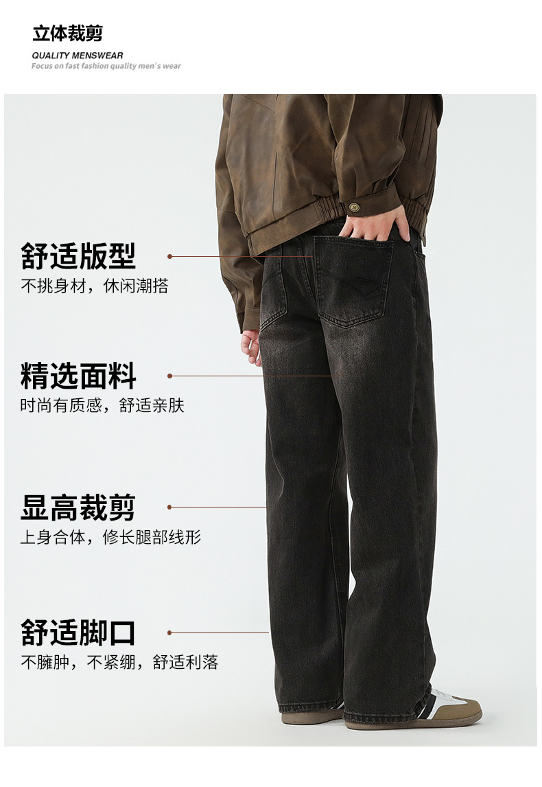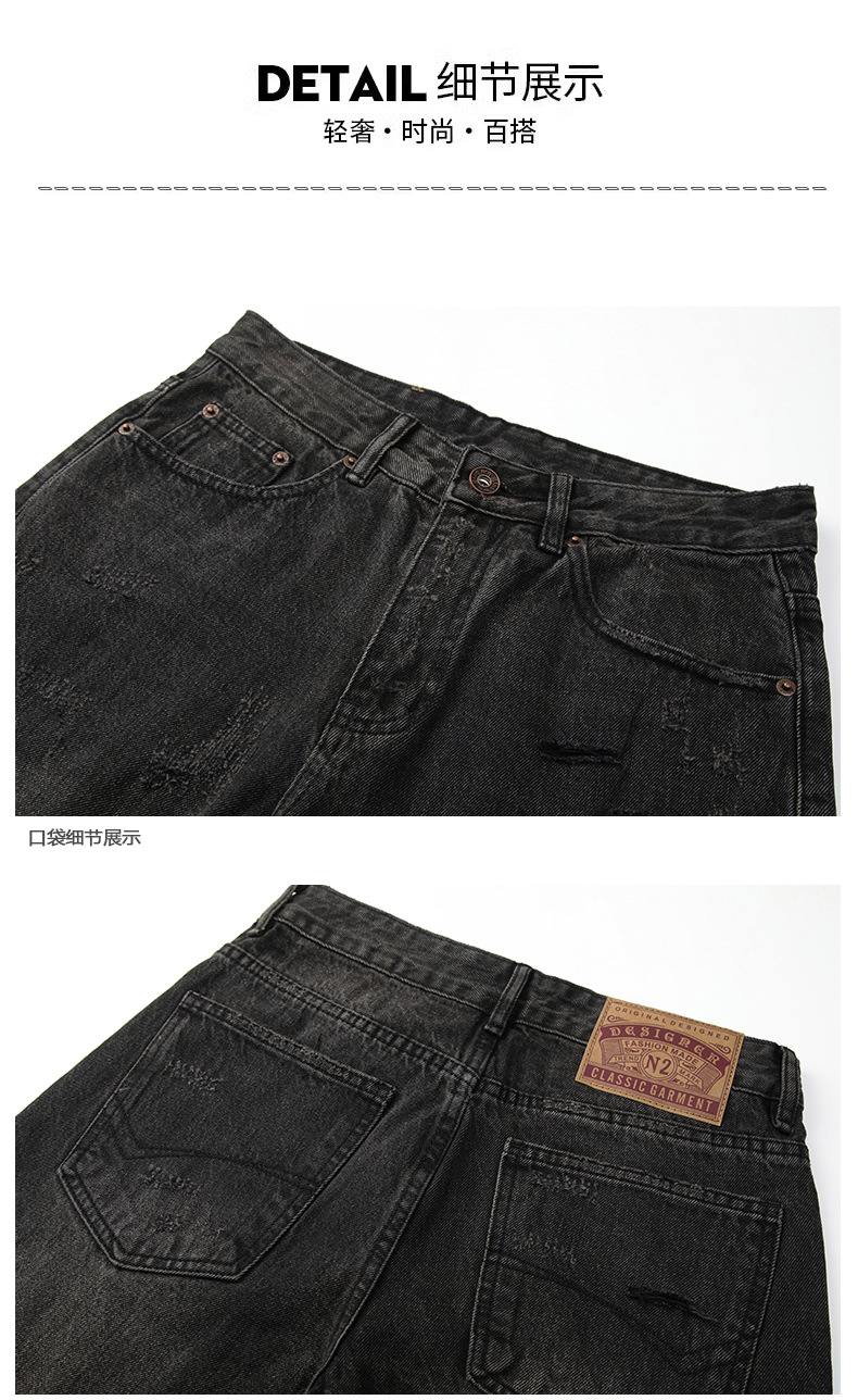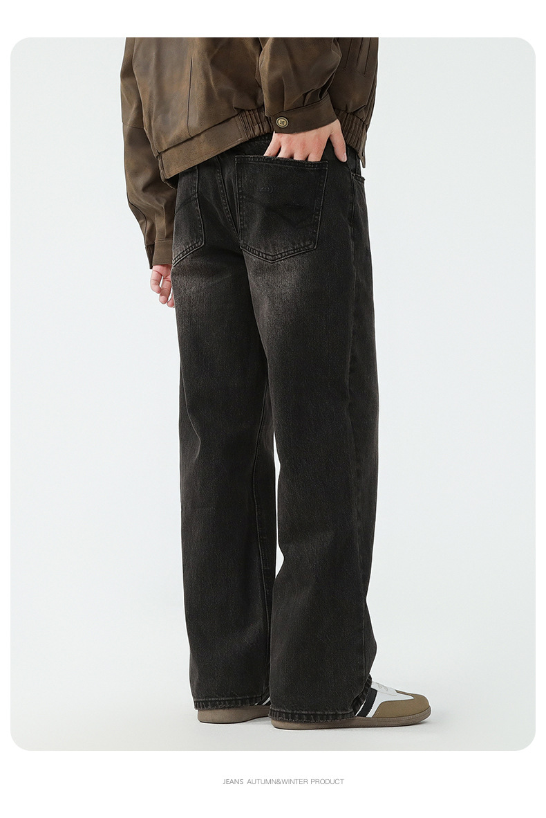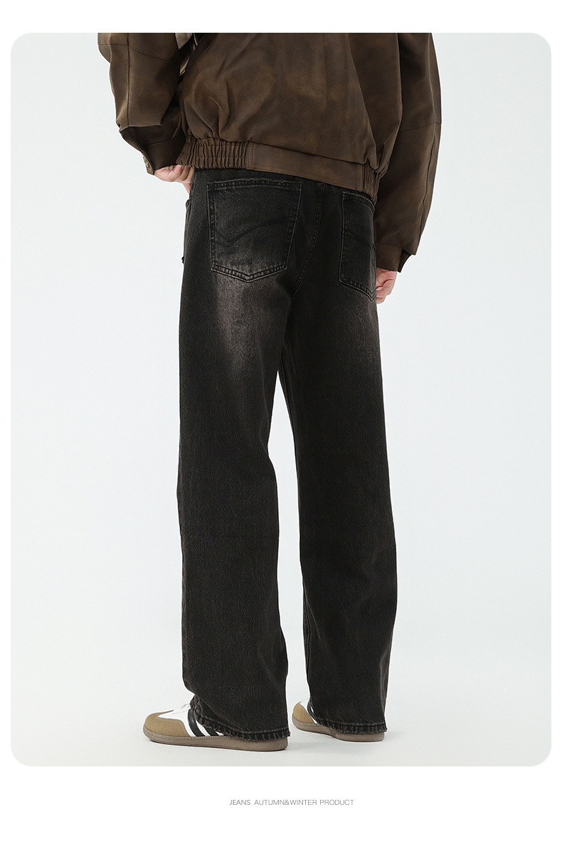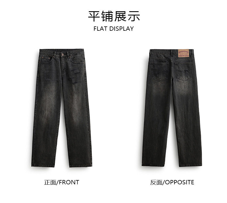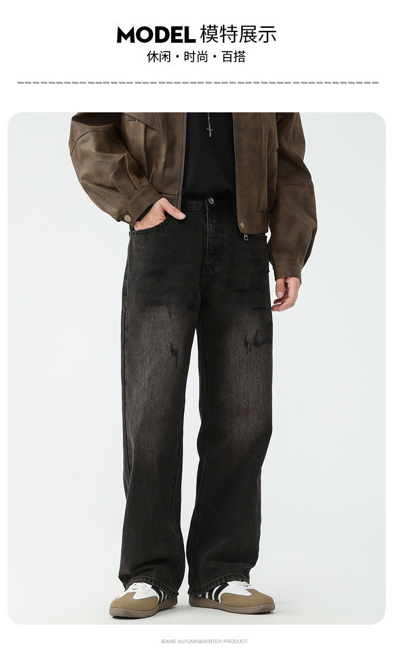 Muqiu 남성복 ∠ American High Street Ripped 청바지 남성용 클린 핏 트렌디 브랜드 레트로 느슨한 스트레이트 바지스토어 가기