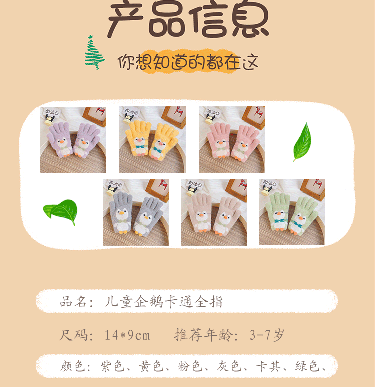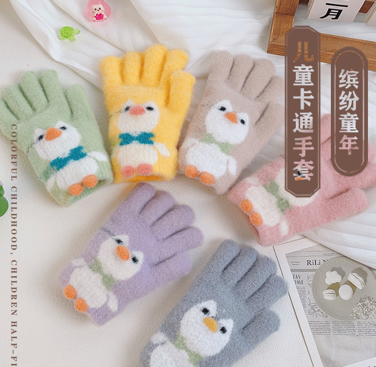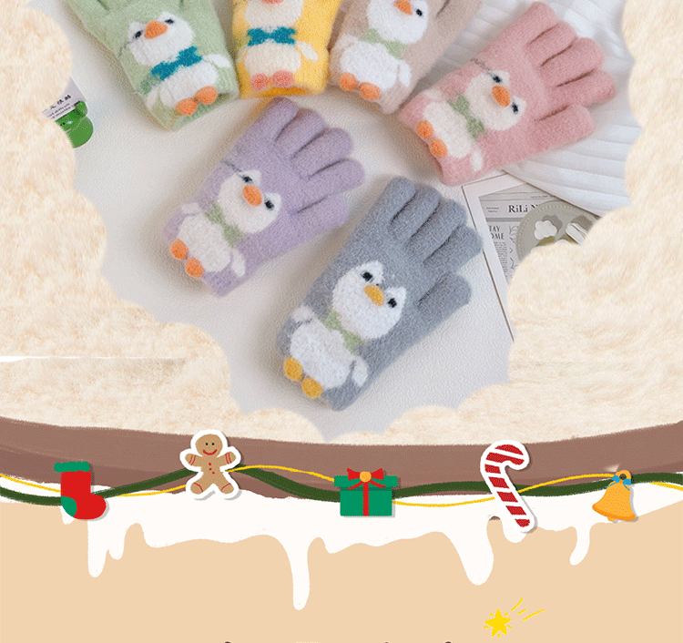 겨울용 3-8세 어린이 장갑, 따뜻한 아기 장갑, 펭귄 풀핑거 글쓰기 장갑, 분리형 손가락 장갑, 신제품 제조업체스토어 가기