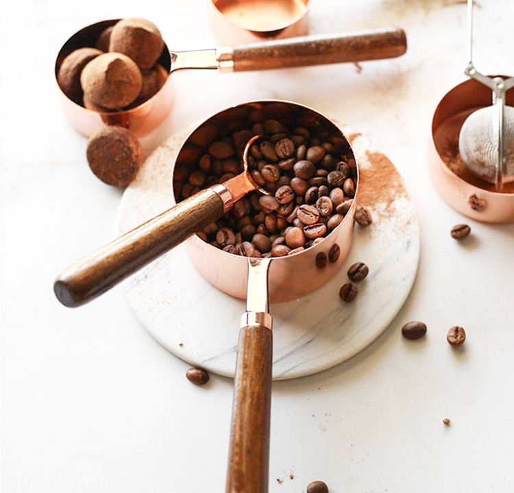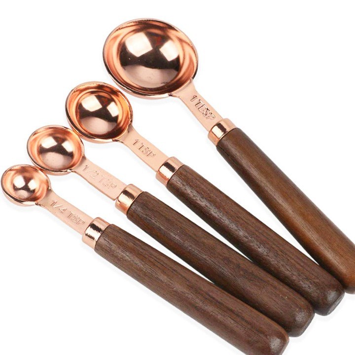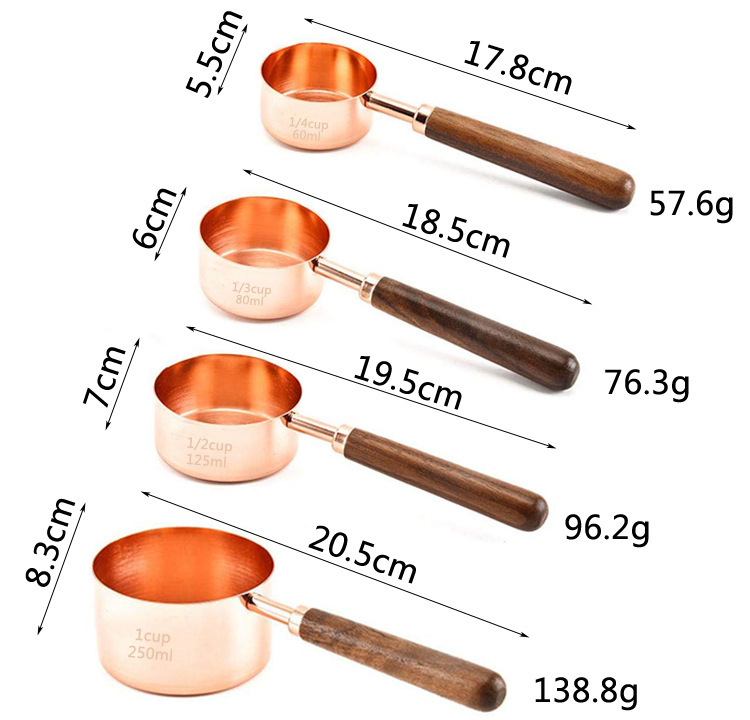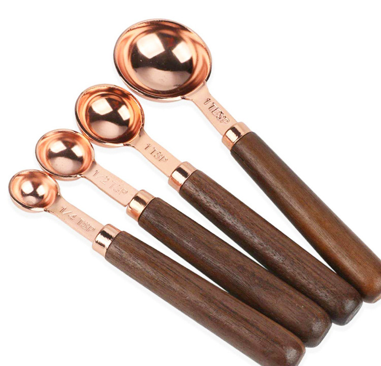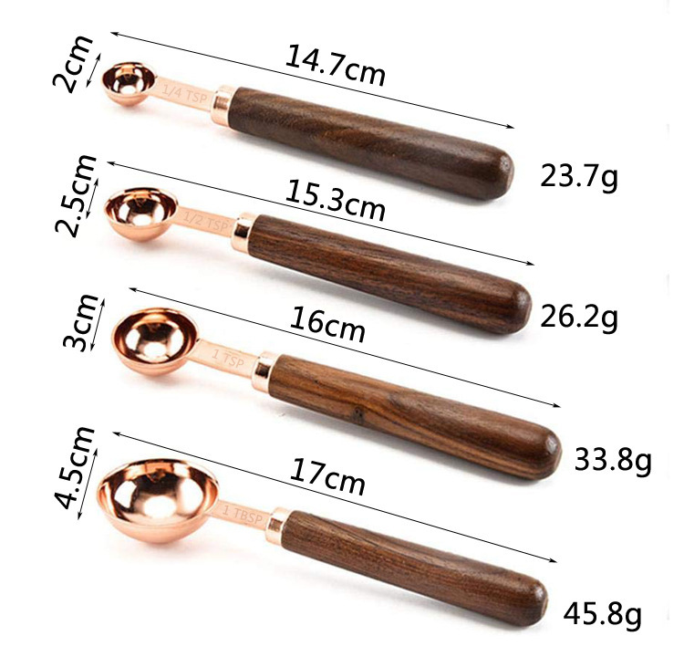 호두나무 손잡이 계량컵 및 계량스푼 세트 8종, 로즈골드, 눈금 표시, 커피스푼, 해외 인기 상품스토어 가기