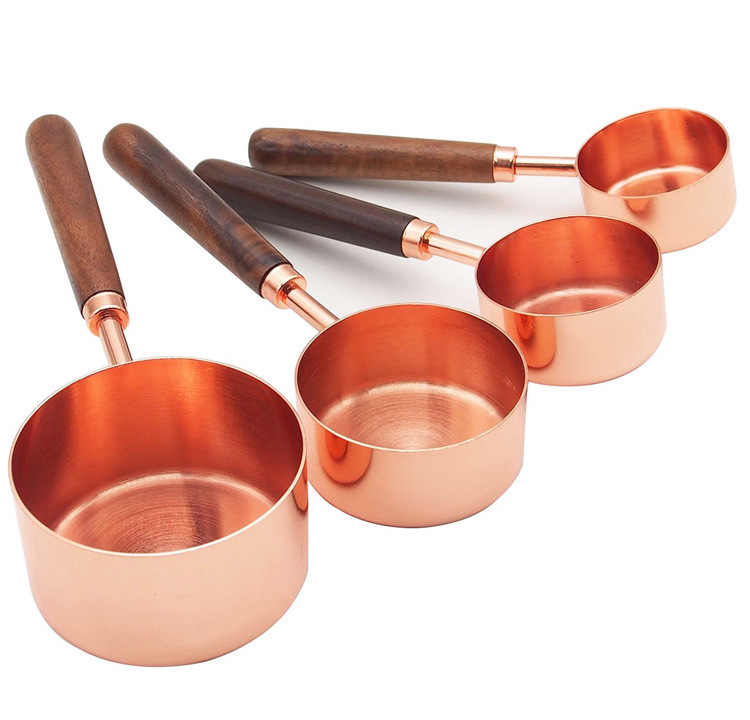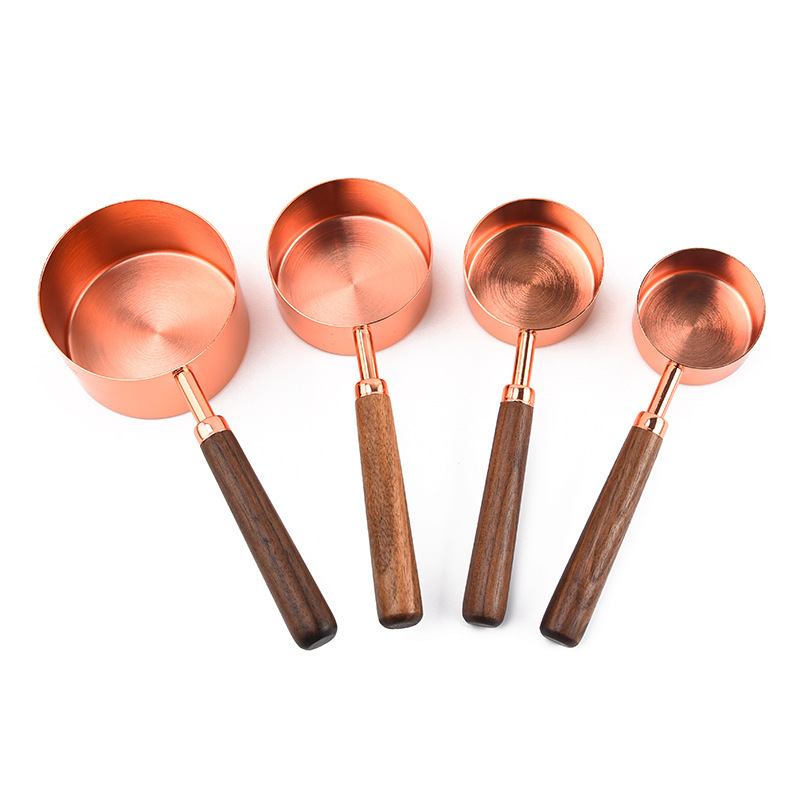 호두나무 손잡이 계량컵 및 계량스푼 세트 8종, 로즈골드, 눈금 표시, 커피스푼, 해외 인기 상품