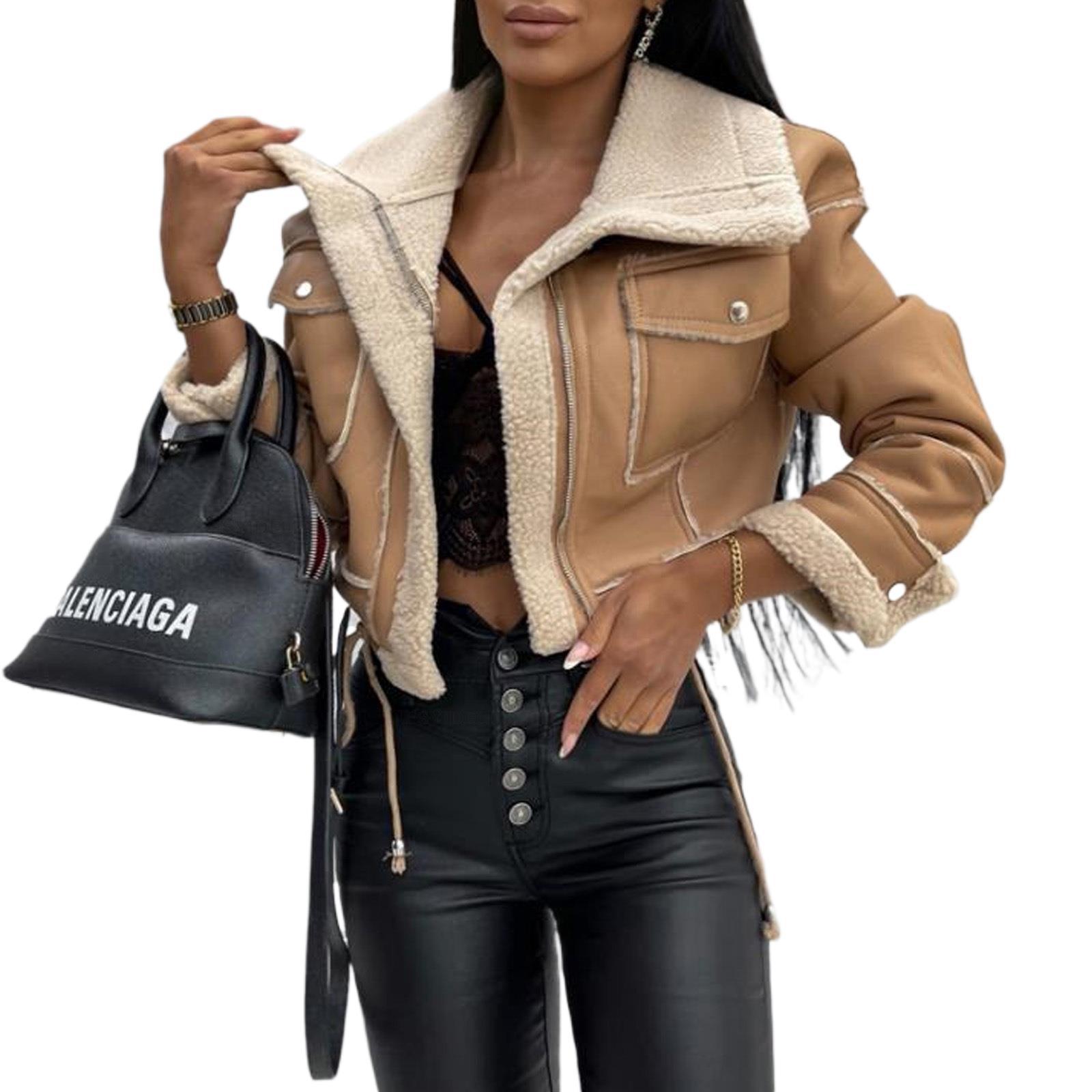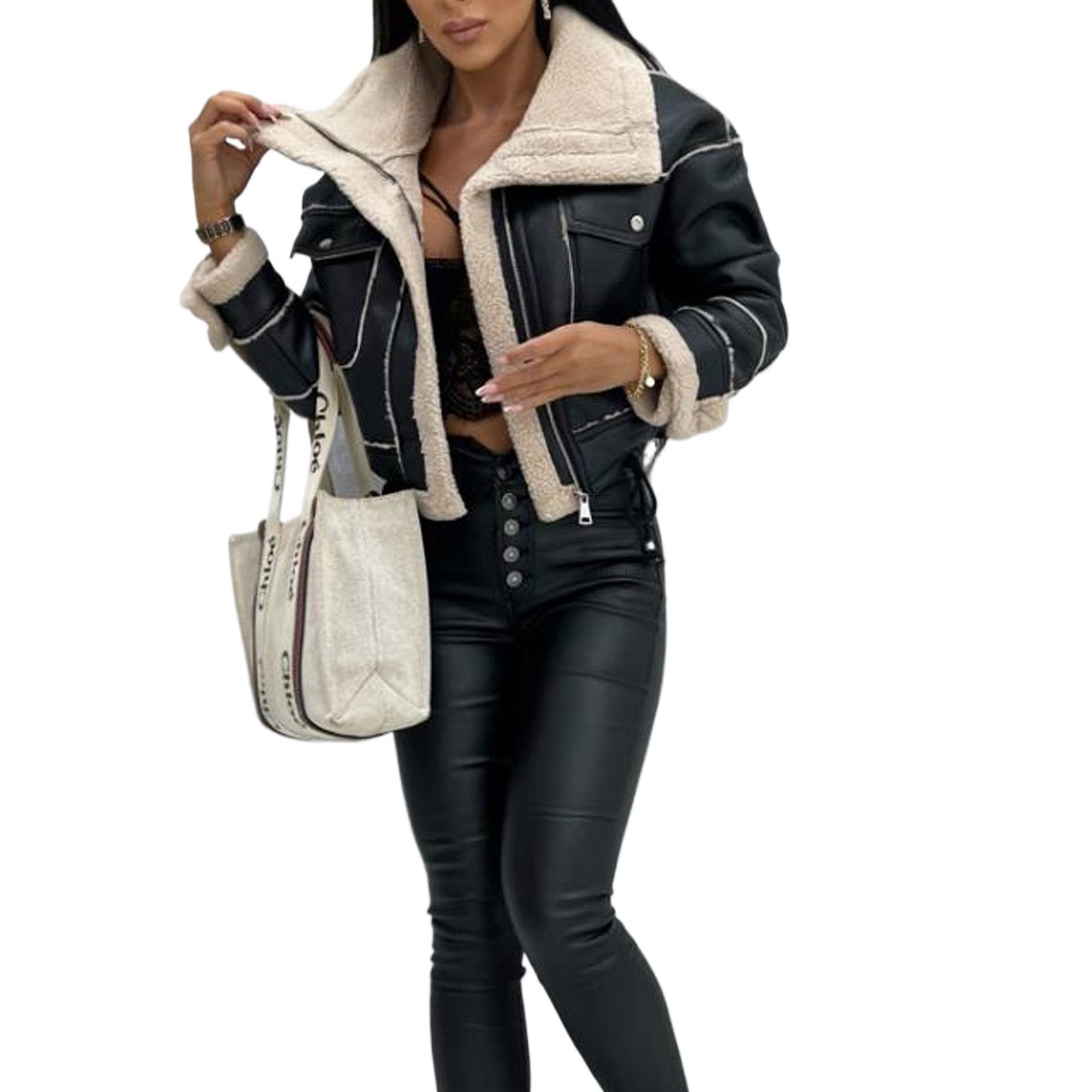 국경 간 여성용 탑 재킷 스탠드 칼라 플리스 모조 가죽 짧은 지퍼 라펠 오토바이 복고풍 유럽과 미국의 패션 재킷스토어 가기