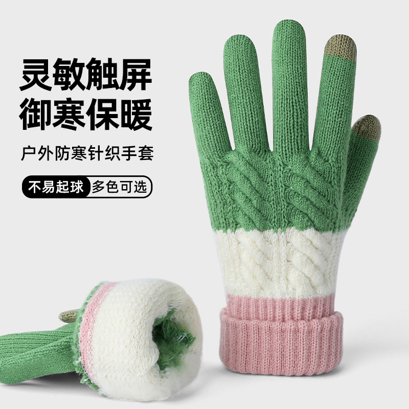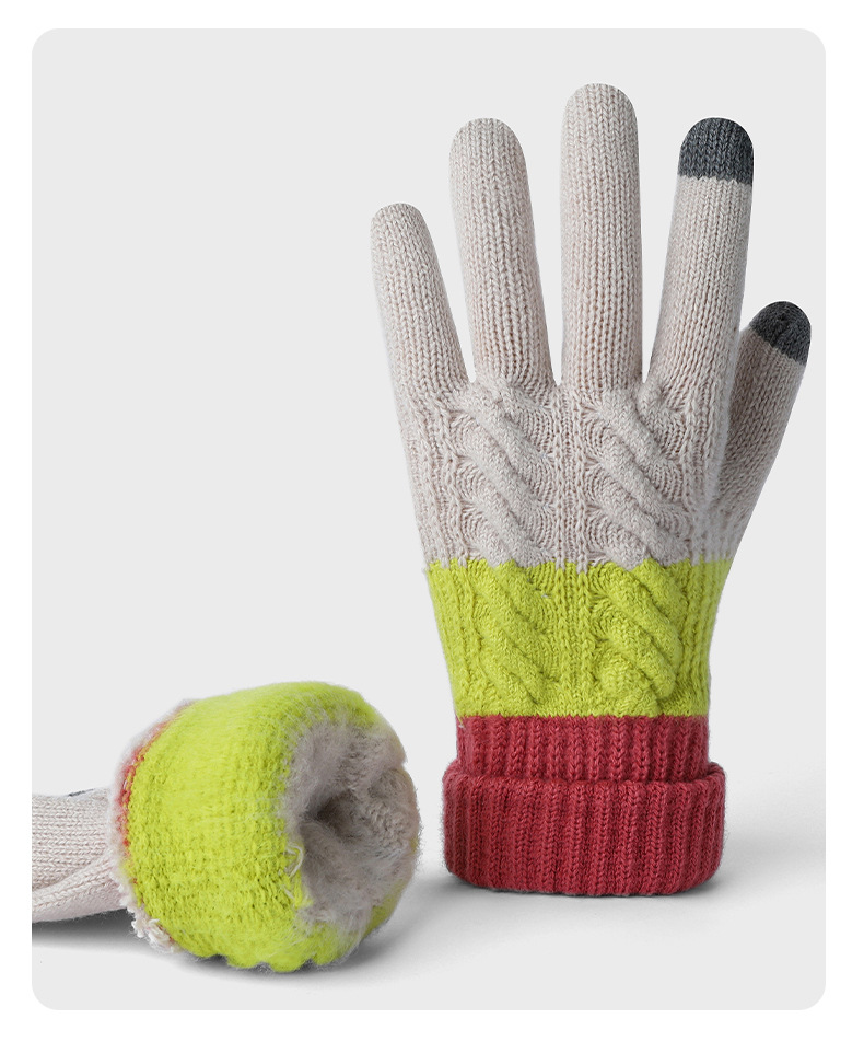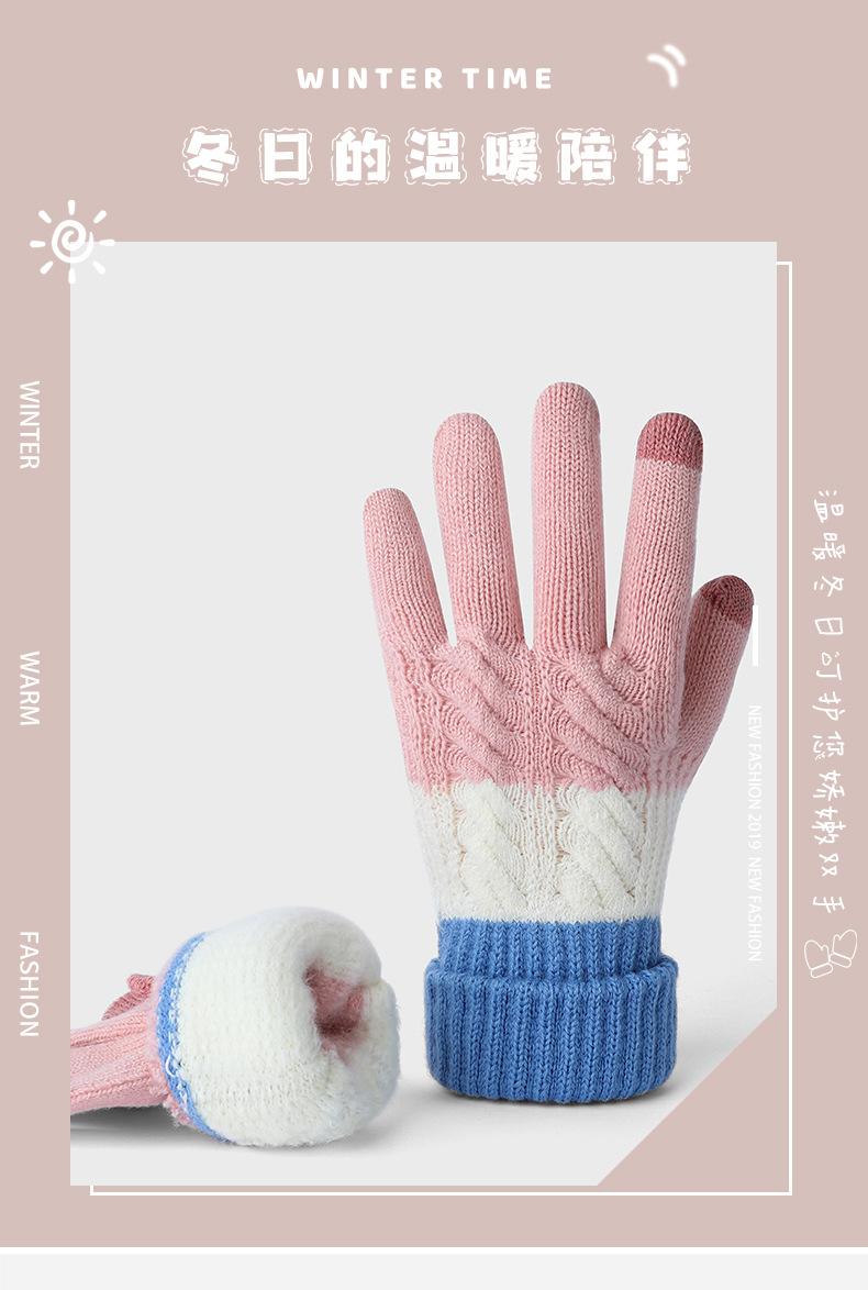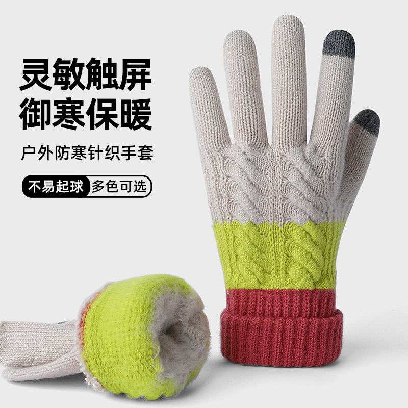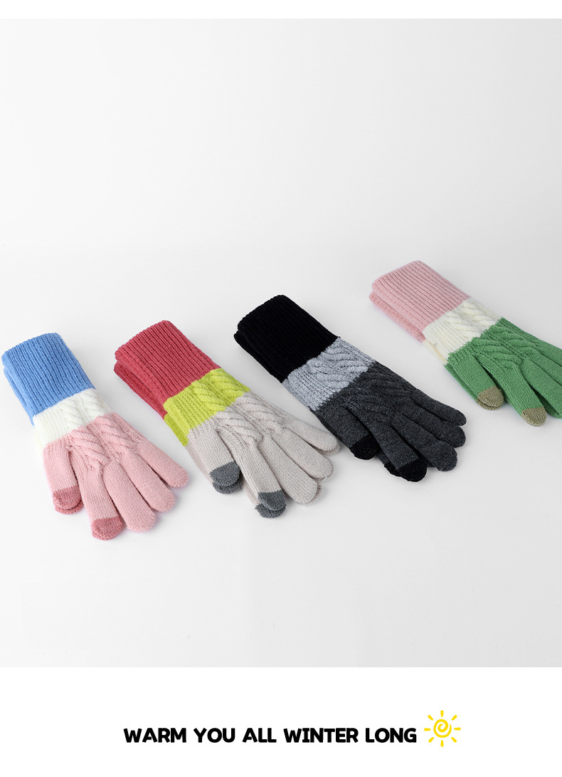 여자 겨울 니트 모직 장갑 따뜻한 두껍게 기모 모든 경기 냉장 야외 사이클링 컬러 매칭 장갑스토어 가기