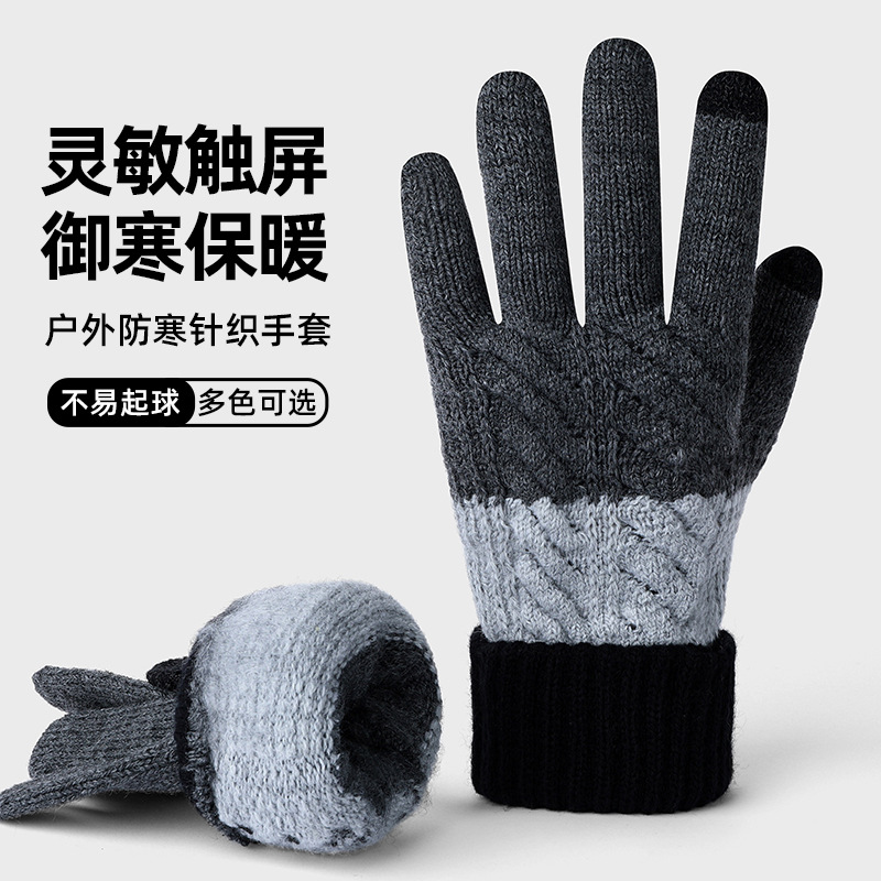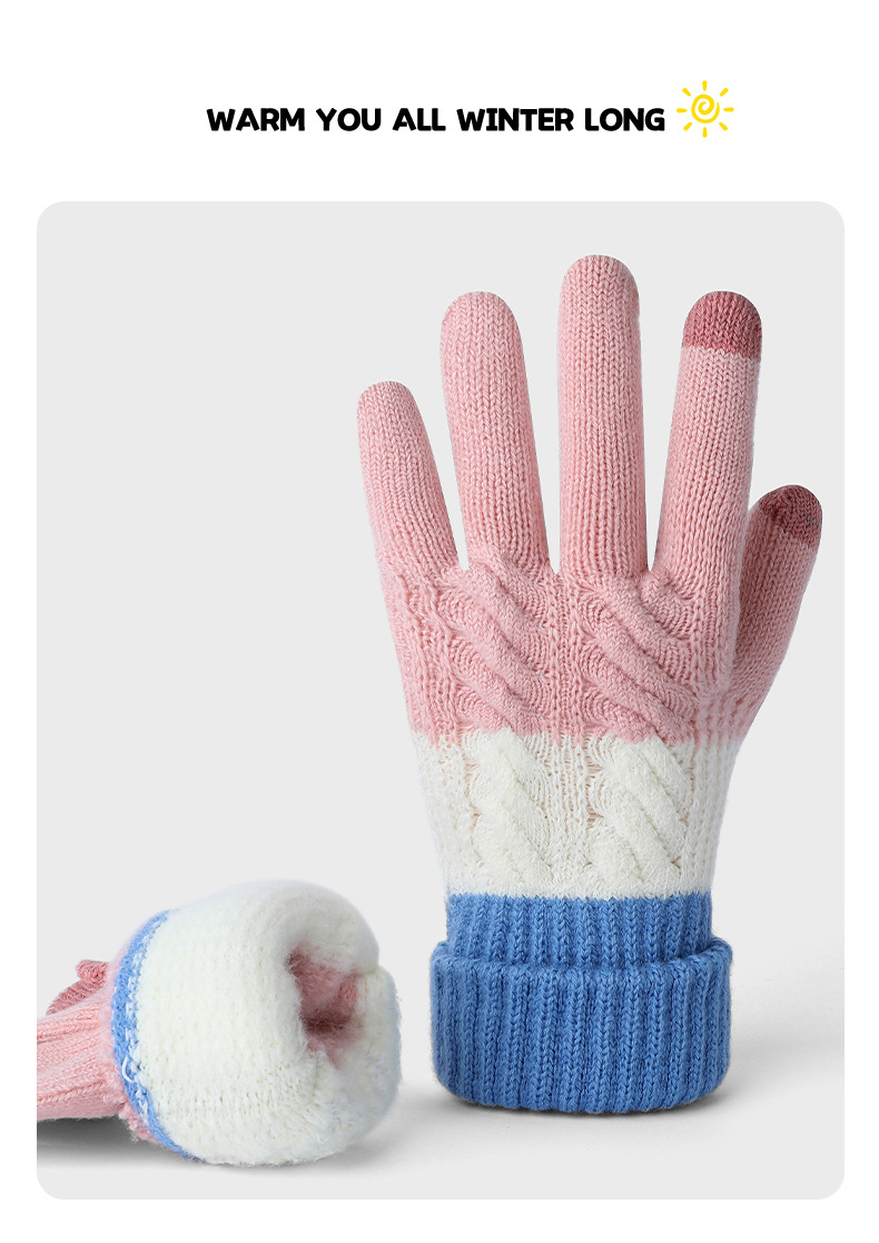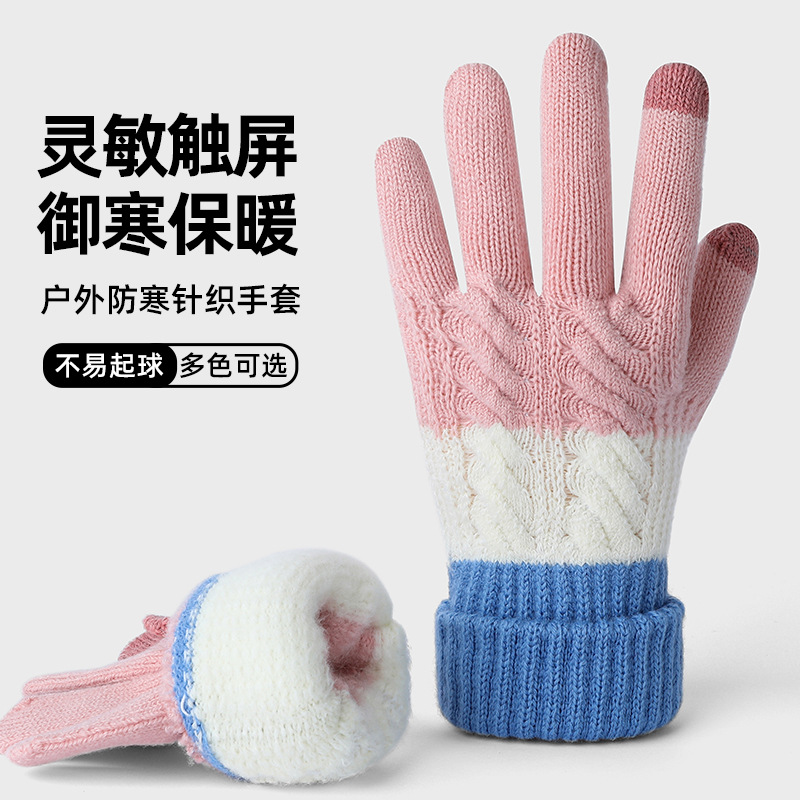 여자 겨울 니트 모직 장갑 따뜻한 두껍게 기모 모든 경기 냉장 야외 사이클링 컬러 매칭 장갑