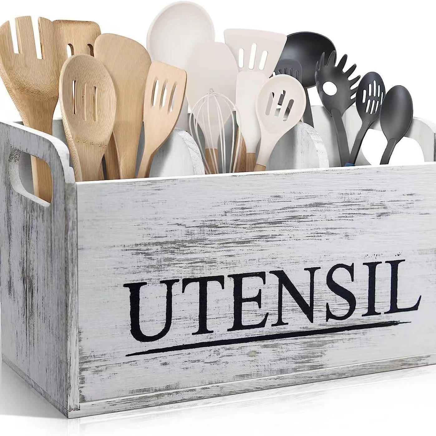 오래된 나무 수납함, 주방용 다칸 칼과 포크 수납함, 데스크탑 원목 오래된 식기 수납함스토어 가기