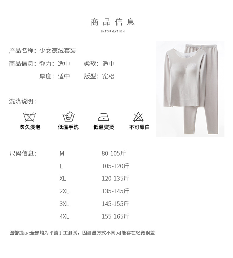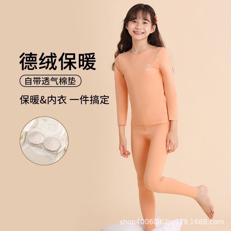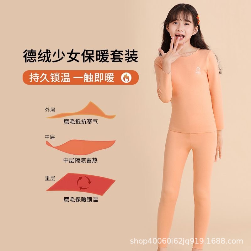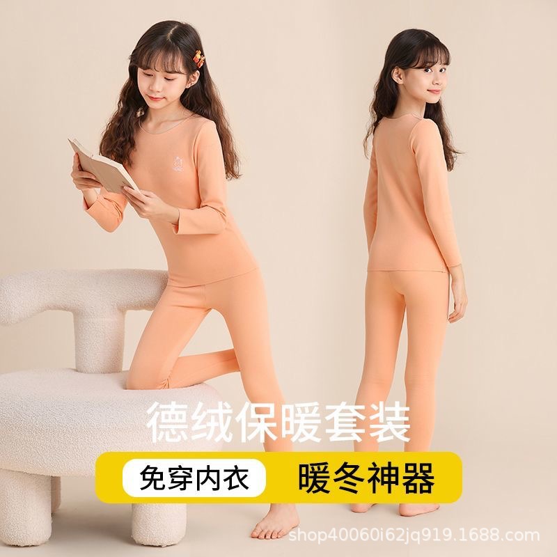 청소년 학생용 기모 안감 두꺼운 가을옷, 가을바지, 독일산 기모 원형넥 이너웨어 보온 내의 세트, 여아용 가을 겨울