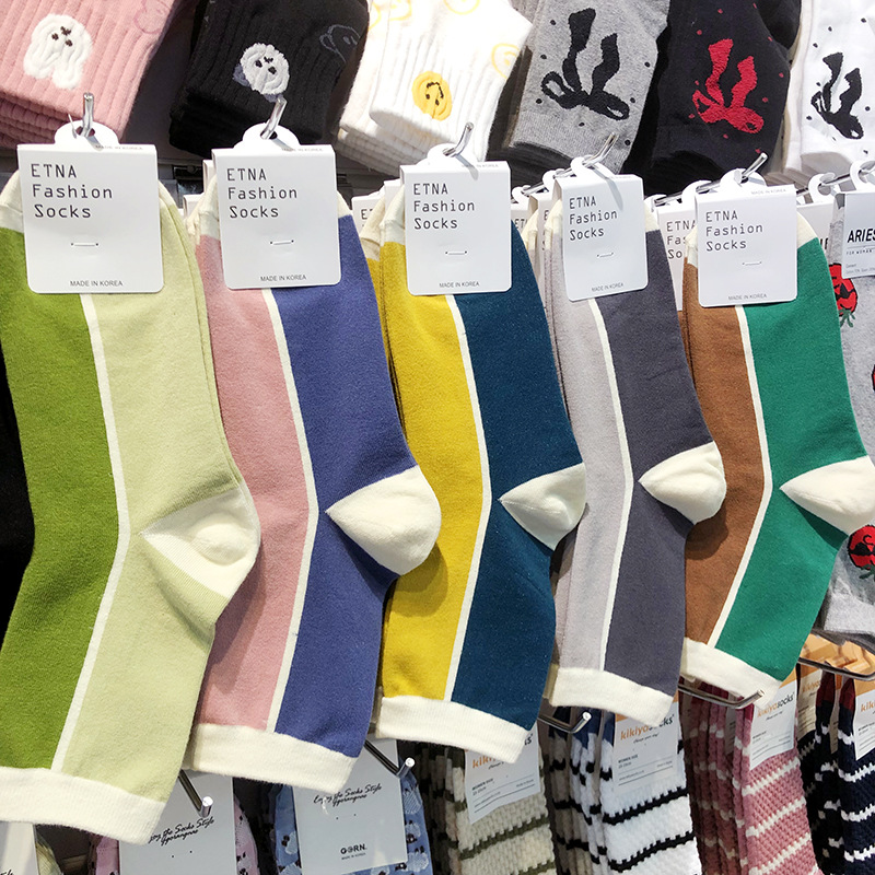 한국 수입 양말 ETNA 가을과 겨울 디자이너 패션 대비 컬러 여성 양말 유럽과 미국의 복고풍 스타일 면 양말스토어 가기