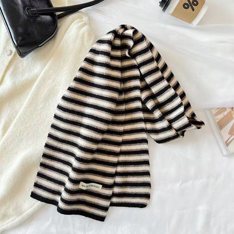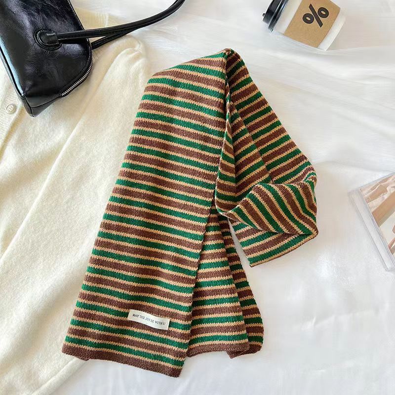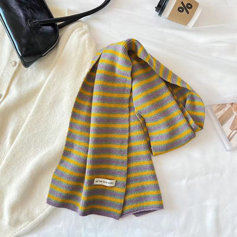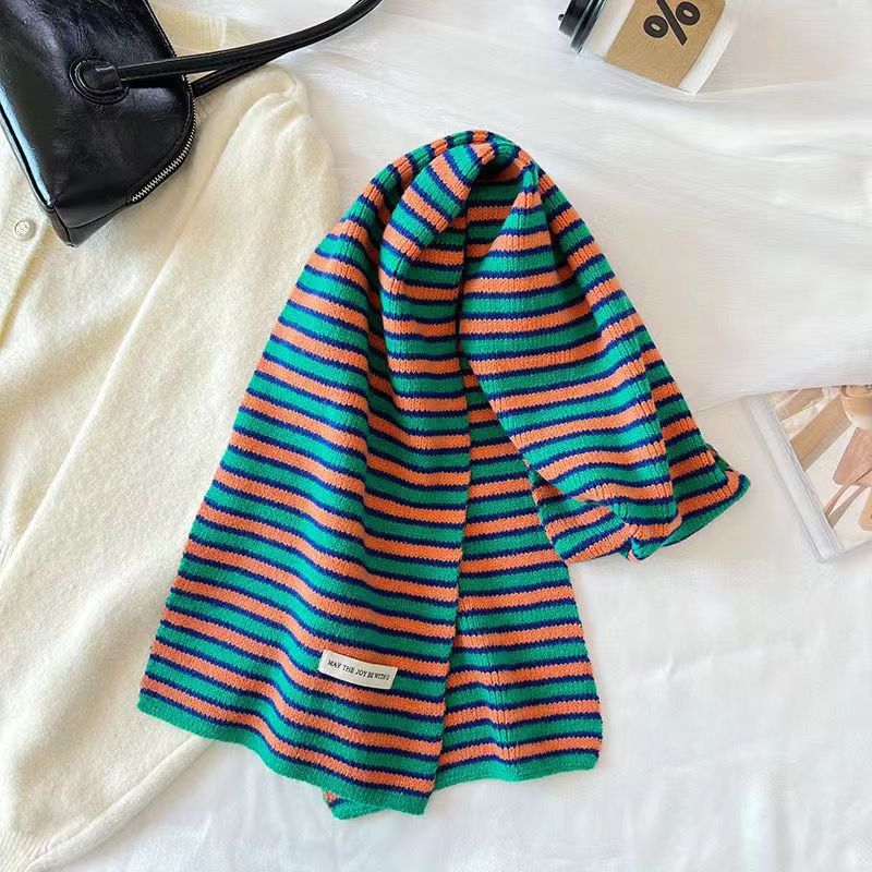 한국 예술적 줄무늬 가을과 겨울 따뜻한 니트 편지 양모 스카프 학생 장식 여성 올 매치 롱 스트립스토어 가기