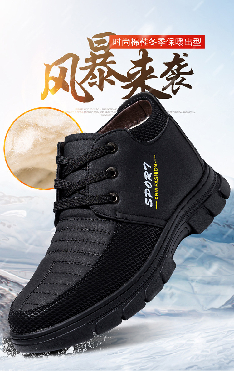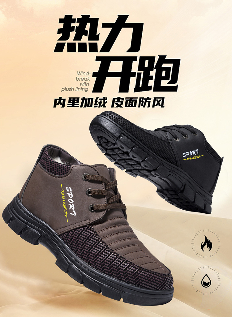 면화 남성용 겨울 가죽 방수 하이 탑 따뜻한 코튼 부츠 북동쪽 두꺼운 중년 및 노인 기모 미끄럼 방지 스노우 부츠