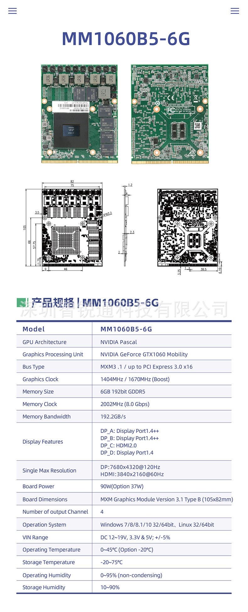 GTX1060m 6G 192bit GDDR 5 256*32 2DP HDMI DP MXMTypeB 산업 그래픽