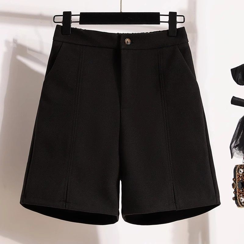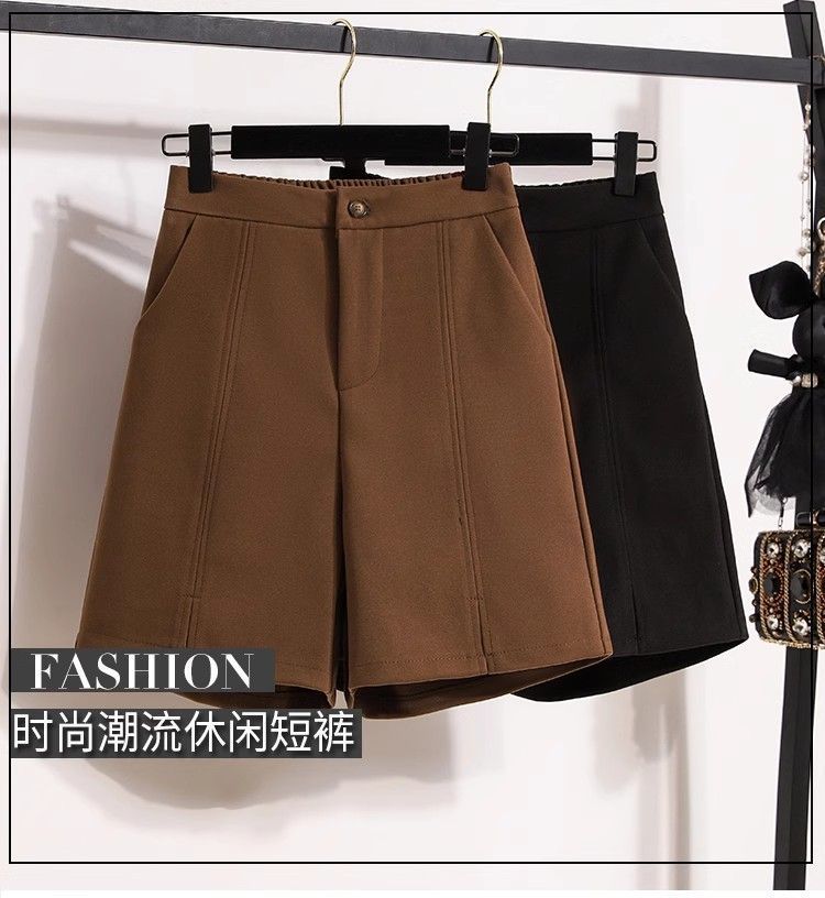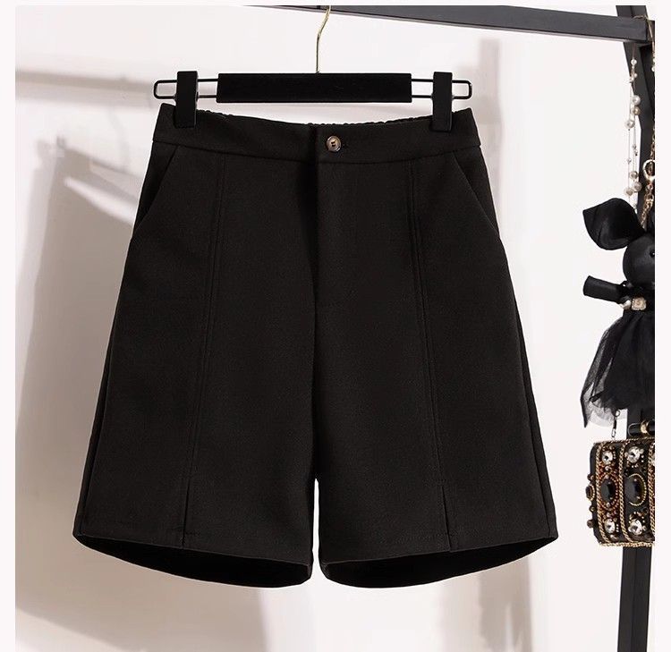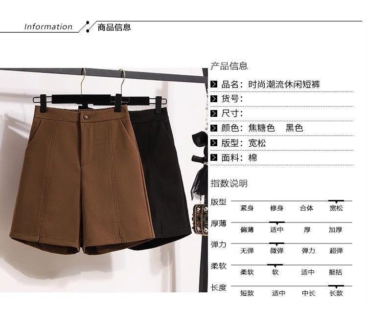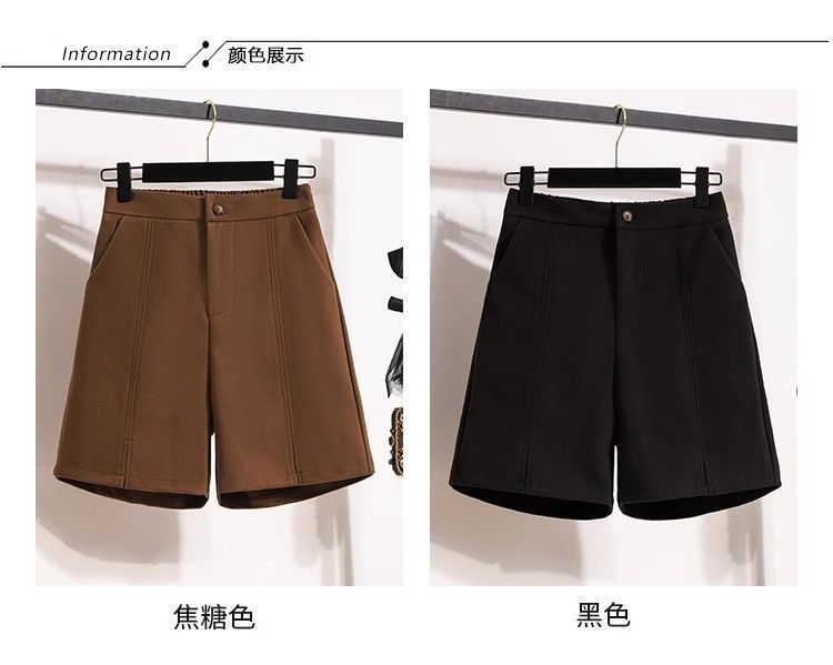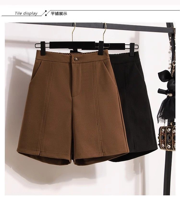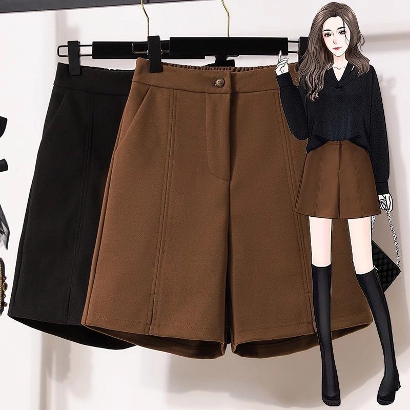 2025년 가을 겨울 플러스 사이즈 모직 반바지 여성용 뚱뚱한 여성용 하이웨이스트 슬림핏 아우터웨어 A라인 5부 바지 와이드 레그 부츠 팬츠스토어 가기
