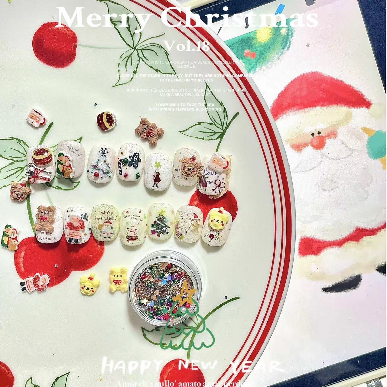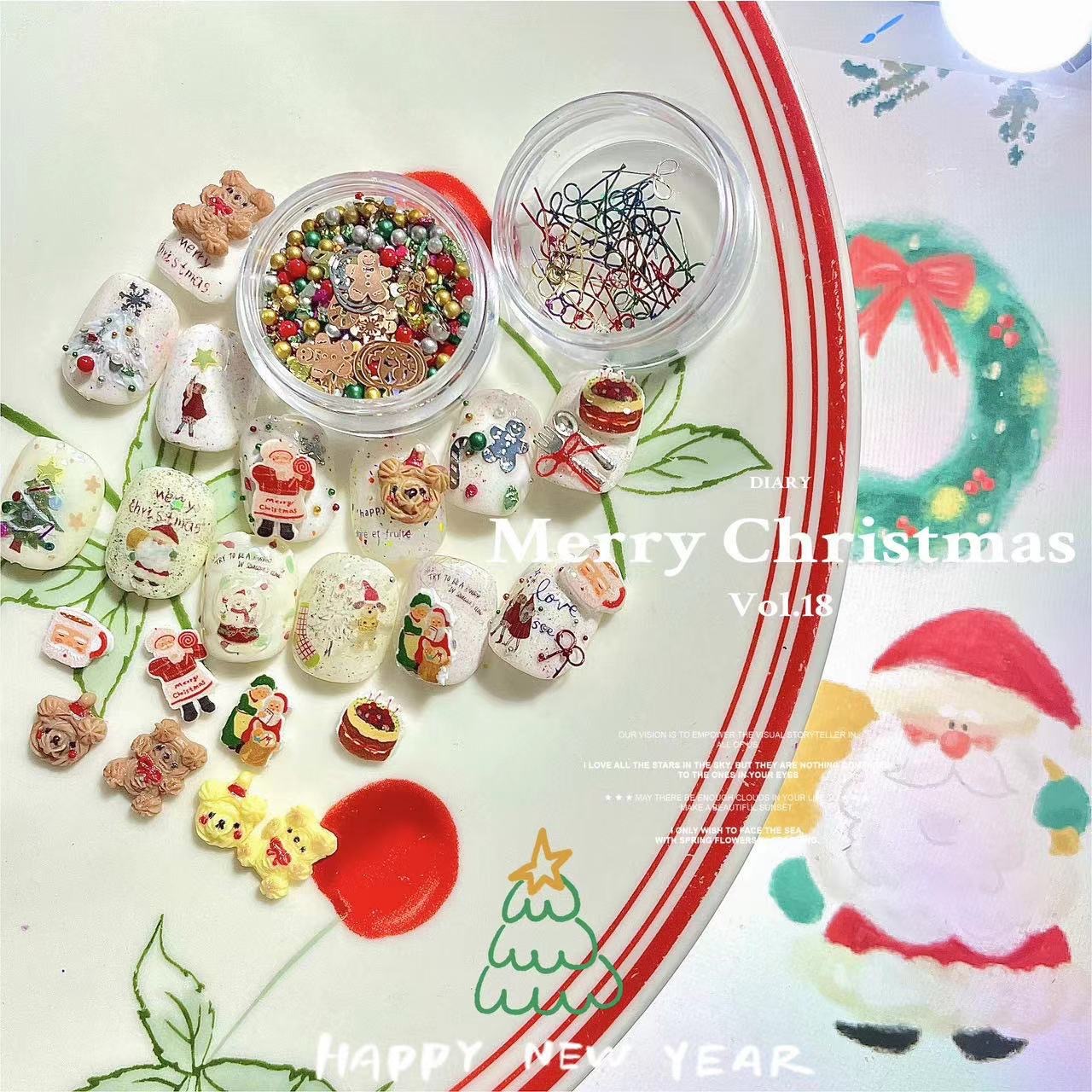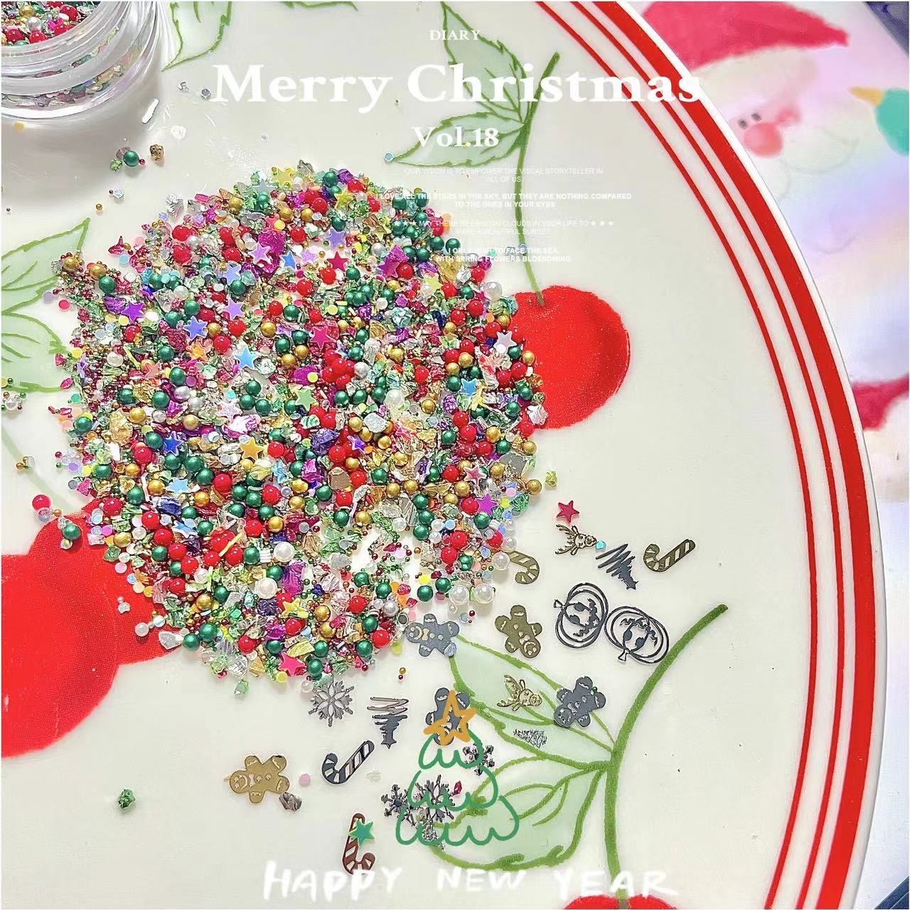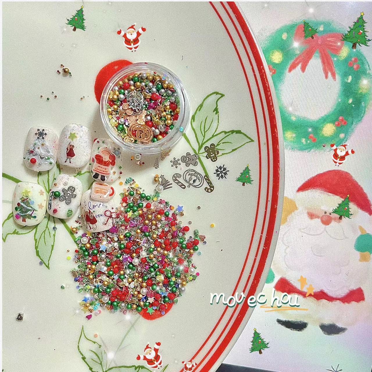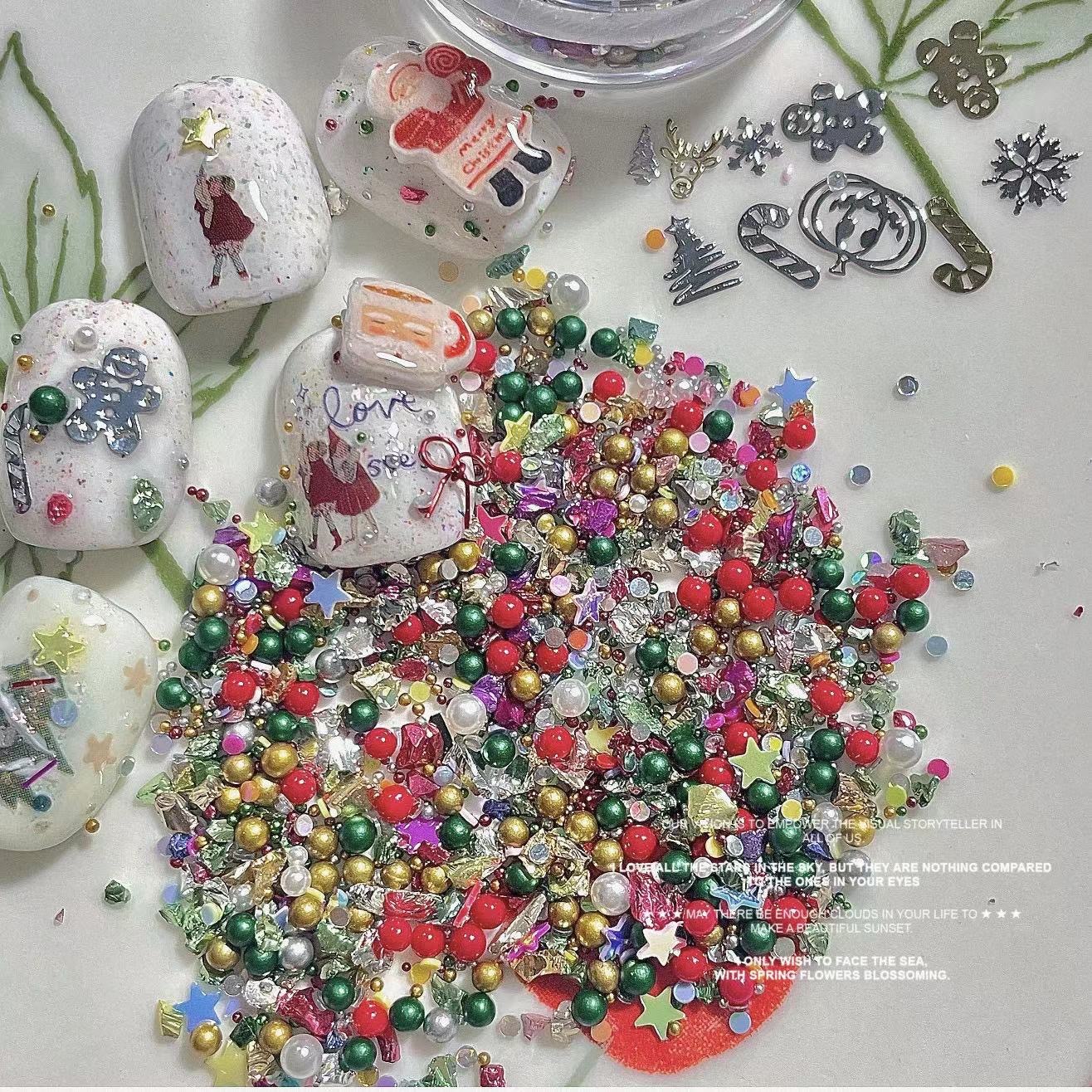 한펑, 짧은 갑옷 크리스마스 분위기 네일 아트 소재 혼합 컬러 구슬 자갈 웨이브 도트 스타 속편 금속 패치스토어 가기