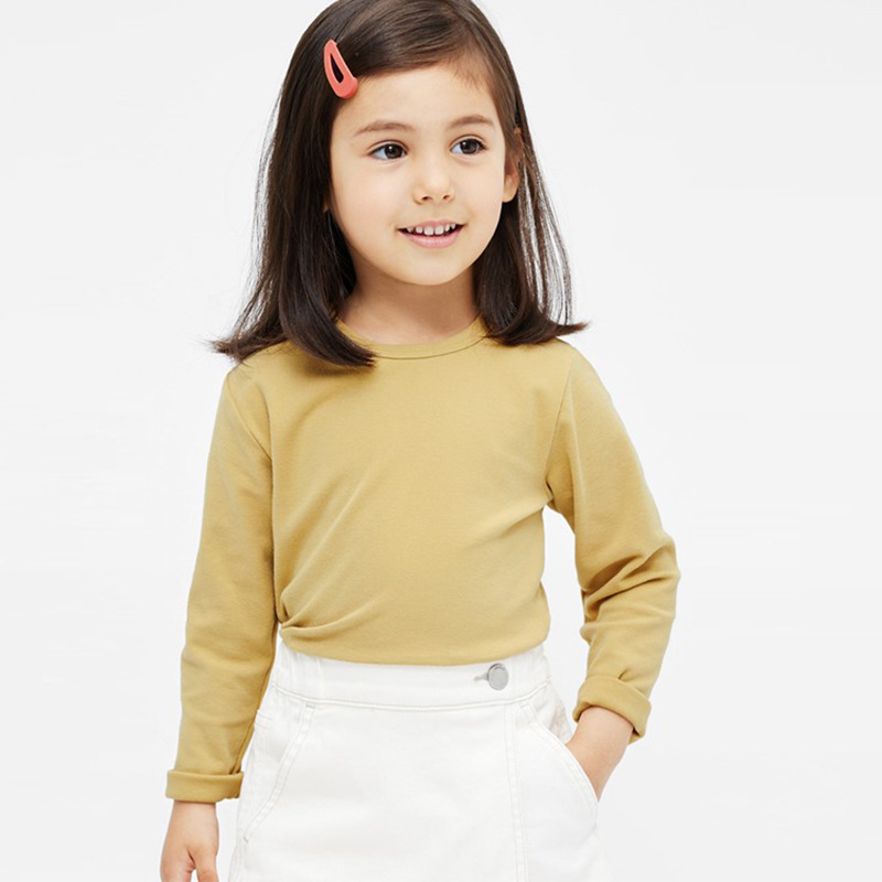 봄과 가을 어린이 탄성 바닥 셔츠 탑 소년과 소녀를위한 순수 면화 스레드 긴팔 풀오버 따뜻한 내부 가을 옷