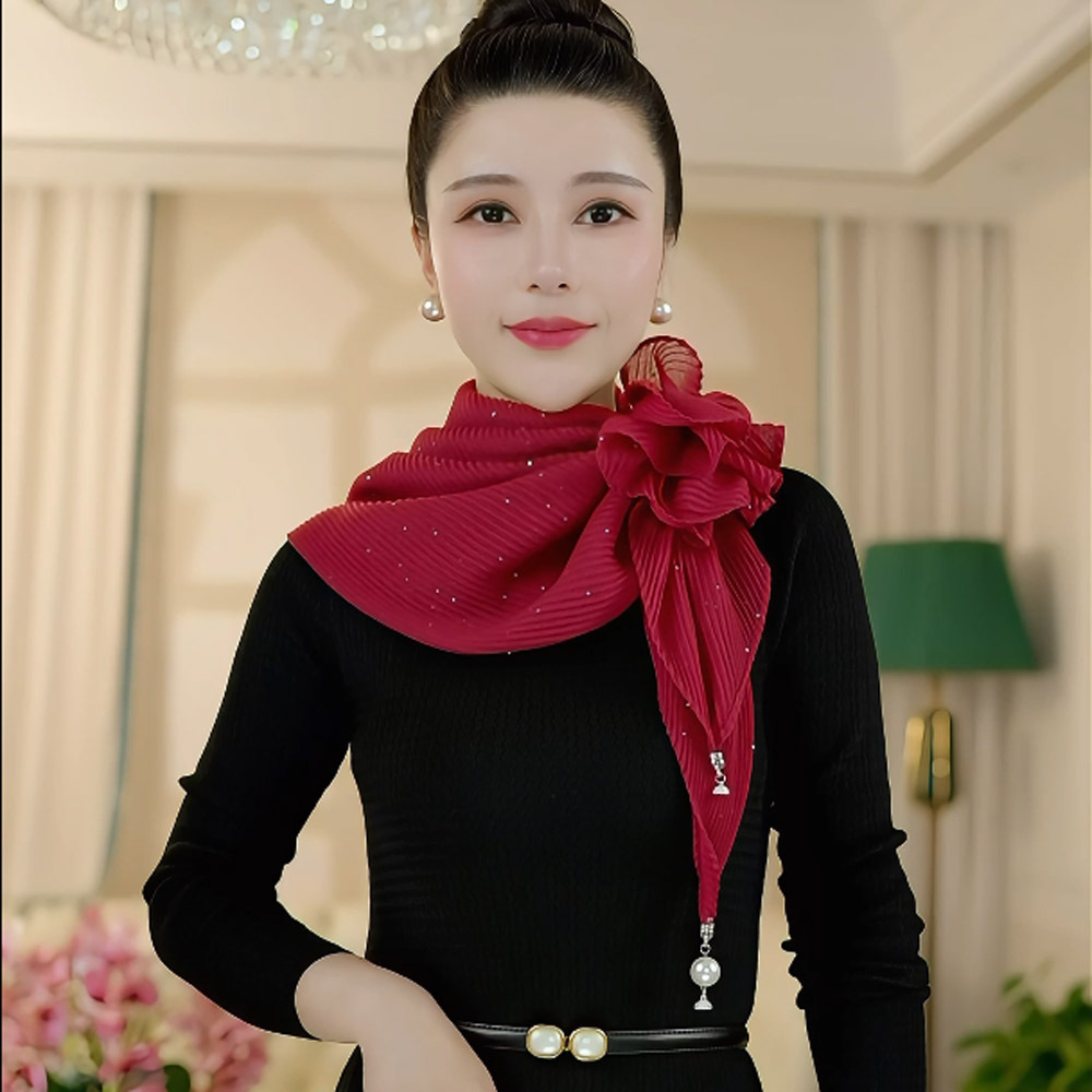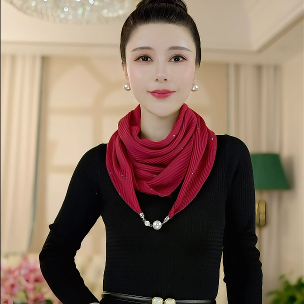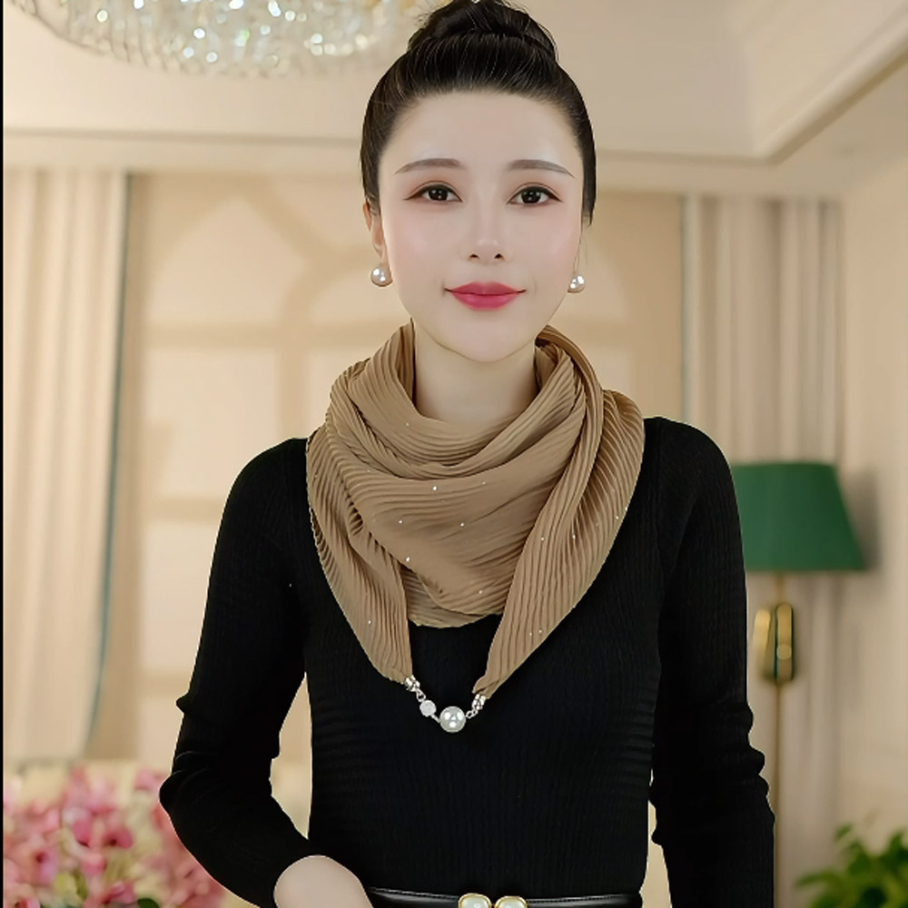 2024 새로운 도착 올 매치 패션 주름진 여성 실크 스카프 구슬 마그네틱 버클 스카프