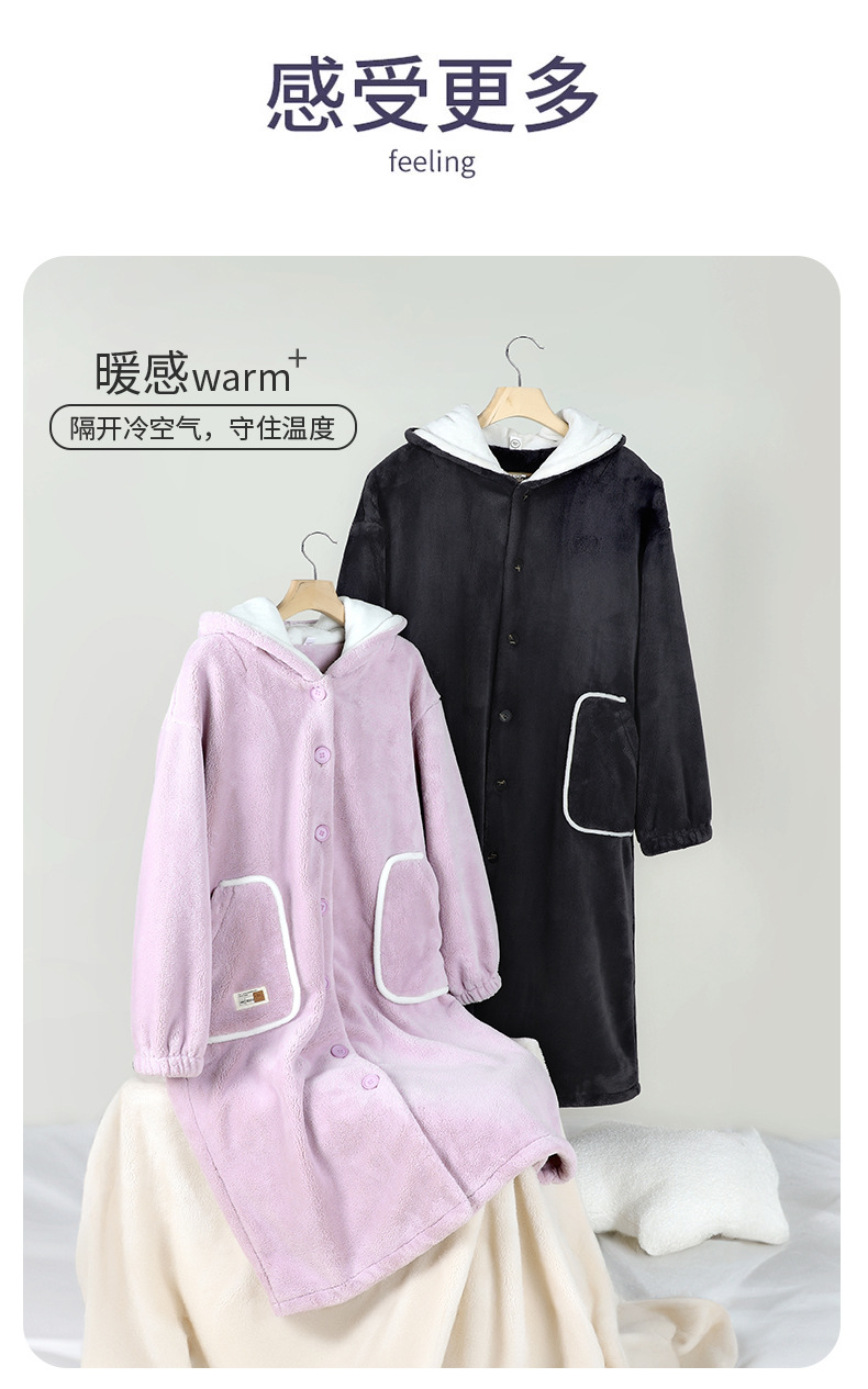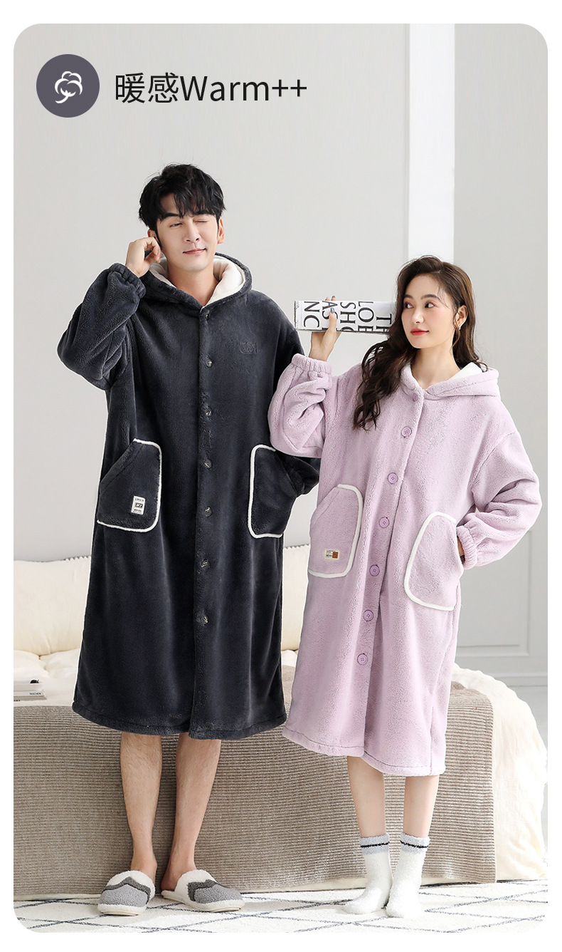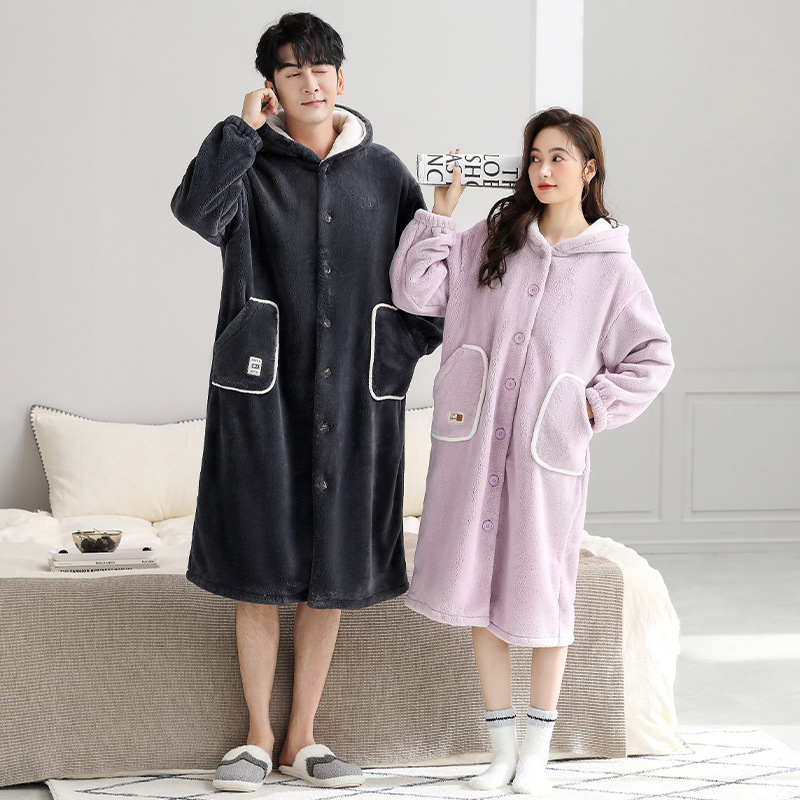 나이트 가운 기모 새로운 가을과 겨울 커플 산호 양털 나이트 가운 여성 플란넬 긴 남자 홈 가운