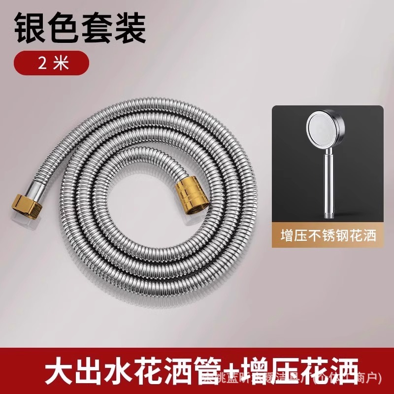 • 【실버 2종 세트】 대유량 샤워 호스 2.0m 호스 + 스테인리스 스틸 샤워 헤드