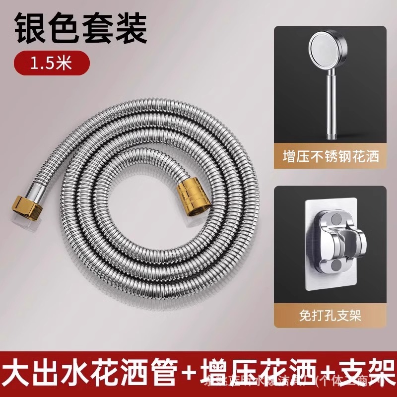 • 【3종 세트】 대유량 실버 1.5m 호스 + 스테인리스 스틸 샤워기 헤드 + 거치대