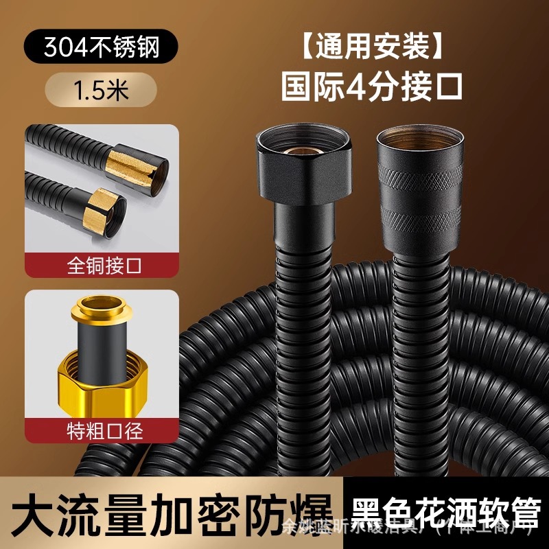 • [3종세트] 대유량 블랙 1.5m 튜브 + 흑요석 블랙 스테인리스 샤워기 + 브라켓