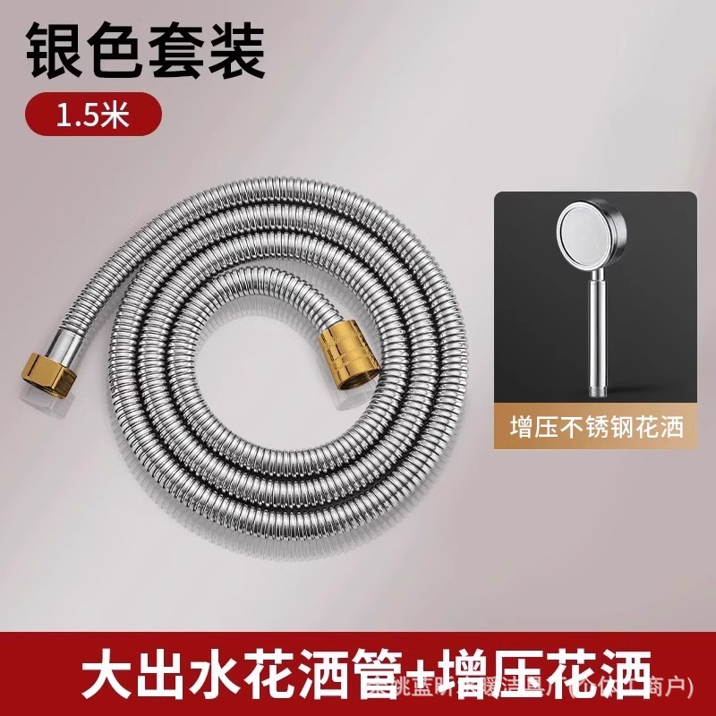 • 【실버 2종 세트】 대유량 샤워 호스 1.5m 호스 + 스테인리스 스틸 샤워 헤드