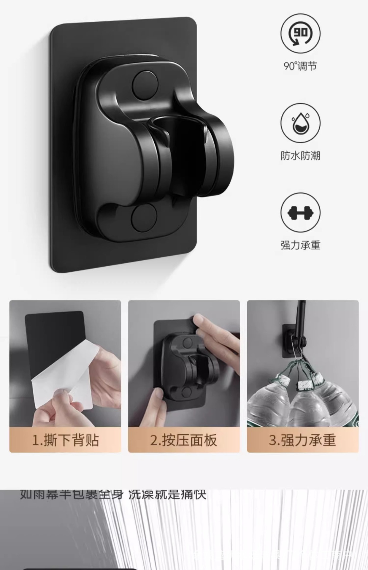 • 【3종 세트】 대유량 블랙 2m 호스 + 스테인리스 스틸 샤워 헤드 + 거치대