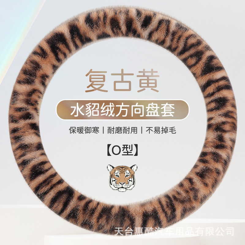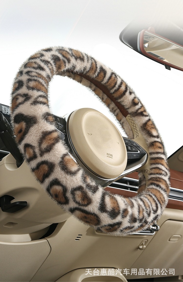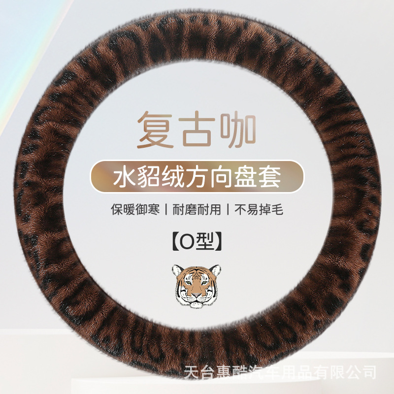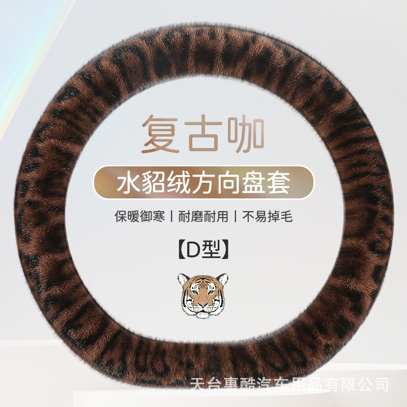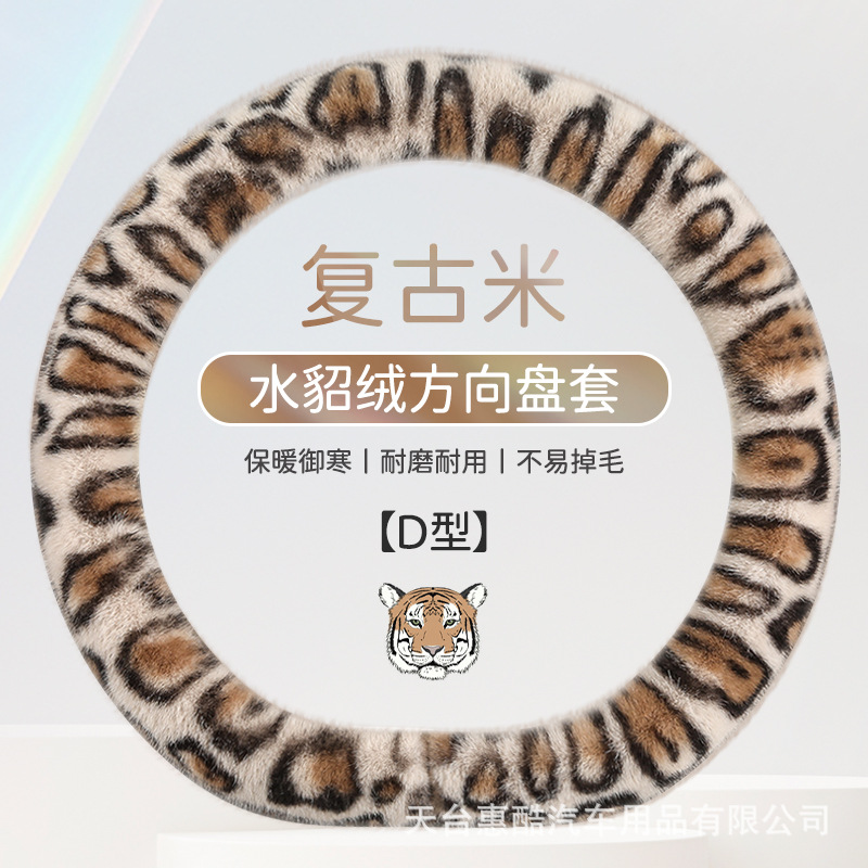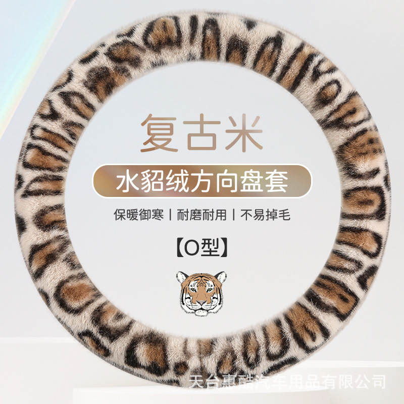 봉제 차 스티어링 휠 커버 유니버설 겨울 복고풍 레오파드 무늬 따뜻한 자동차 인테리어 밍크 벨벳 편안한 자동차 핸들 커버