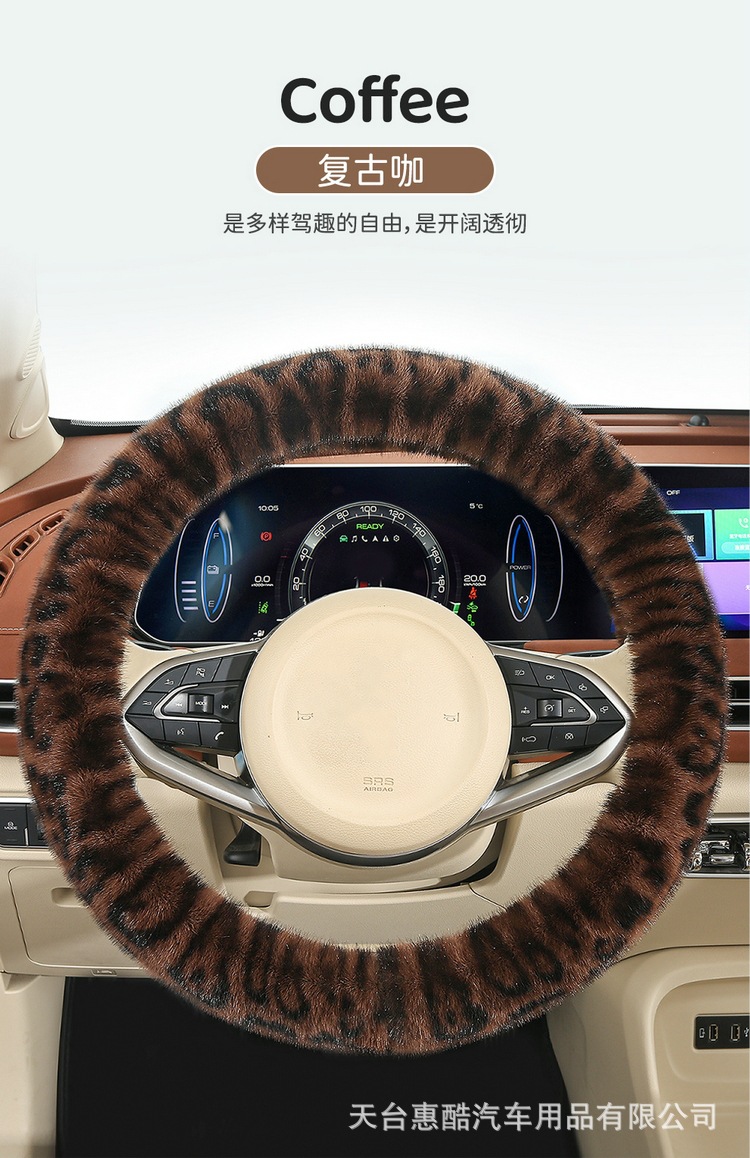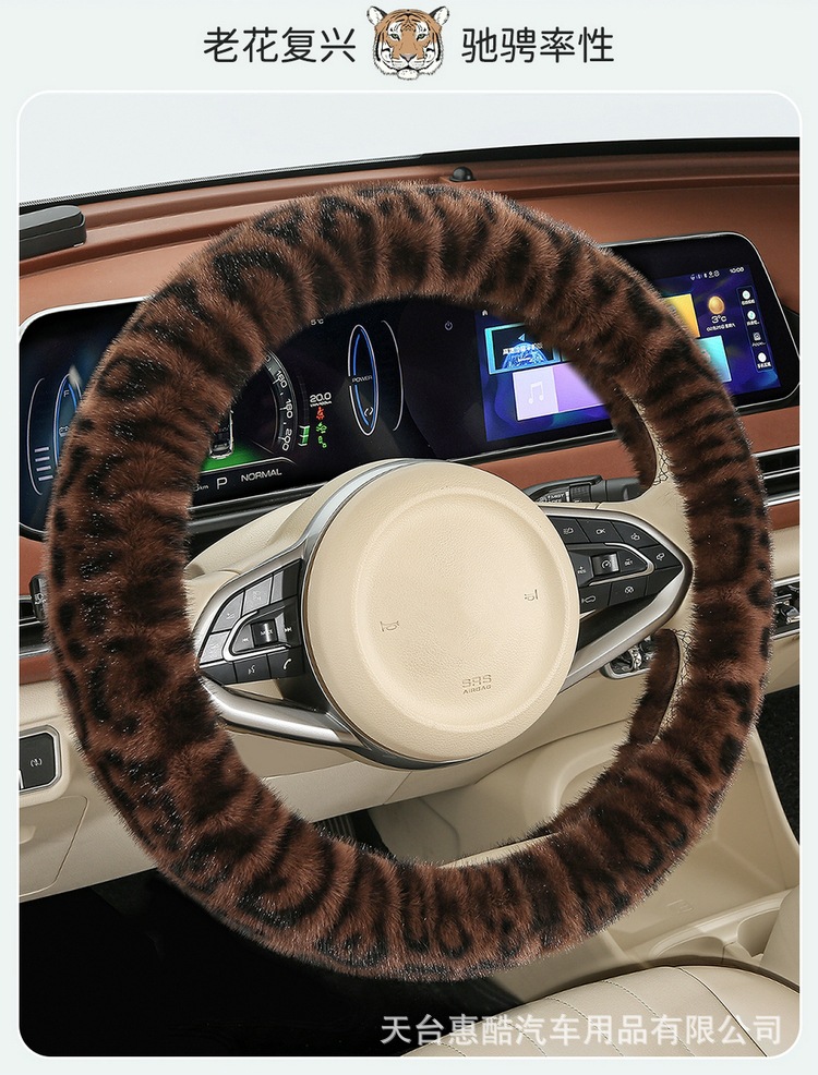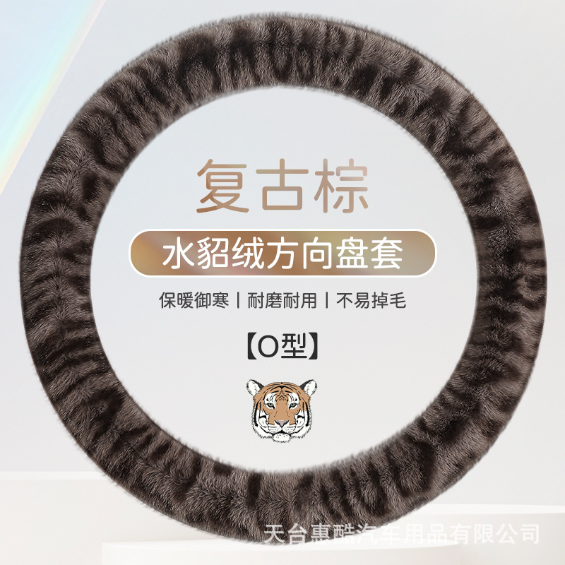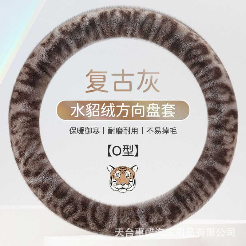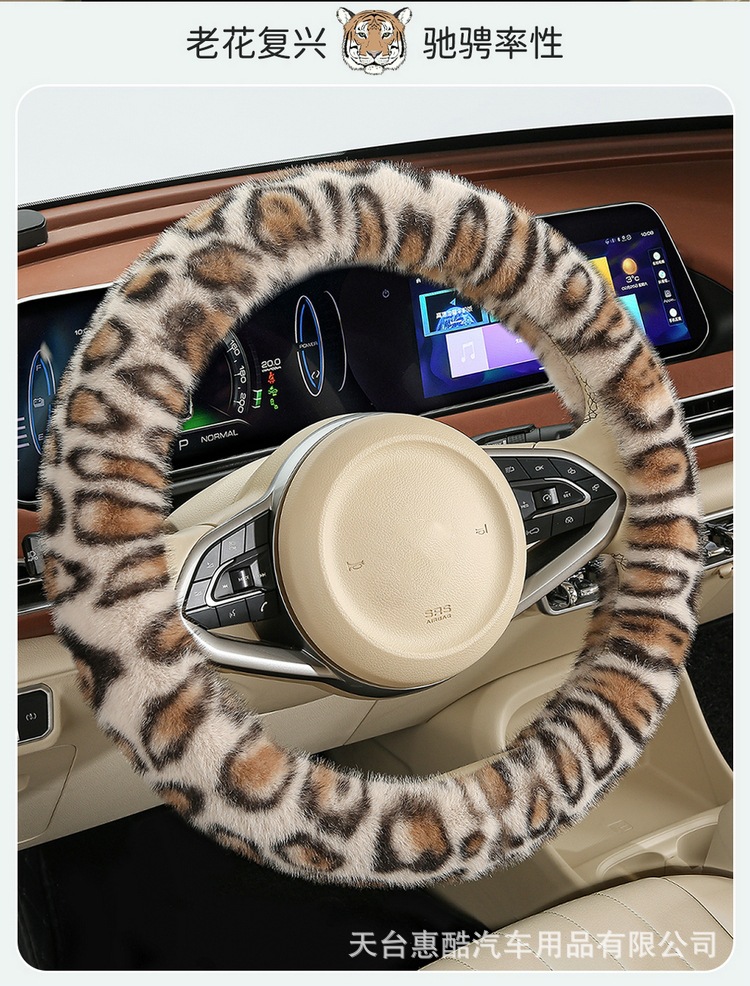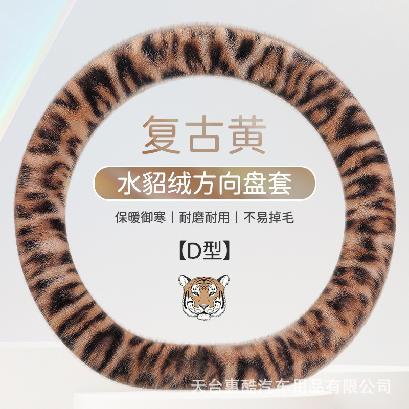 봉제 차 스티어링 휠 커버 유니버설 겨울 복고풍 레오파드 무늬 따뜻한 자동차 인테리어 밍크 벨벳 편안한 자동차 핸들 커버