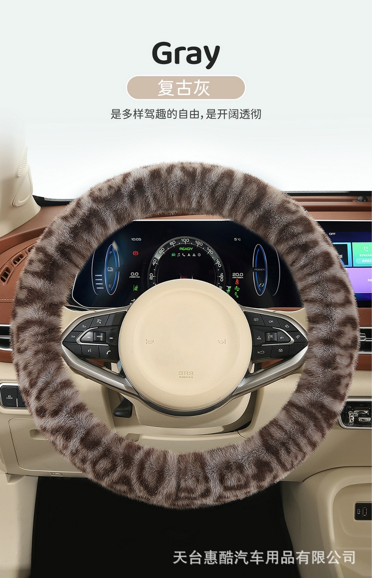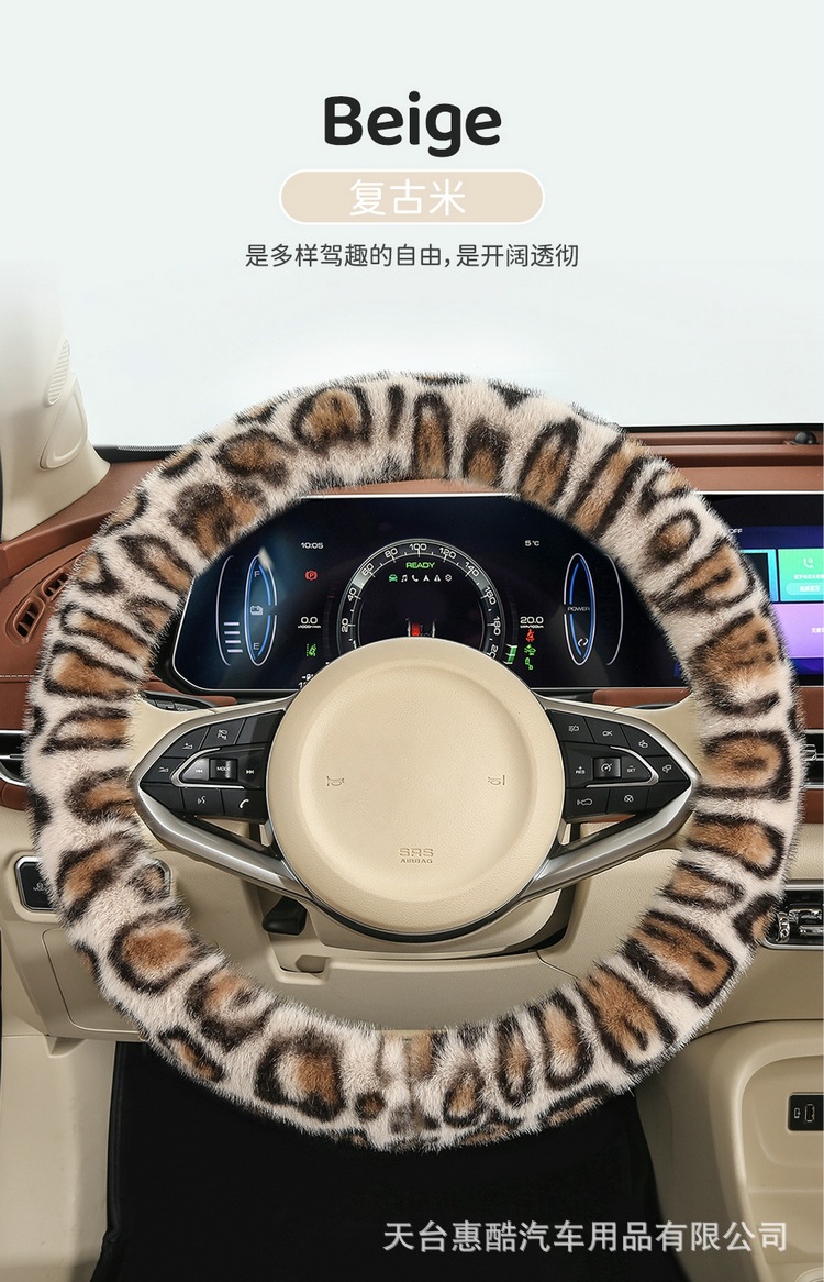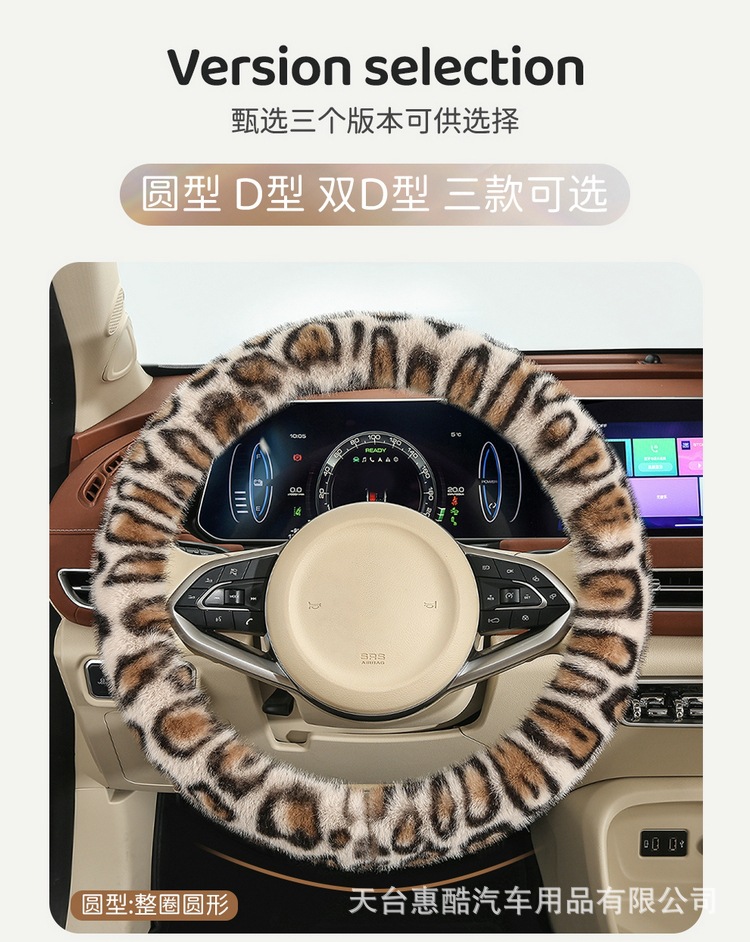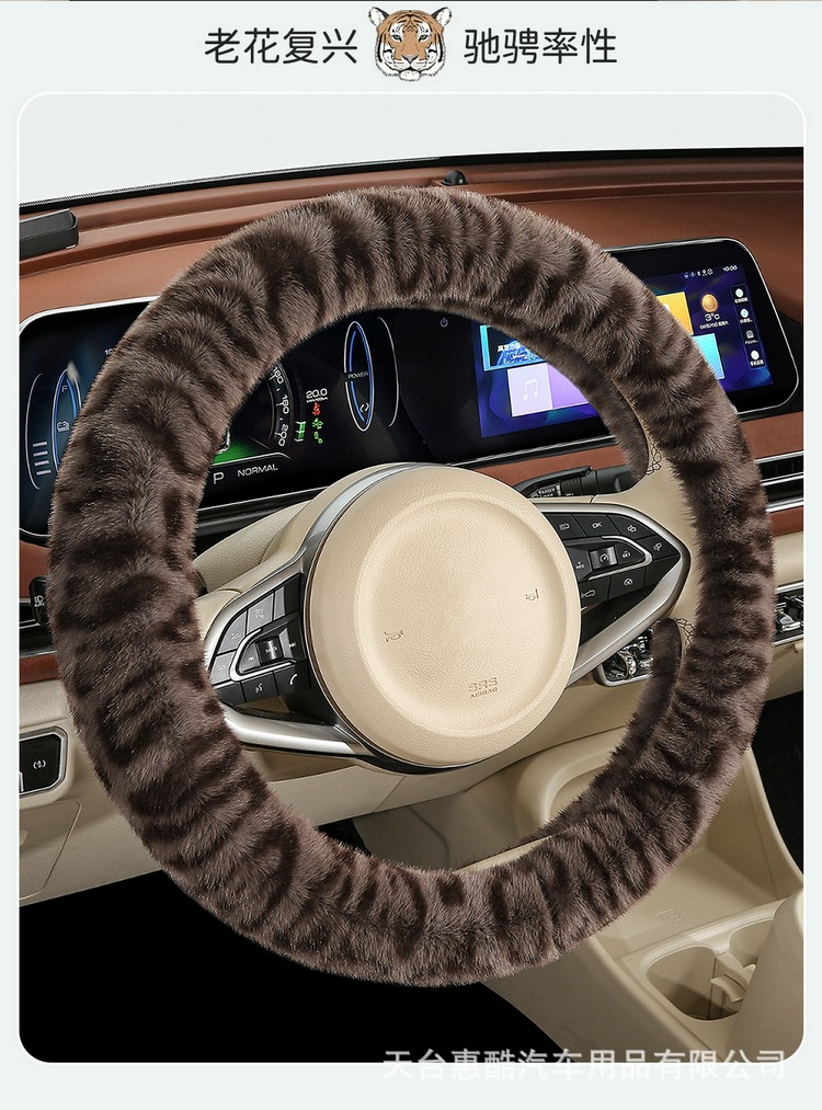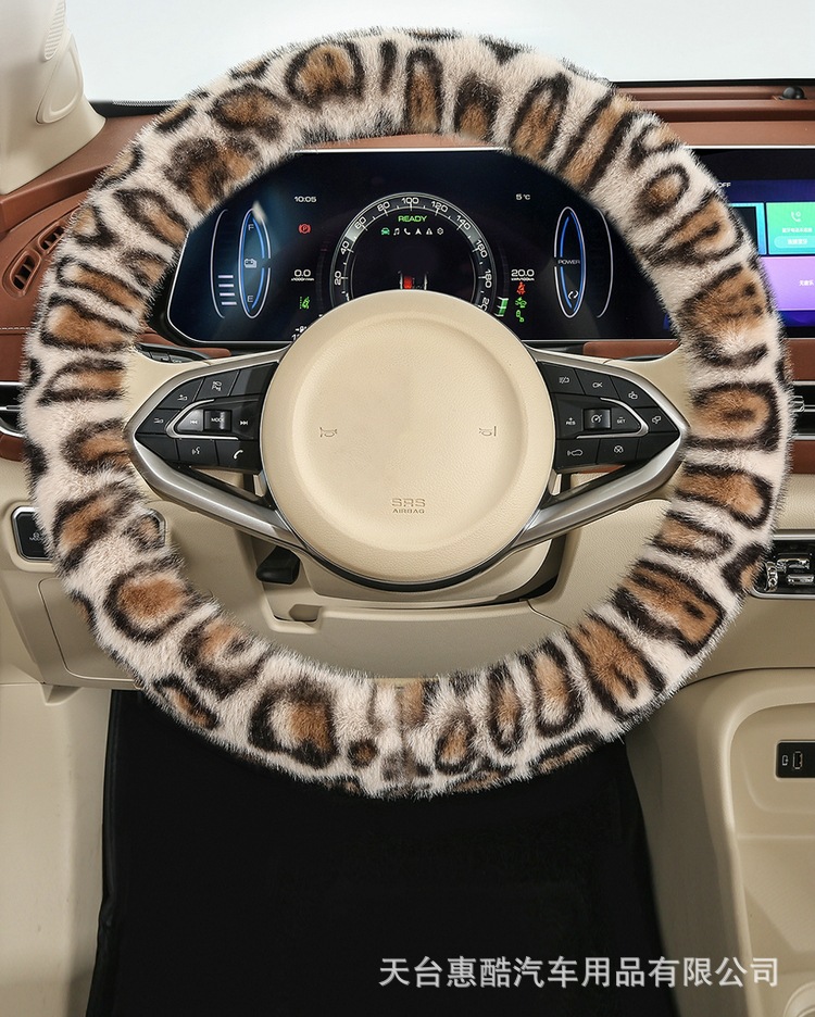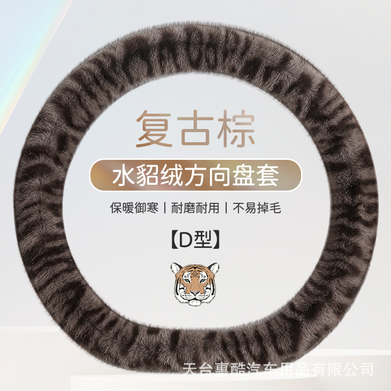 봉제 차 스티어링 휠 커버 유니버설 겨울 복고풍 레오파드 무늬 따뜻한 자동차 인테리어 밍크 벨벳 편안한 자동차 핸들 커버