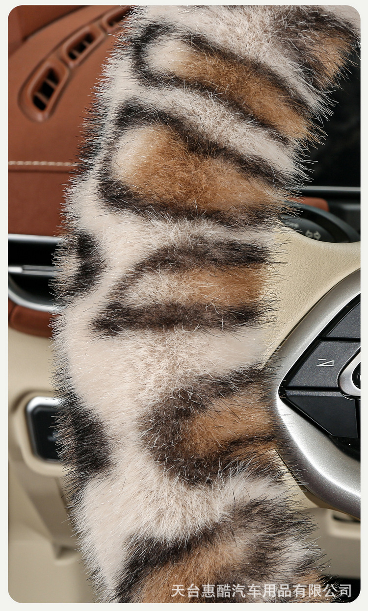 봉제 차 스티어링 휠 커버 유니버설 겨울 복고풍 레오파드 무늬 따뜻한 자동차 인테리어 밍크 벨벳 편안한 자동차 핸들 커버스토어 가기
