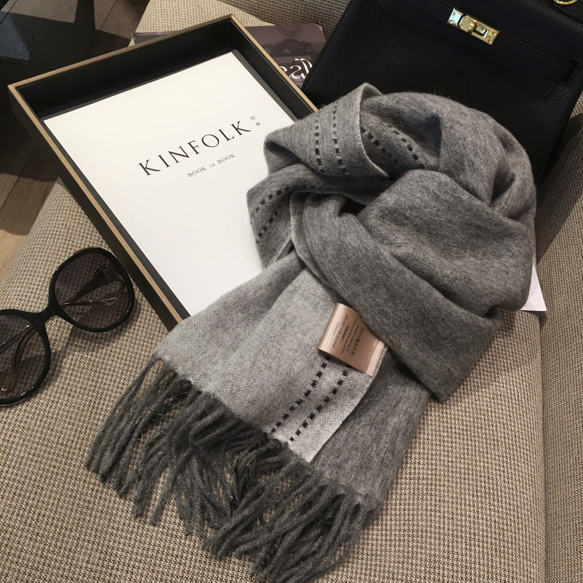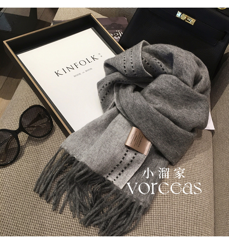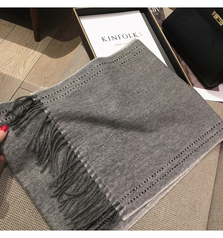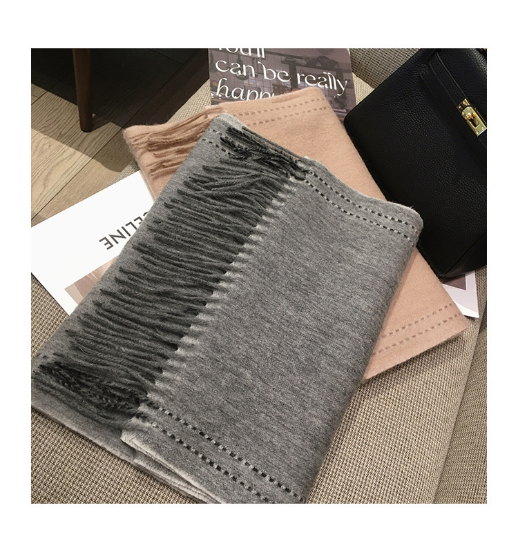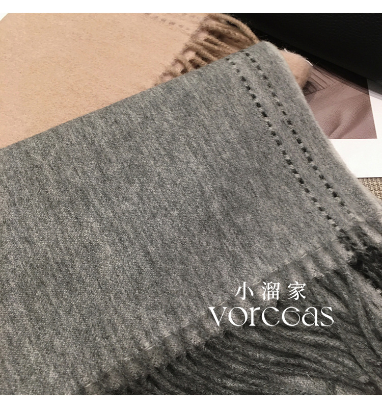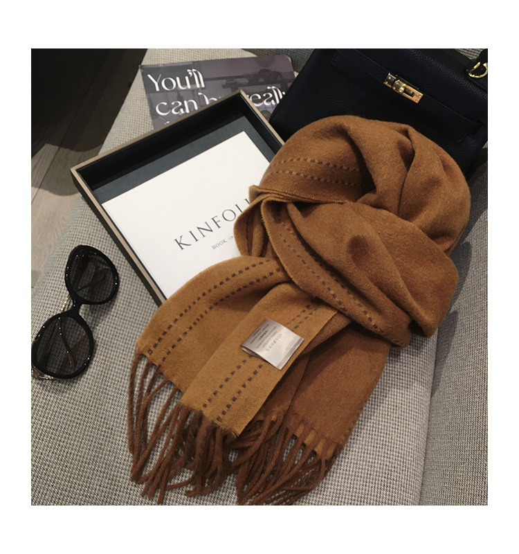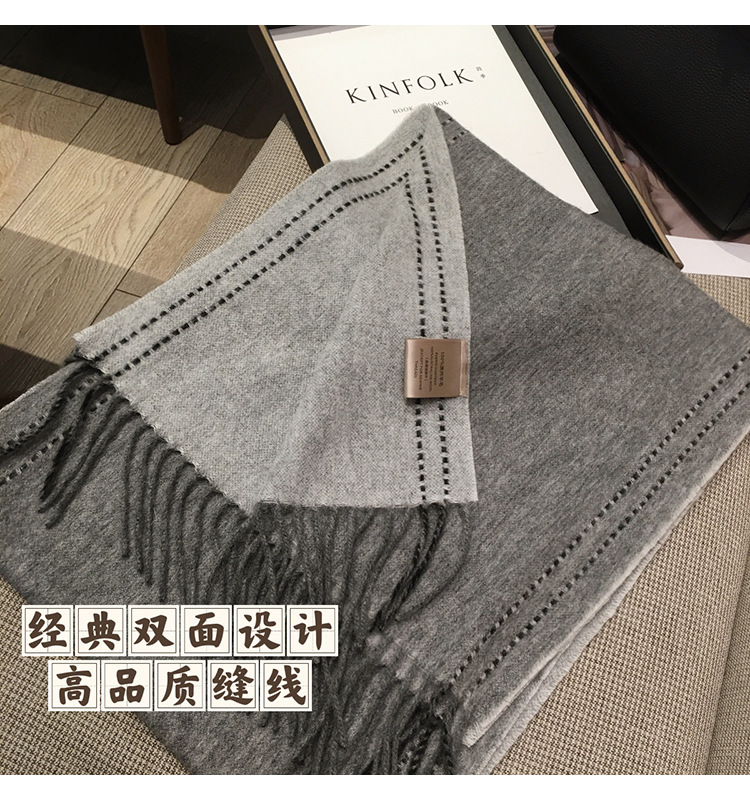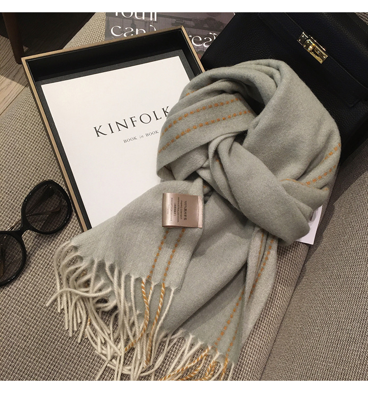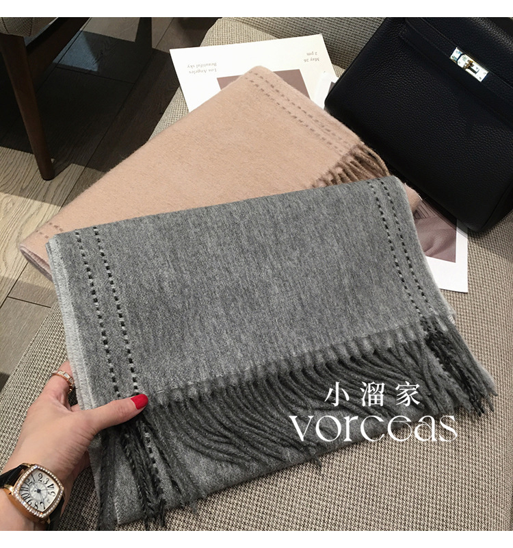 다용도 100% 울 순수 울 스카프 여성용 솔리드 컬러 스티치 디자인 양면 캐시미어 숄 겨울 따뜻한 스카프스토어 가기