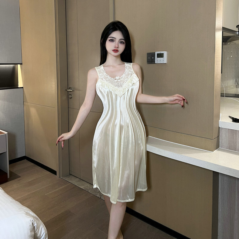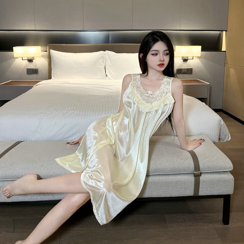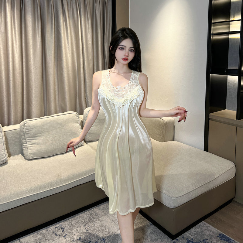 2025 새로운 섹시한 잠옷 여름 잠옷 여성 레이스 민소매 느슨한 대형 하이 엔드 홈웨어 얇은 스타일스토어 가기