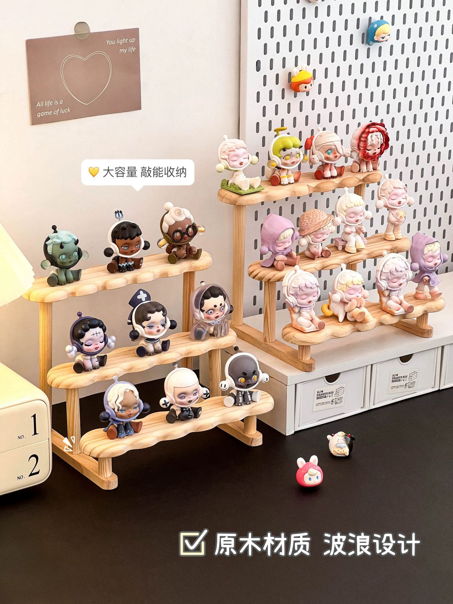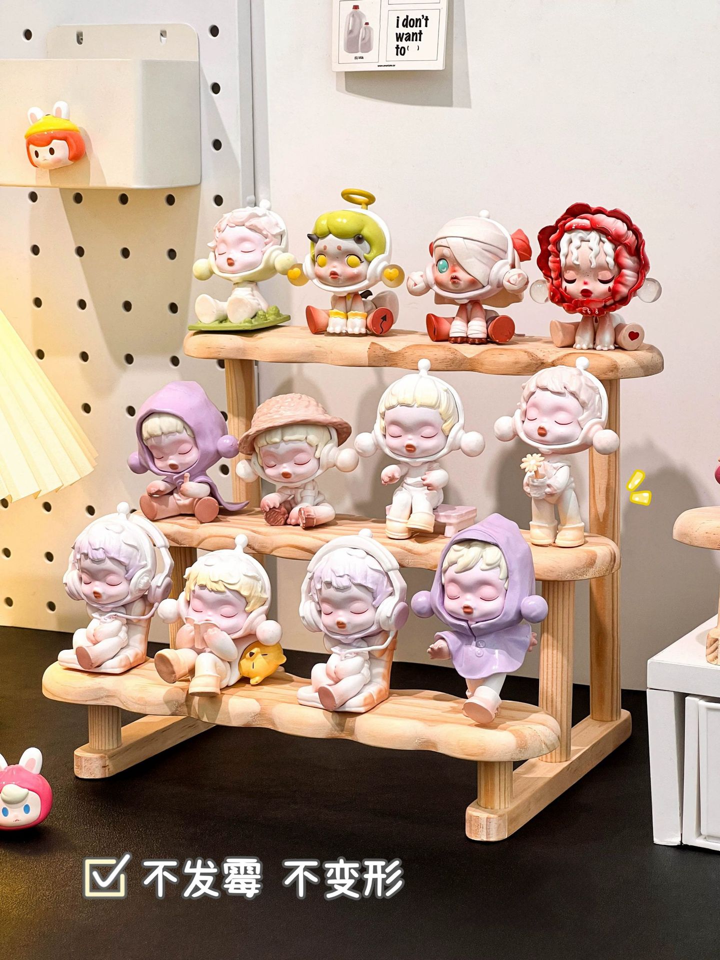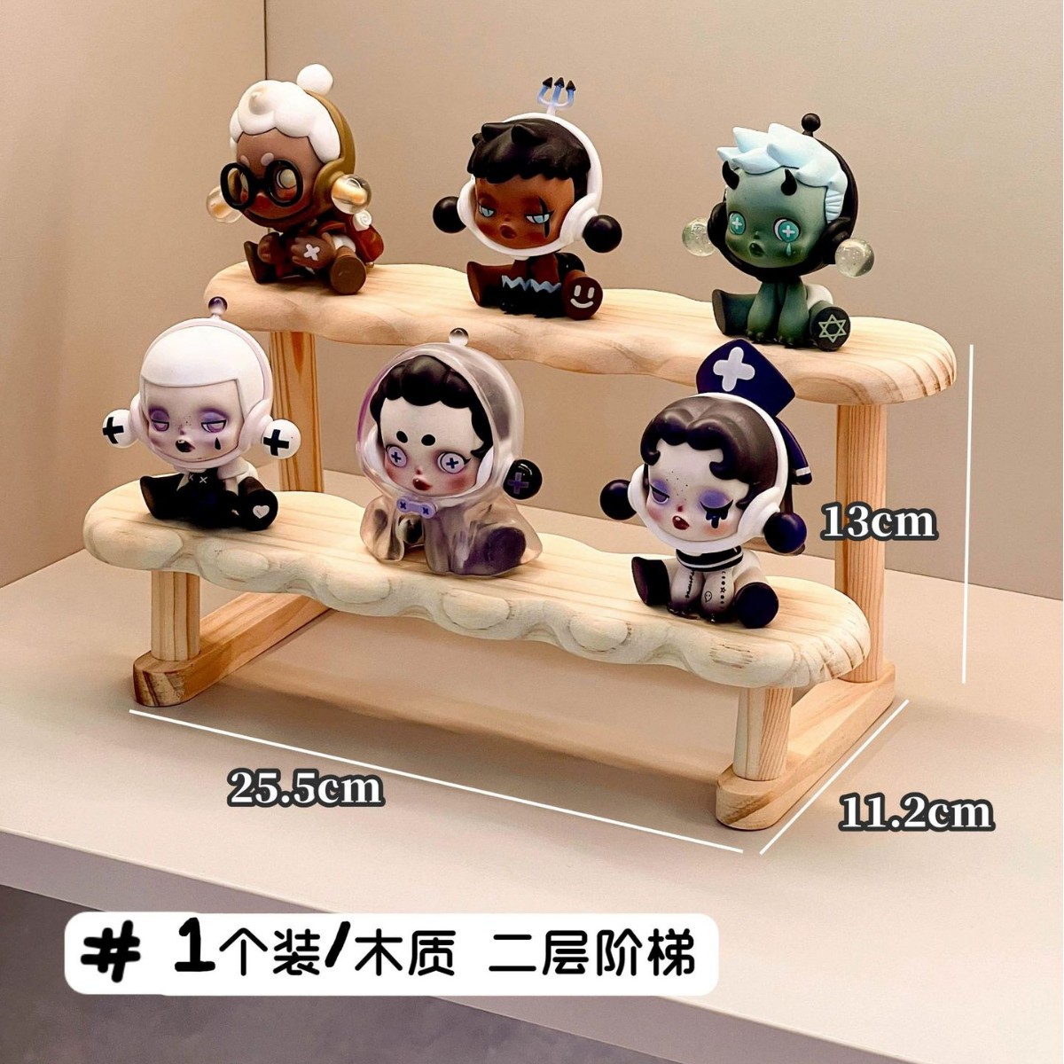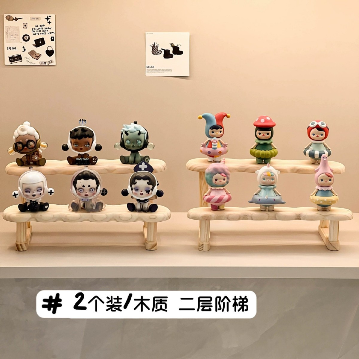나무 블라인드 박스 스토리지 디스플레이 랙 스테핑 손으로 만든 스토리지 랙 모델 장식품 석고 인형 사다리꼴 디스플레이 랙