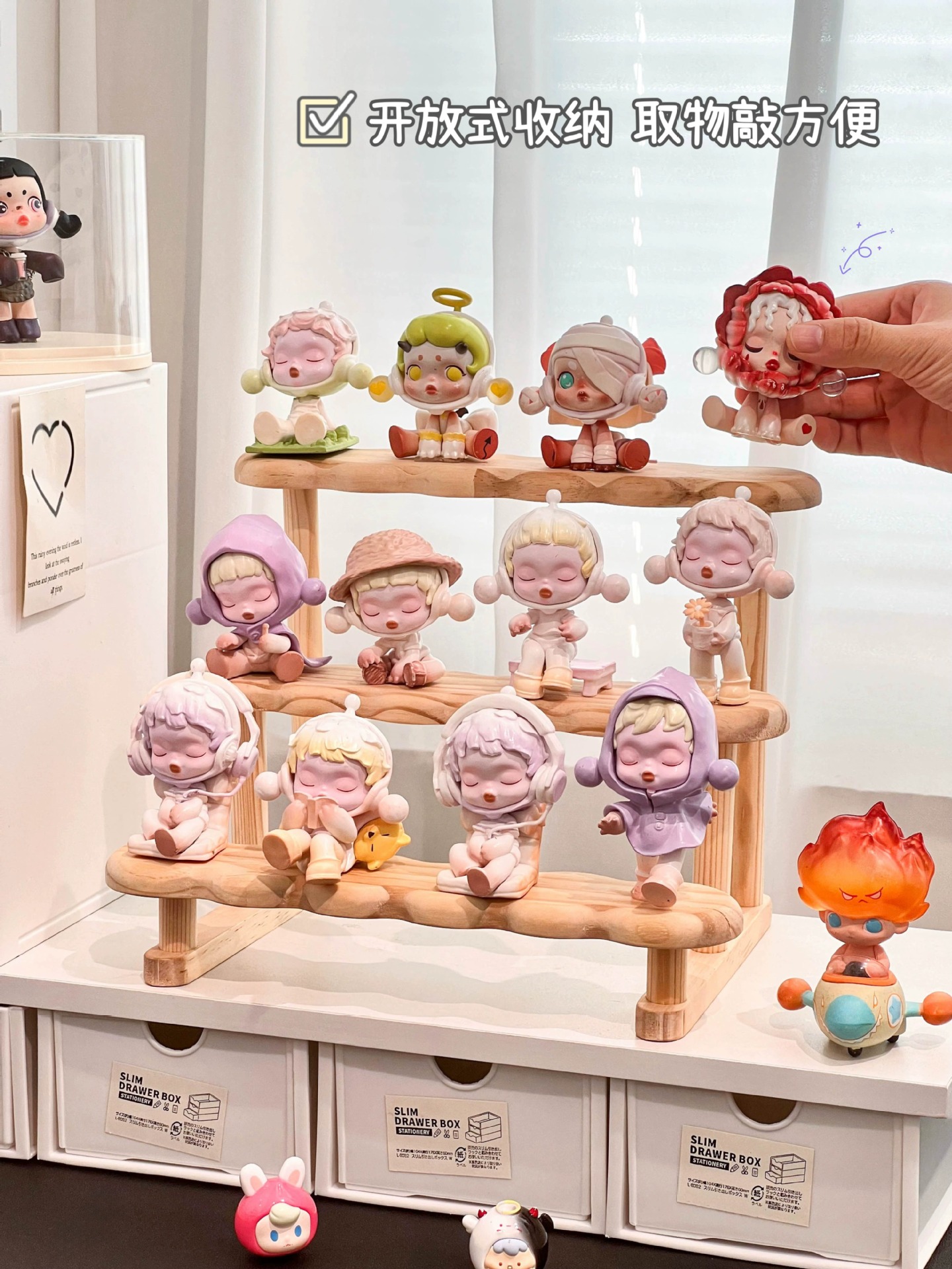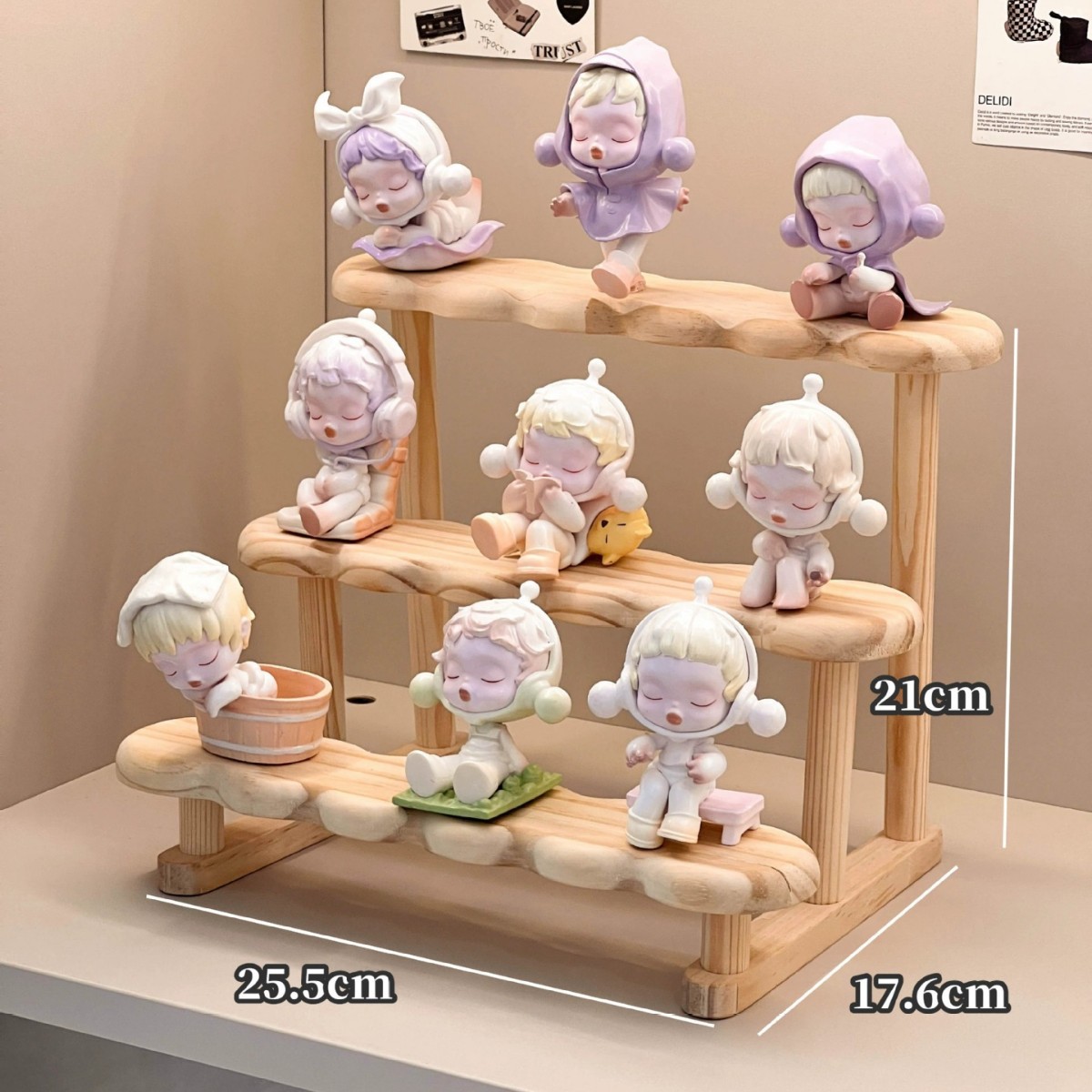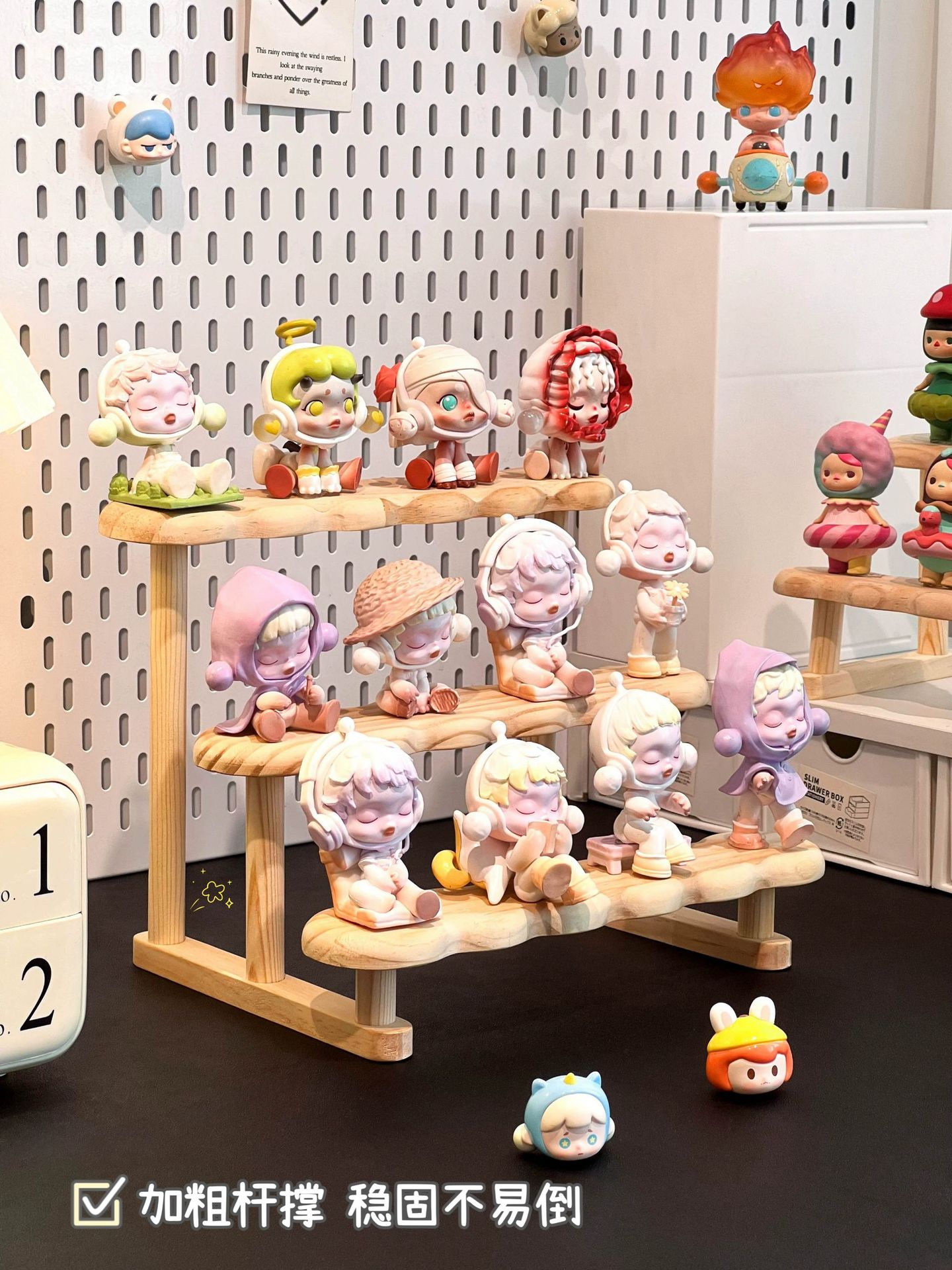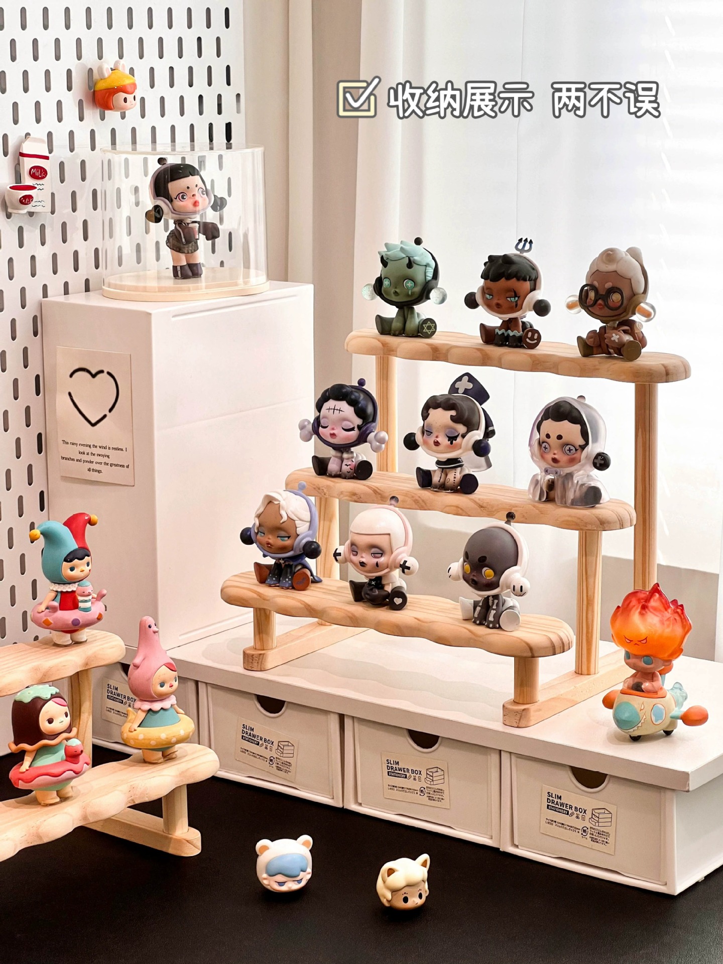 나무 블라인드 박스 스토리지 디스플레이 랙 스테핑 손으로 만든 스토리지 랙 모델 장식품 석고 인형 사다리꼴 디스플레이 랙