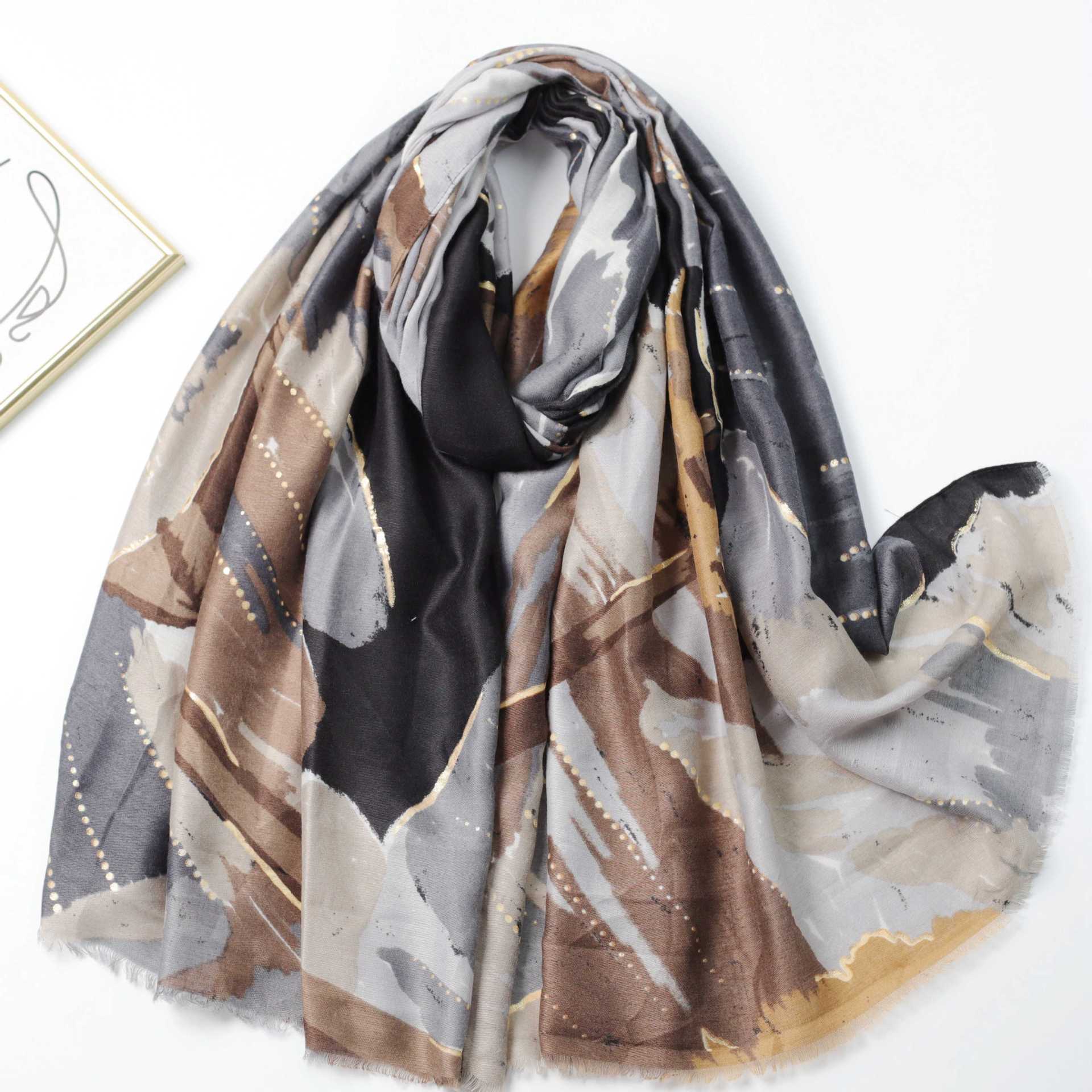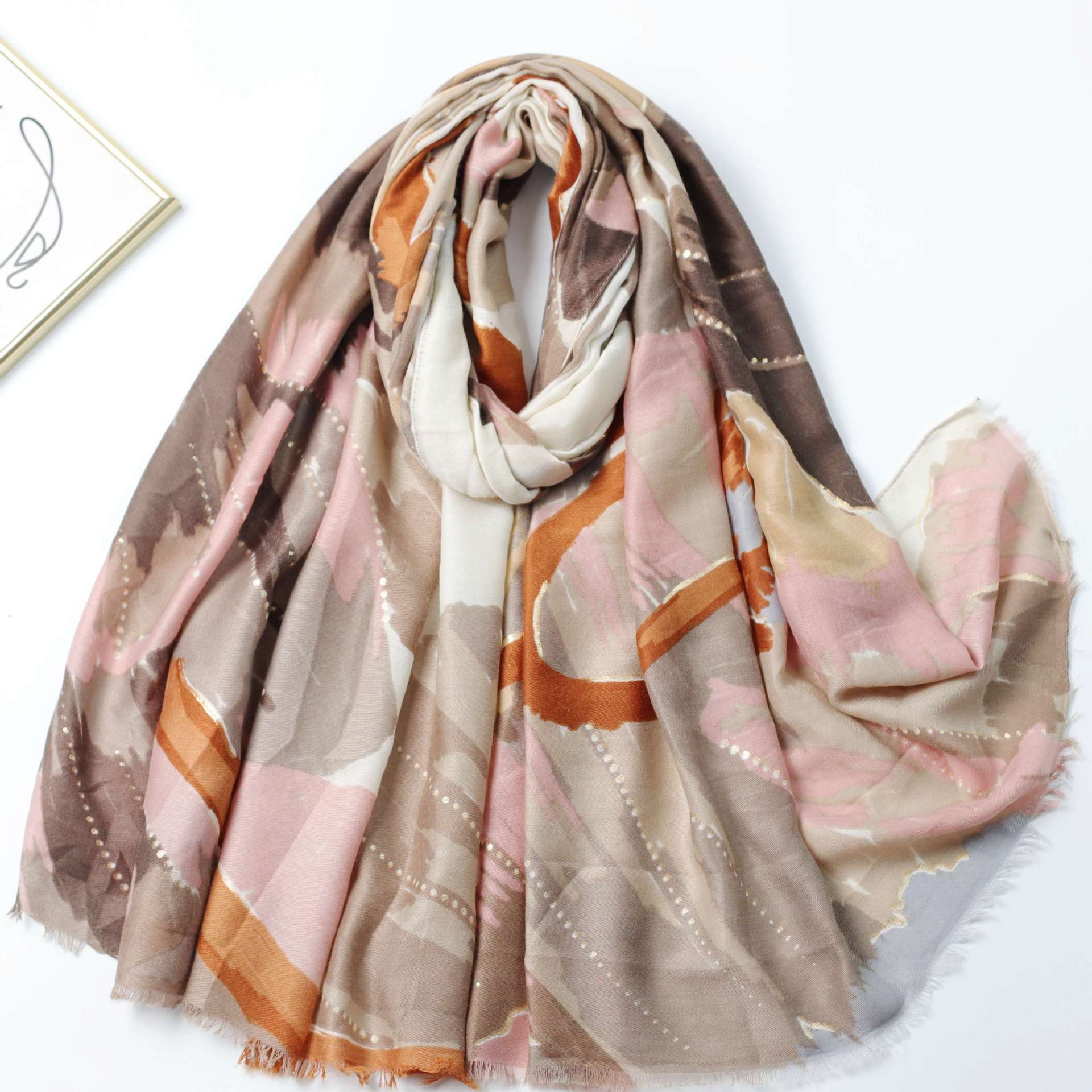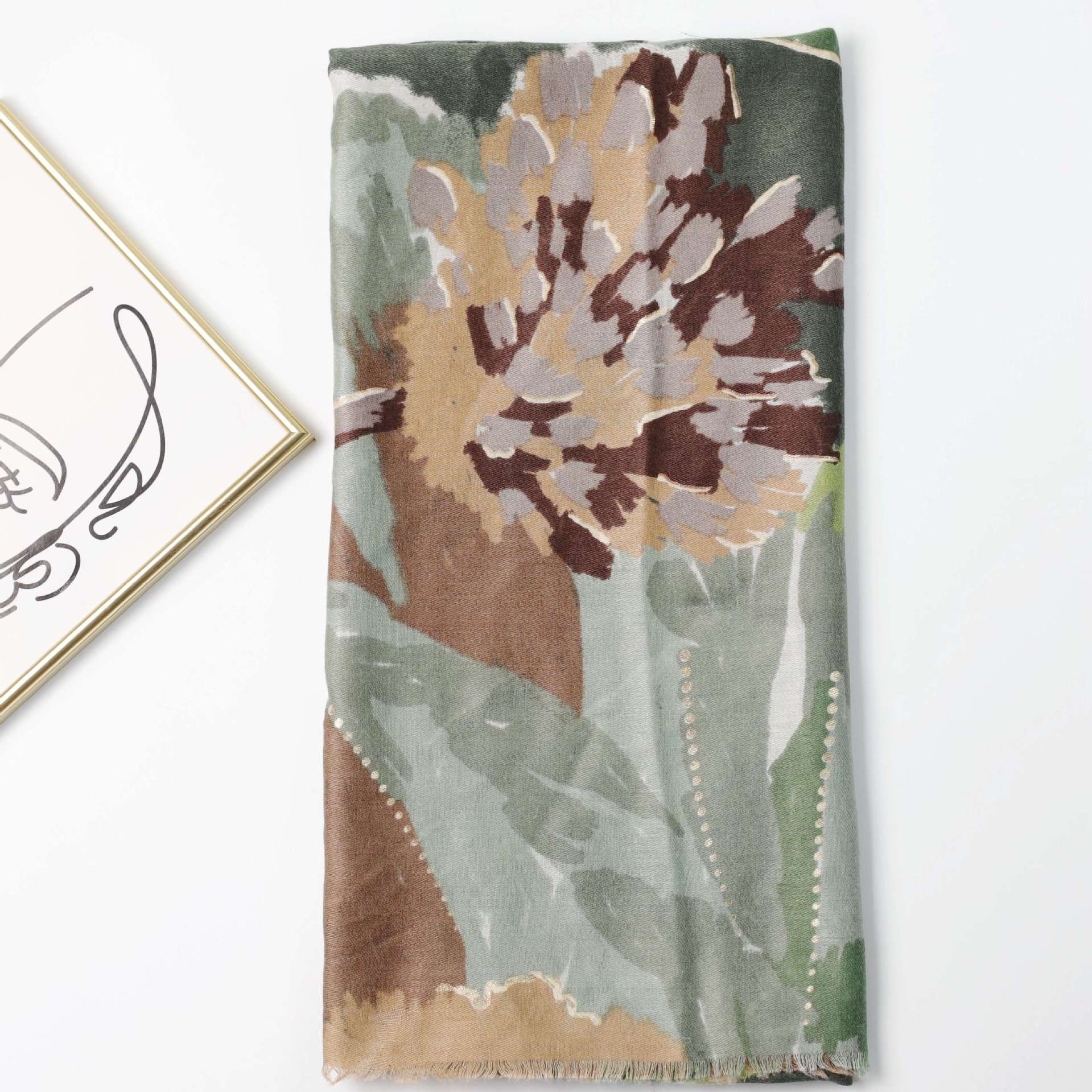 해외 무역 국경 간 라이브 도금 연꽃 연못 인쇄 실크 스카프 가을과 겨울 남성과 여성 올 매치 따뜻한 스카프 목도리