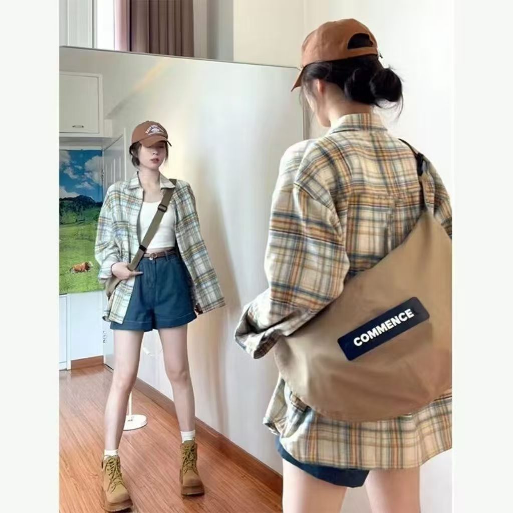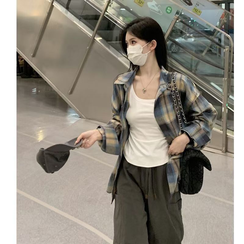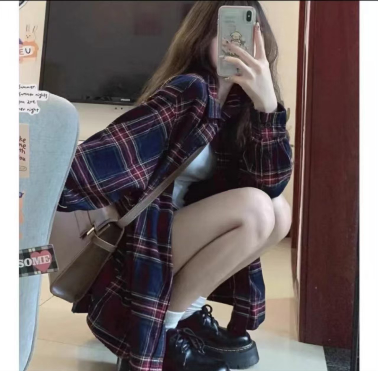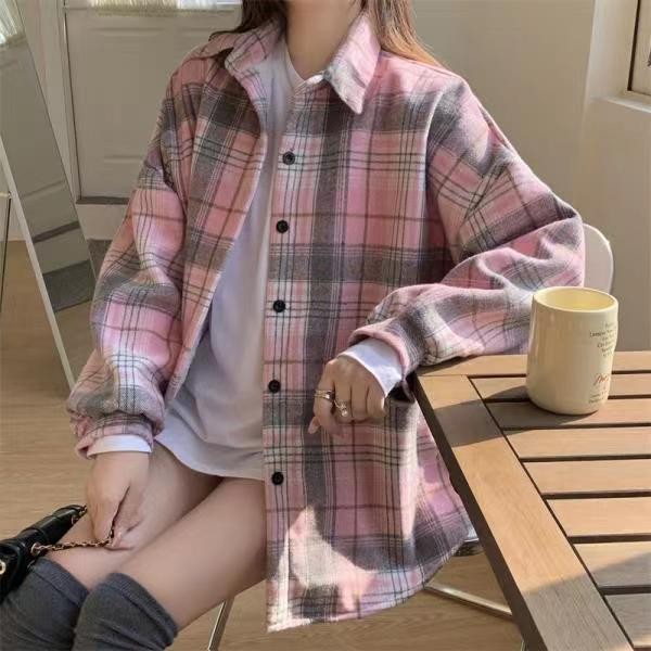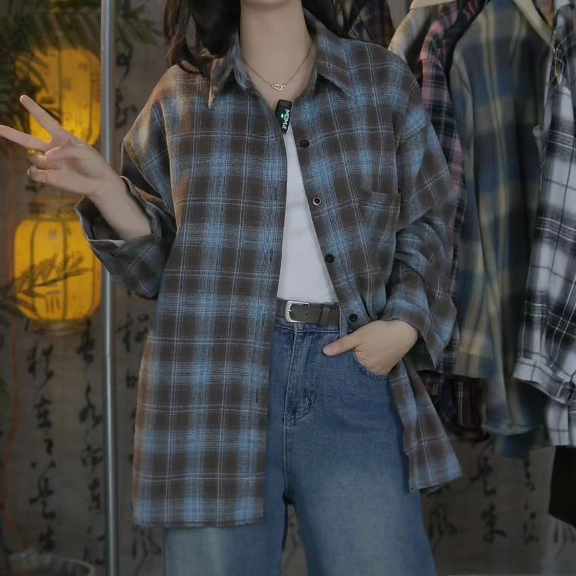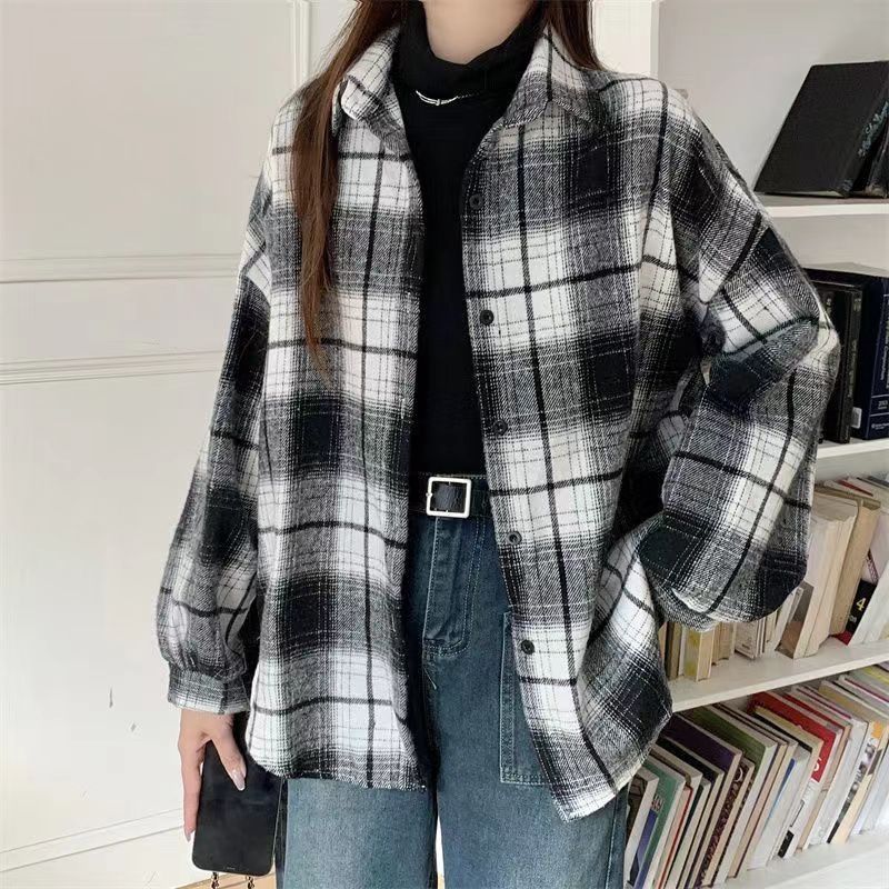 모조 모직 두꺼운 체크무늬 셔츠 가을 겨울 신상 레트로 랜턴 긴팔 루즈핏 캐주얼 스타일 자켓 상의 도매스토어 가기