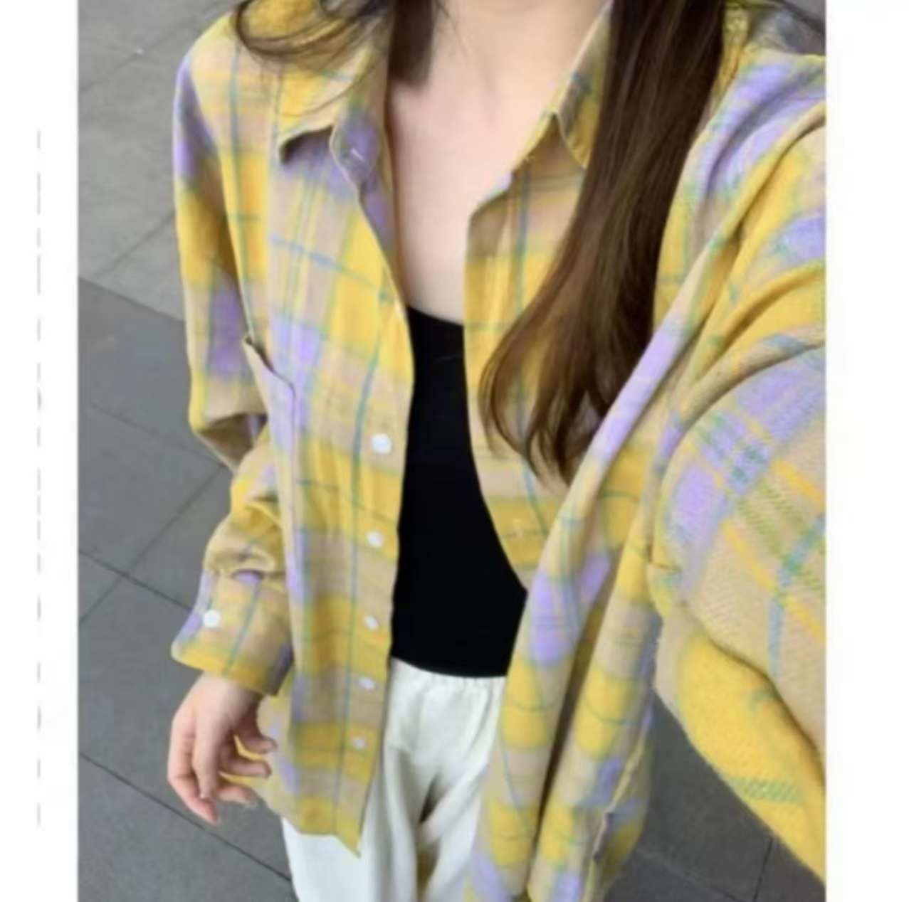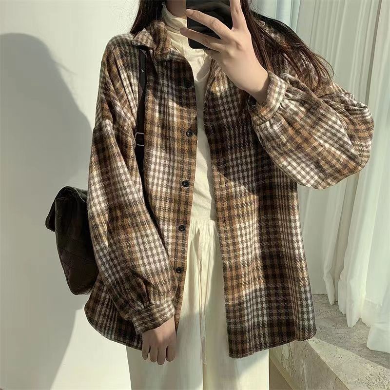 모조 모직 두꺼운 체크무늬 셔츠 가을 겨울 신상 레트로 랜턴 긴팔 루즈핏 캐주얼 스타일 자켓 상의 도매