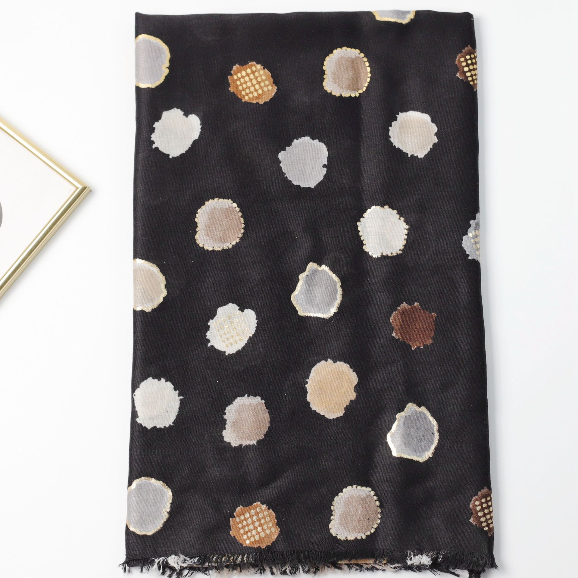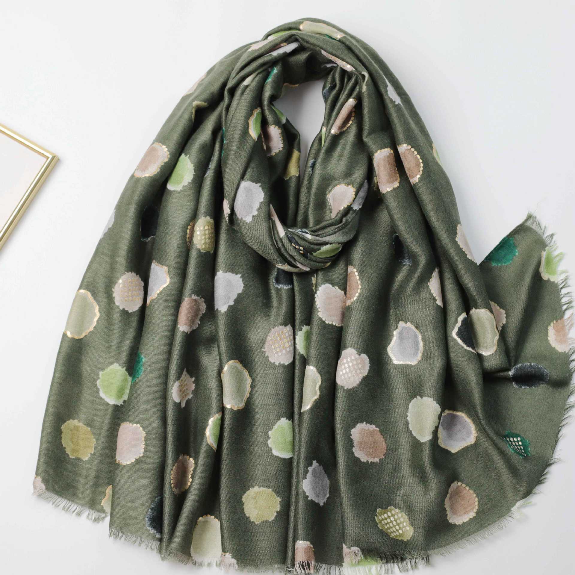 핫스탬핑 컬러풀 도트 무늬 공장 직판 해외 무역 프린트 스카프 가을 겨울 남녀 공용 다용도 따뜻한 스카프 숄