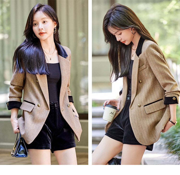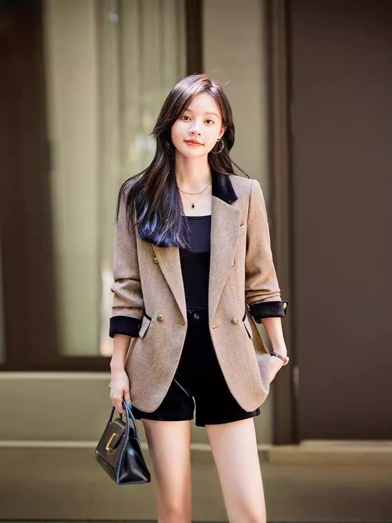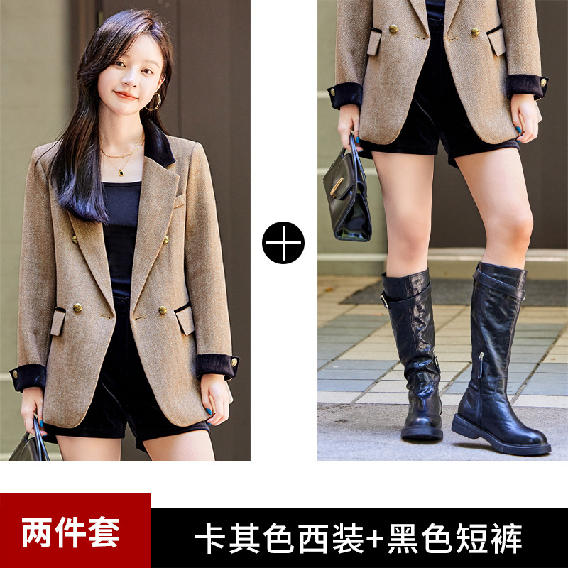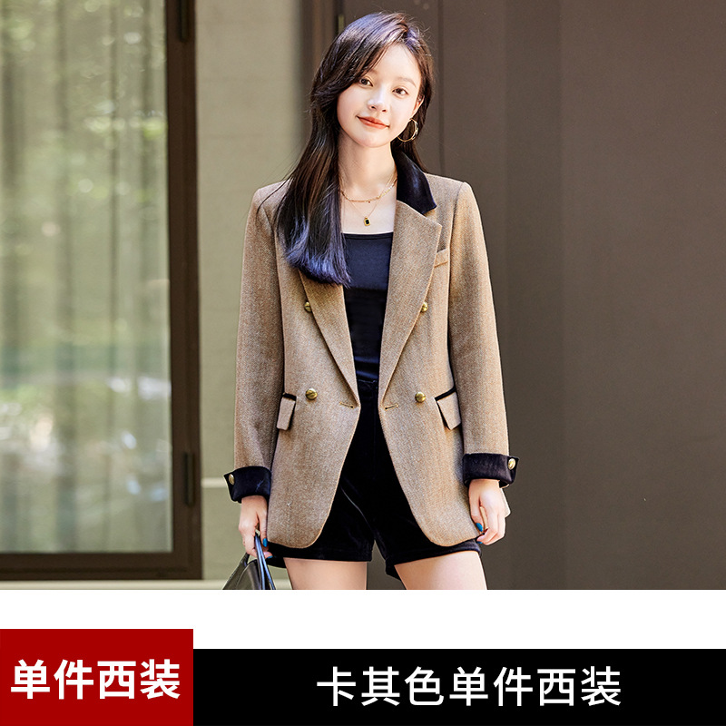 가을 2024 새로운 카키 세트 재킷 여성 고급 디자인 심플 스타일 통근 우아한 캐주얼 세트스토어 가기