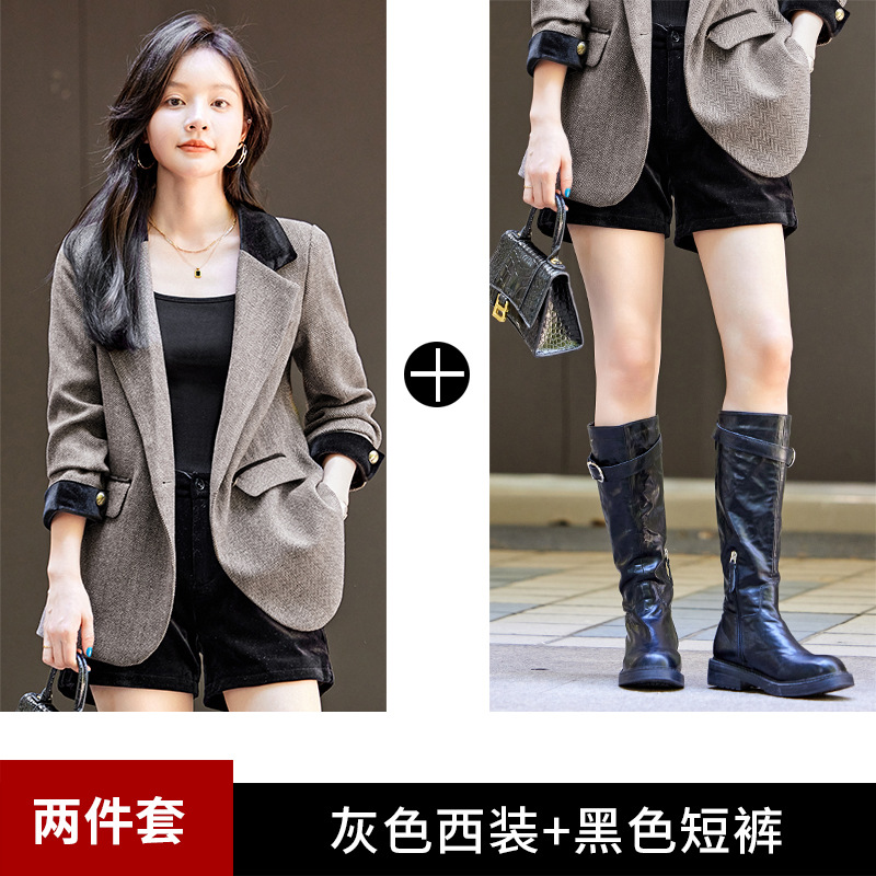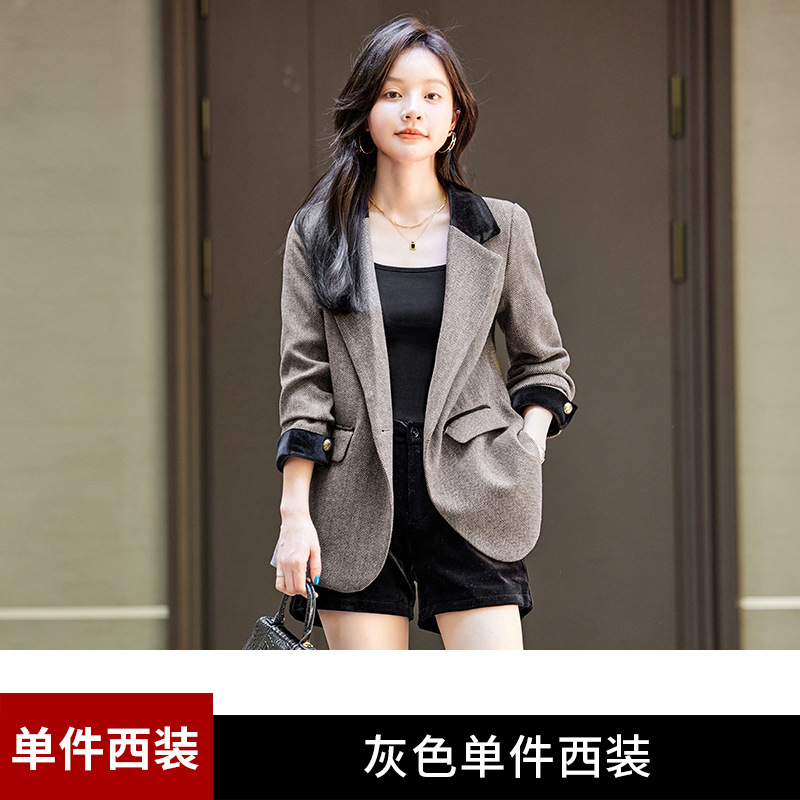 가을 2024 새로운 카키 세트 재킷 여성 고급 디자인 심플 스타일 통근 우아한 캐주얼 세트