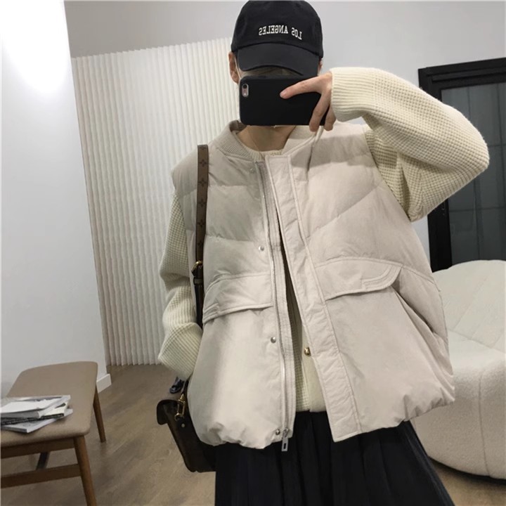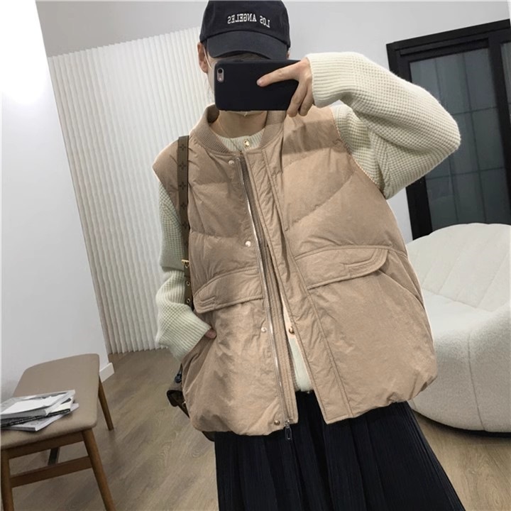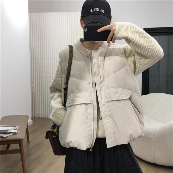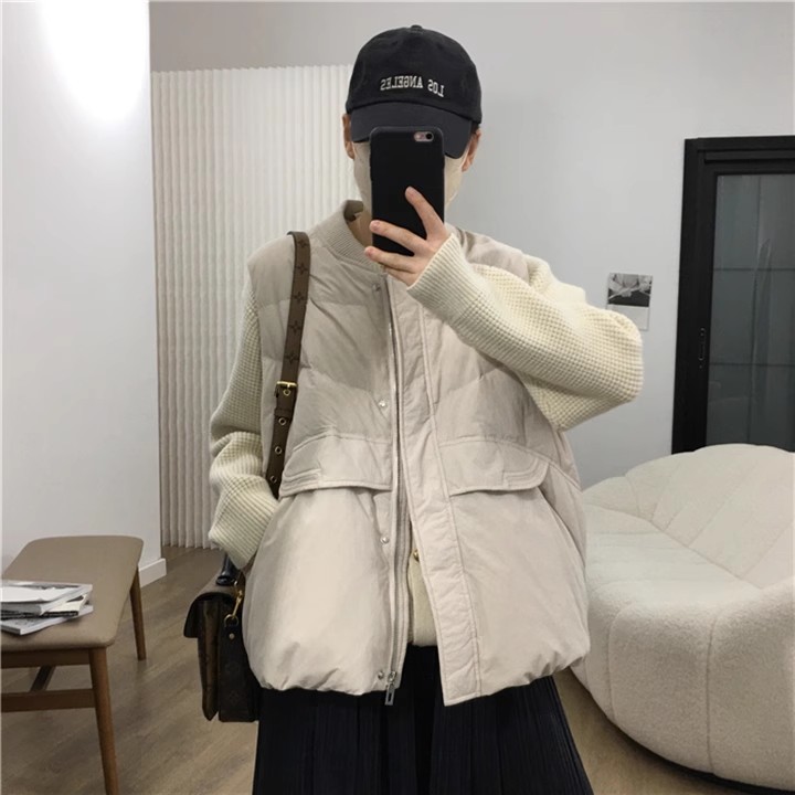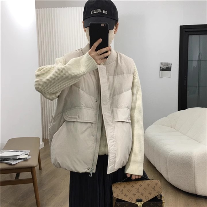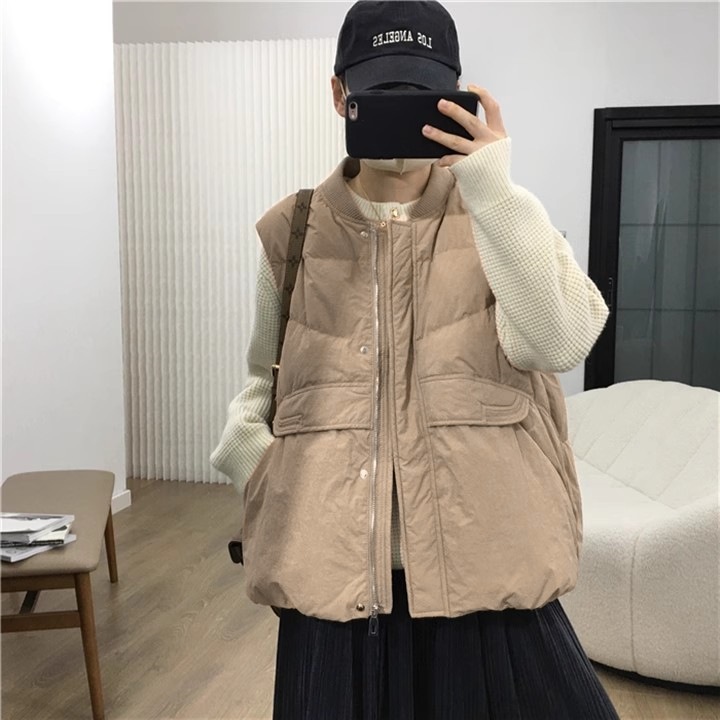 2024 가을과 겨울 새로운 통통녀 한국 버전의 느슨한 양복 조끼 조끼 재킷 다운 면화 조끼 여성용