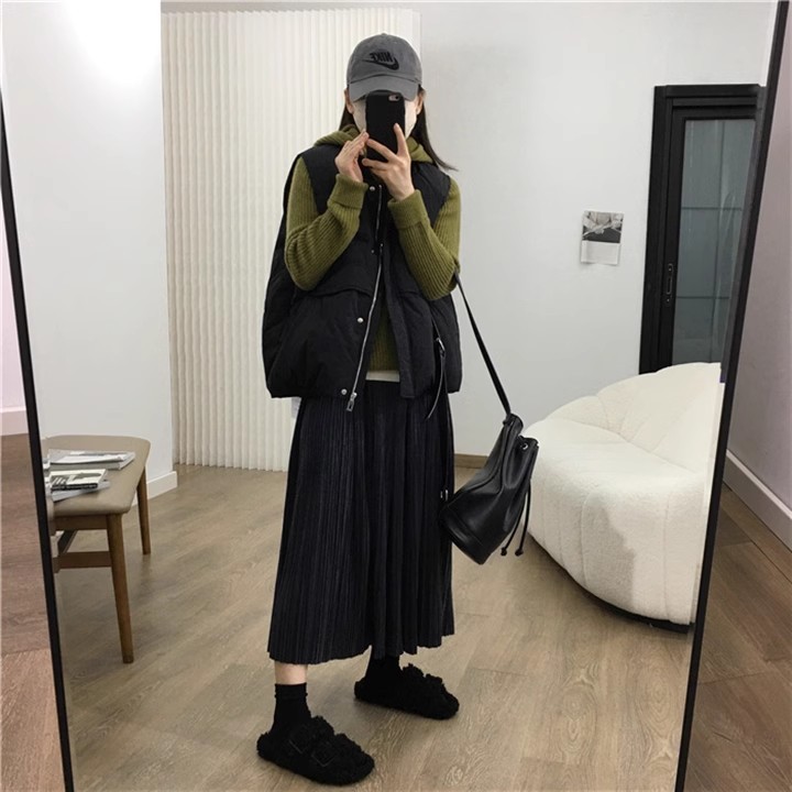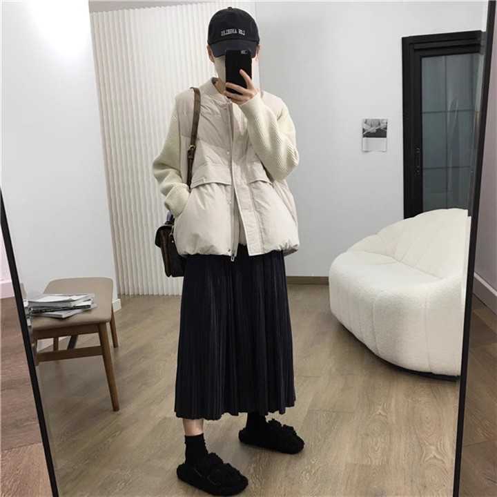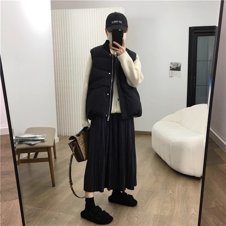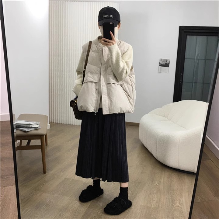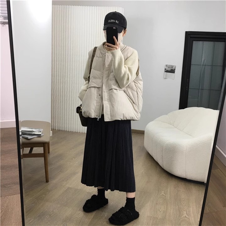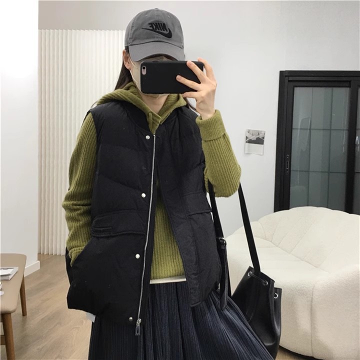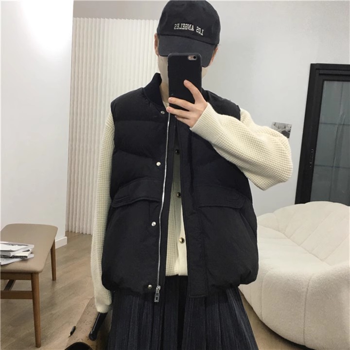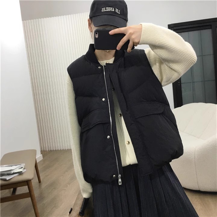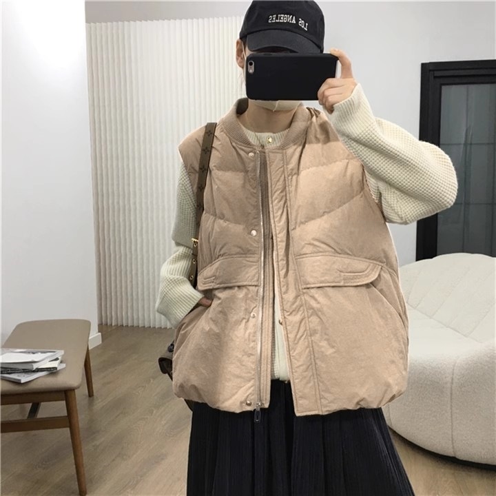 2024 가을과 겨울 새로운 통통녀 한국 버전의 느슨한 양복 조끼 조끼 재킷 다운 면화 조끼 여성용스토어 가기