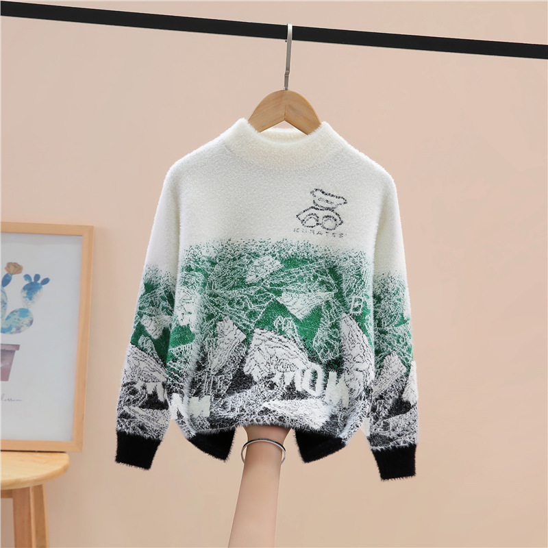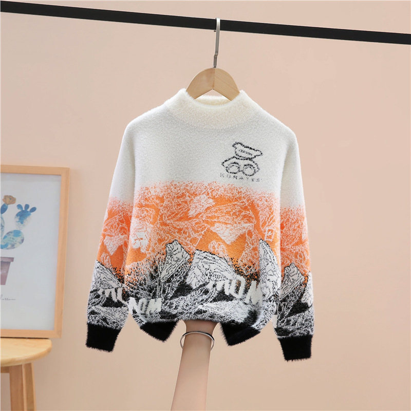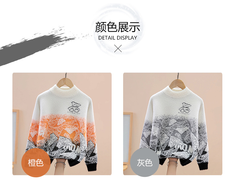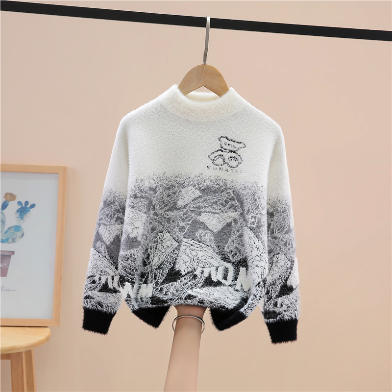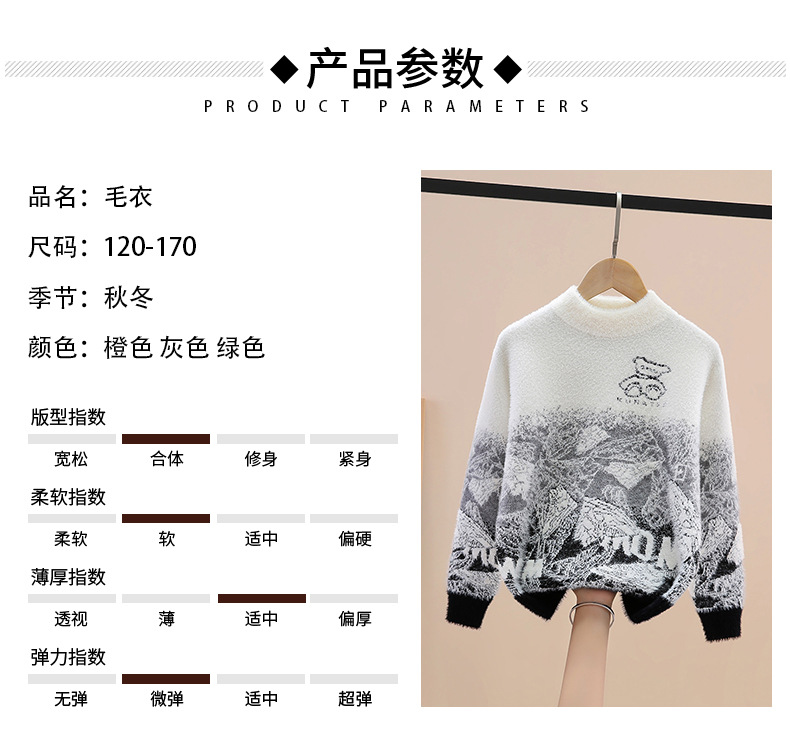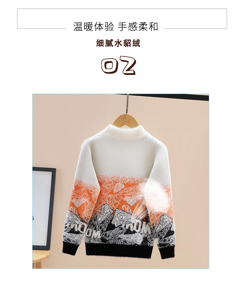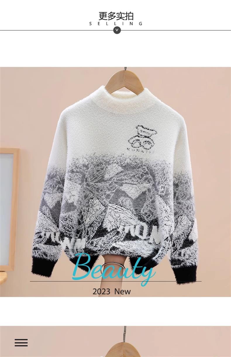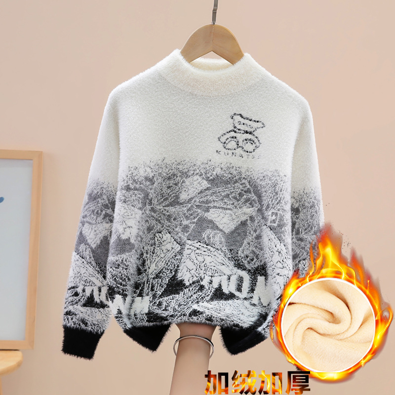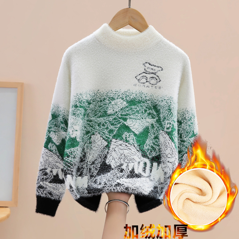 소년 밍크 벨벳 스웨터 가을, 겨울 2024 새로운 스타일 어린이 중대형 어린이 벨벳 니트 풀오버 바닥 셔츠스토어 가기