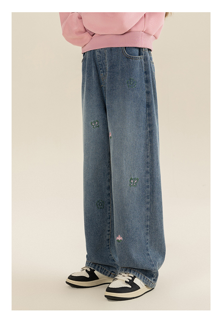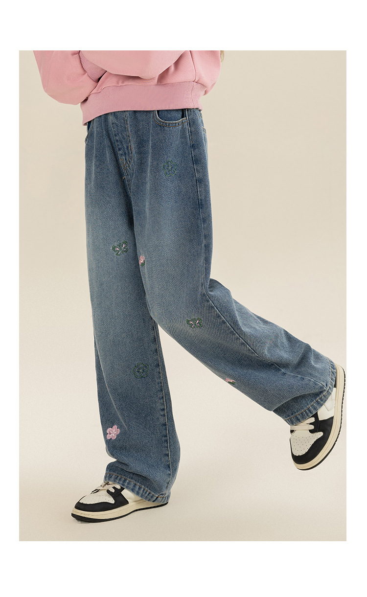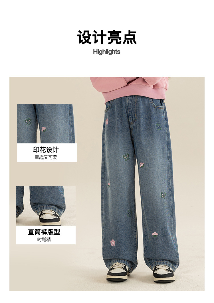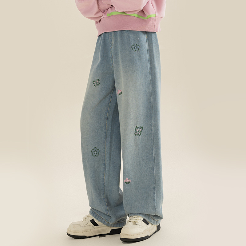 베티 소녀 봄과 가을 스트레이트 와이드 레그 청바지 바지 2024 새로운 가을 서양식 바지 어린이 바지스토어 가기