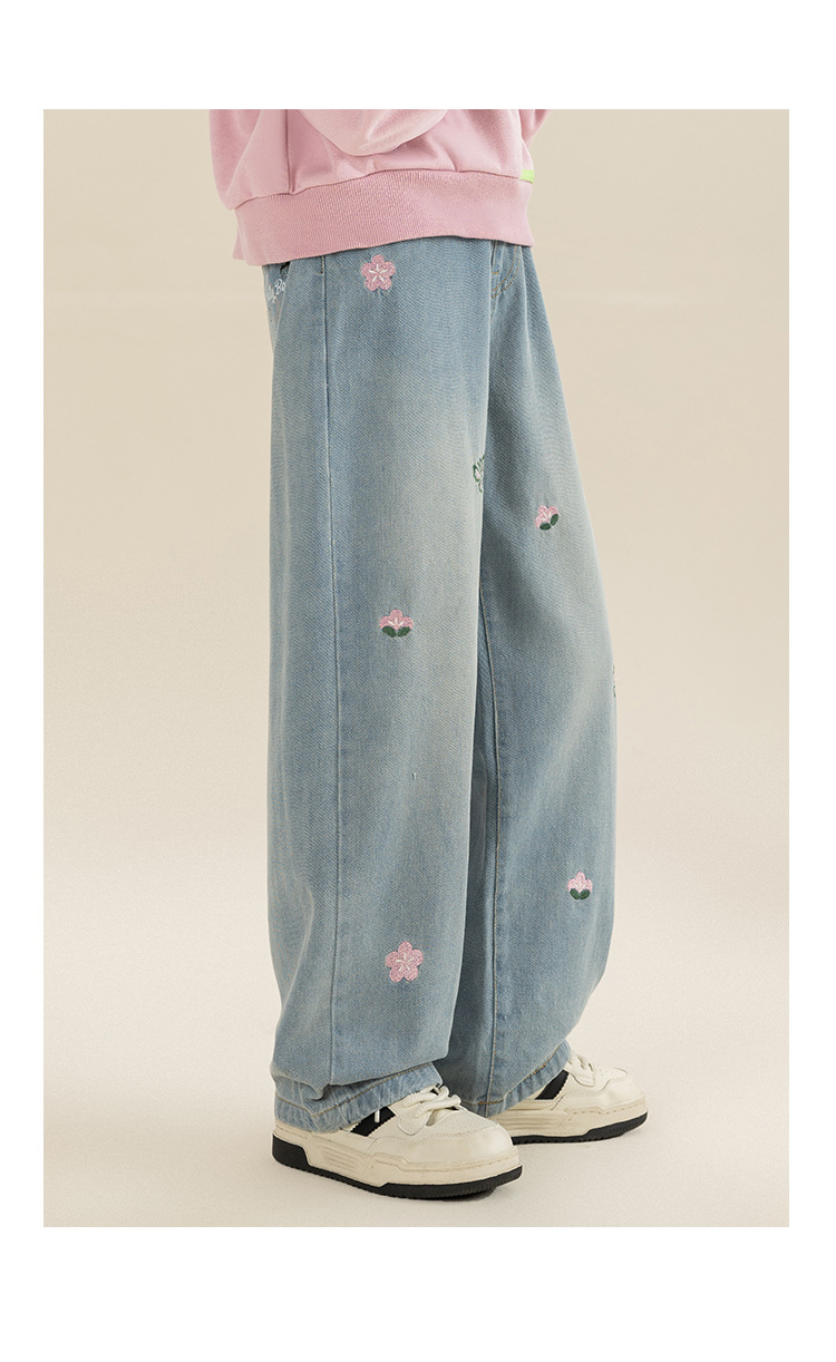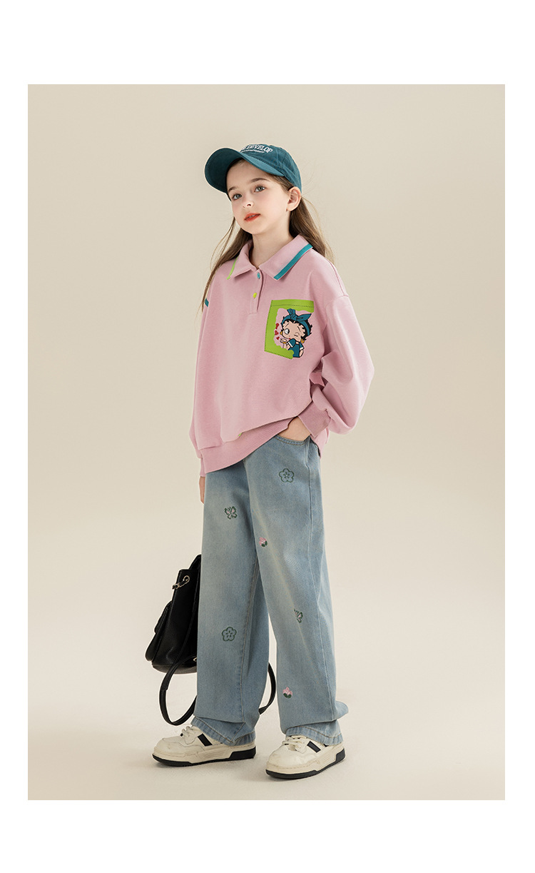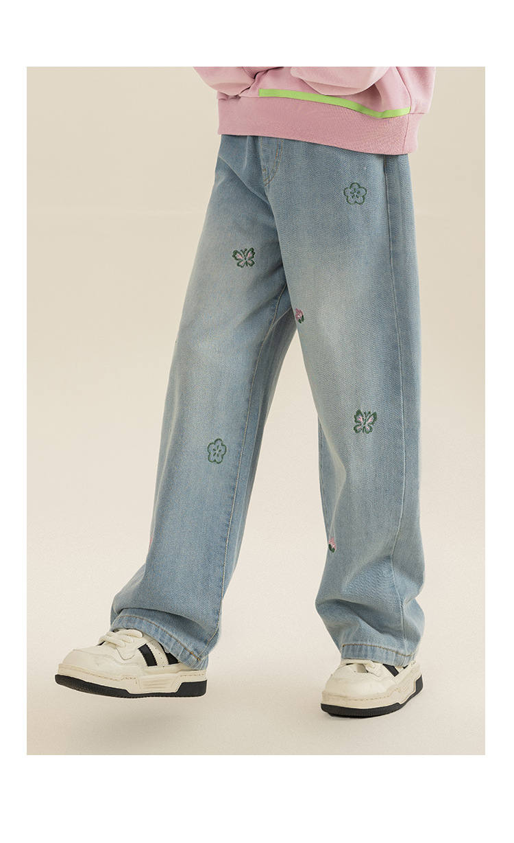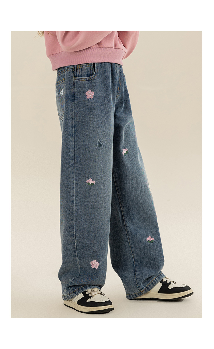 베티 소녀 봄과 가을 스트레이트 와이드 레그 청바지 바지 2024 새로운 가을 서양식 바지 어린이 바지스토어 가기