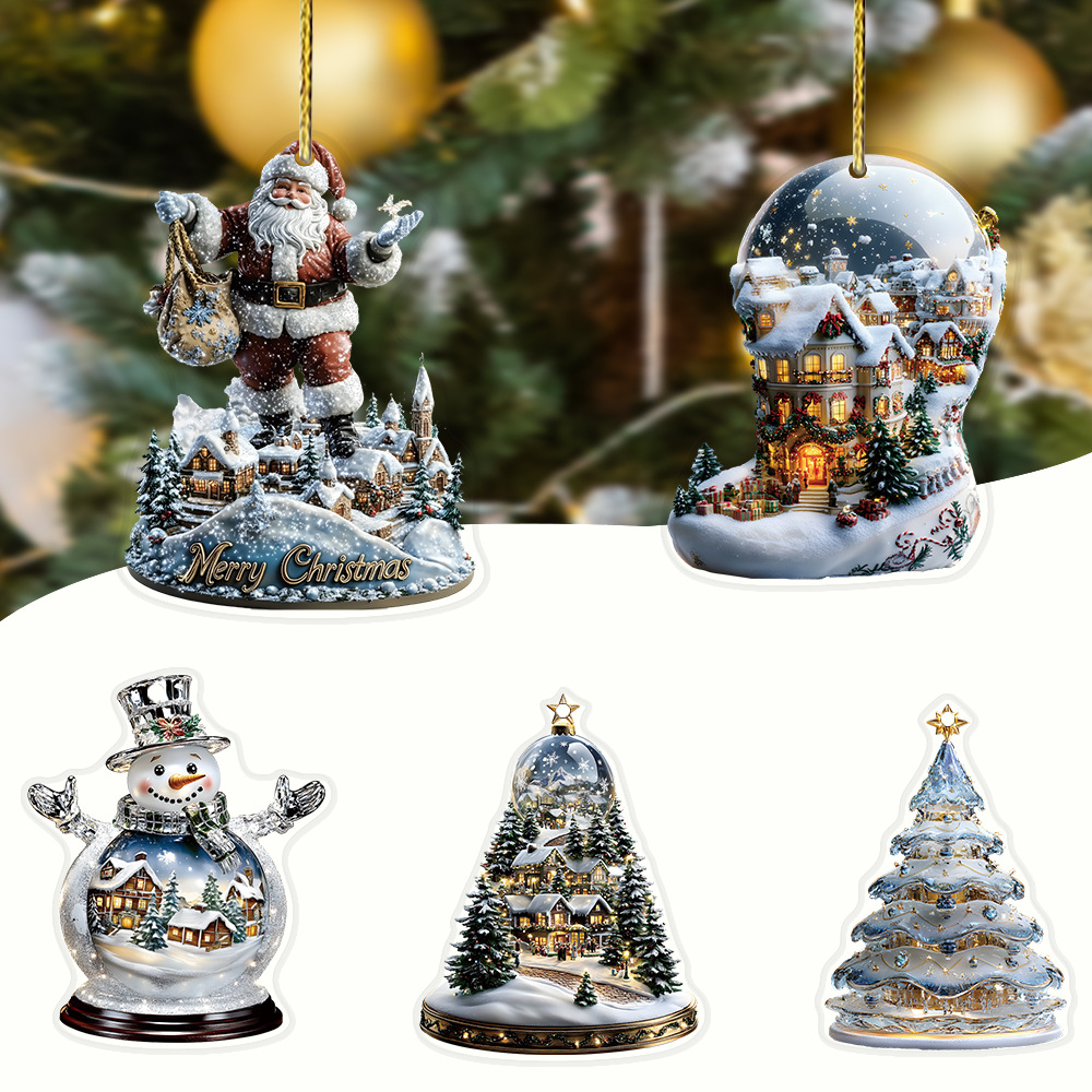 국경 간 크리스마스 산타 클로스와 작은 눈사람 아크릴 가방 키 체인 펜던트 자동차 백미러 목록