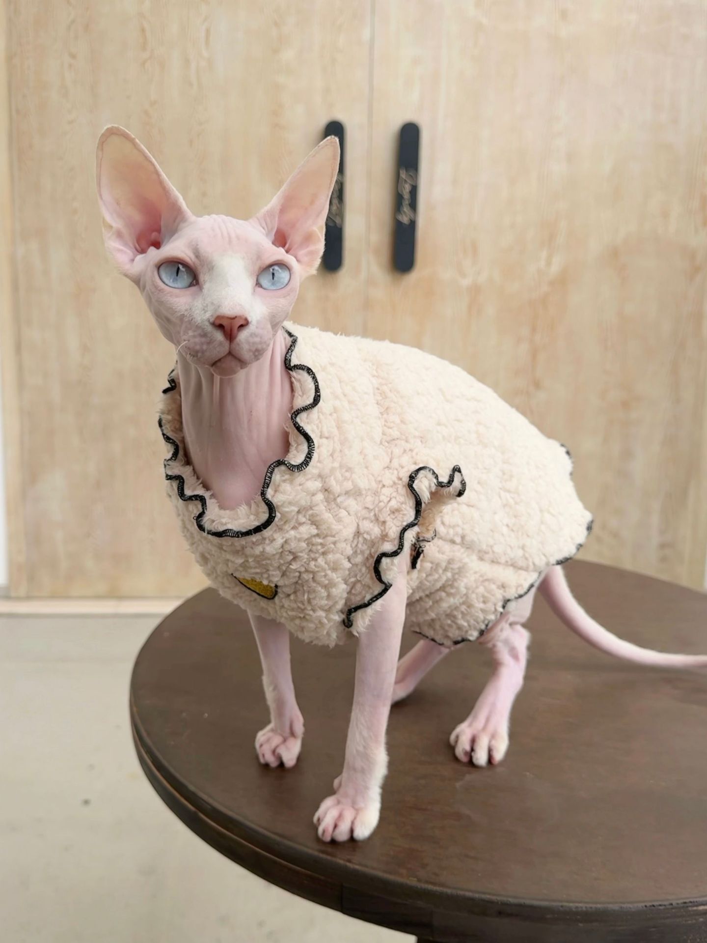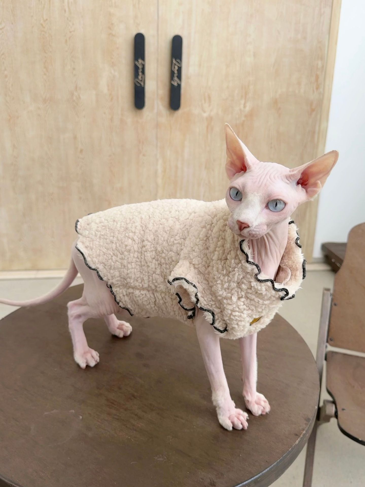 봉제 겨울 고양이 옷 인터넷 인기있는 독일 곱슬 고양이 스핑크스 같은 양면 따뜻한 애완 동물 옷스토어 가기